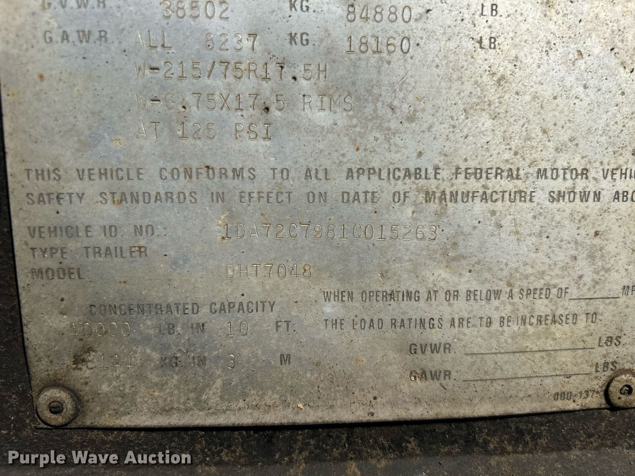 Purple Wave is selling a used Equip. Trailer in Oklahoma. This item is a 2001 Trail-Eze DHT7048 drop deck hydraulic tail equipment trailer with the following: VIN: 1DA72C7981C015263