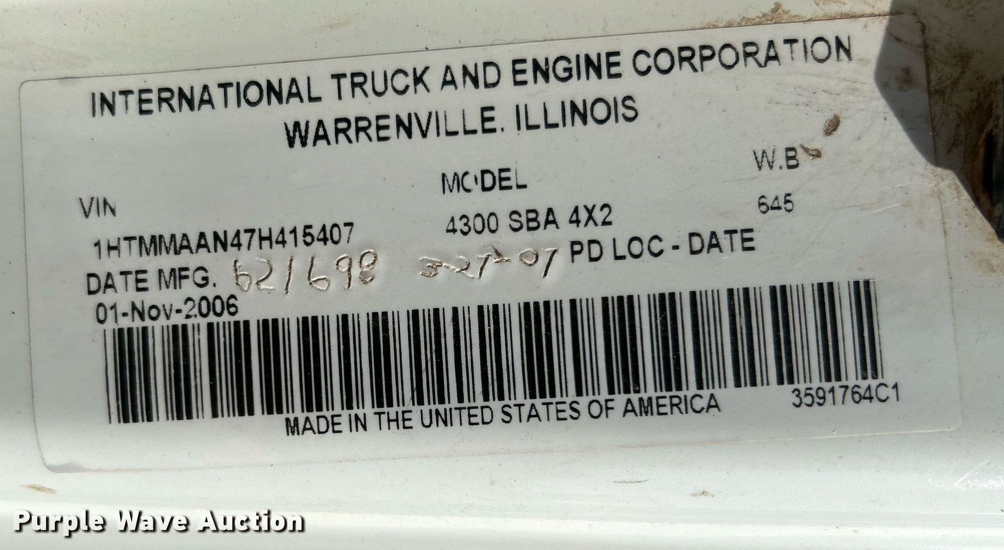 Purple Wave is selling a used Oilfield Truck in Oklahoma. This item is a 2007 International 4300 wireline truck with the following: Miles: 173,892 on odometer, Hours: 10,137 on meter, VIN: 1HTMMAAN47H415407