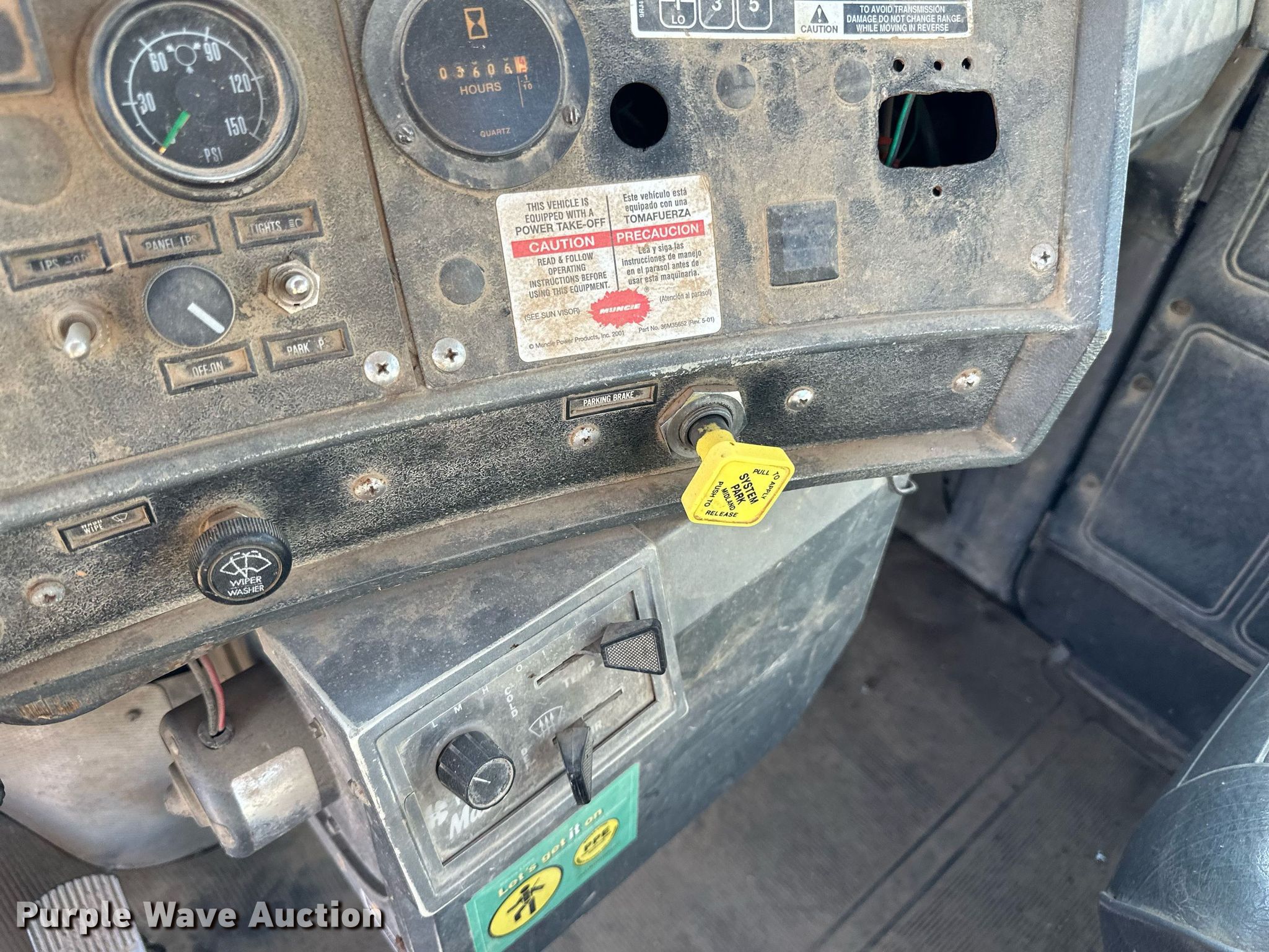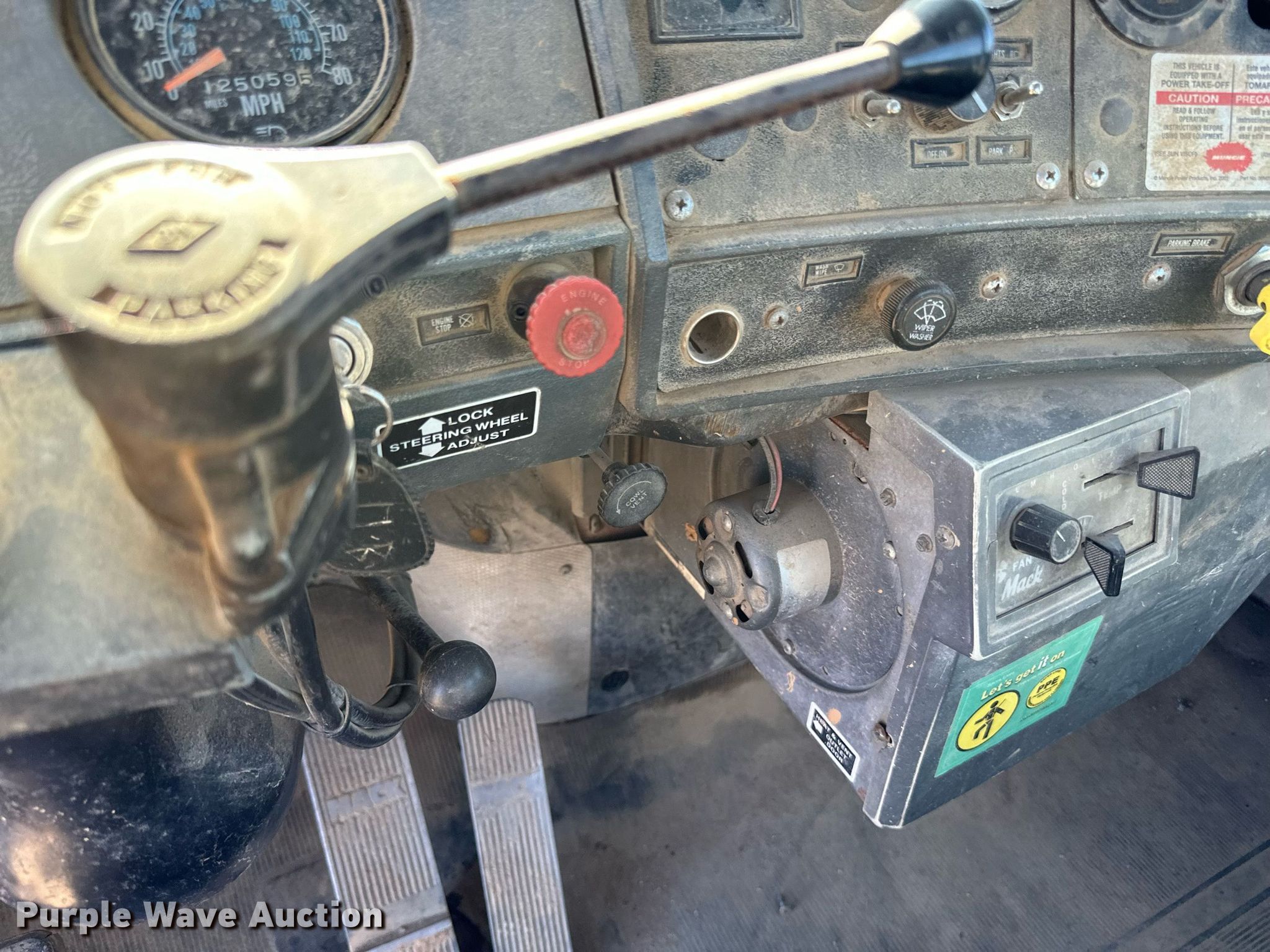 1990 Mack RB690S truck cab and chassis. Miles: 125,060 on odometer, VIN: 2M2AM20C1LC001584. Engine Mack EM7-300, Cylinders: 6, Fuel type: Diesel, HP: 300. Transmission Mack Maxitorque, Manual, Speed: 6. Chassis Double frame, Axles: Tandem, Suspension: Camelback, Brakes: Air, PTO, Truck chassis: 15' 3". Interior Heat. Features Fuel tank: Single. Tires Front: 385/65R22.5, Rear: 11R22.5. Notes Rear tires and wheels missing, Suspensions issues, broken, Unit must be towed or hauled, Non-operational unit. South Dakota title. Consolidated Ready Mix Inc.. Bellingham, MN 56212