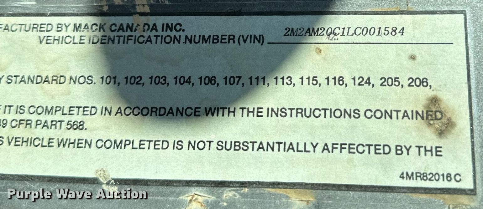 Purple Wave is selling a used Truck Chassis in Minnesota. This item is a 1990 Mack RB690S truck cab and chassis with the following: Miles: 125,060 on odometer, VIN: 2M2AM20C1LC001584