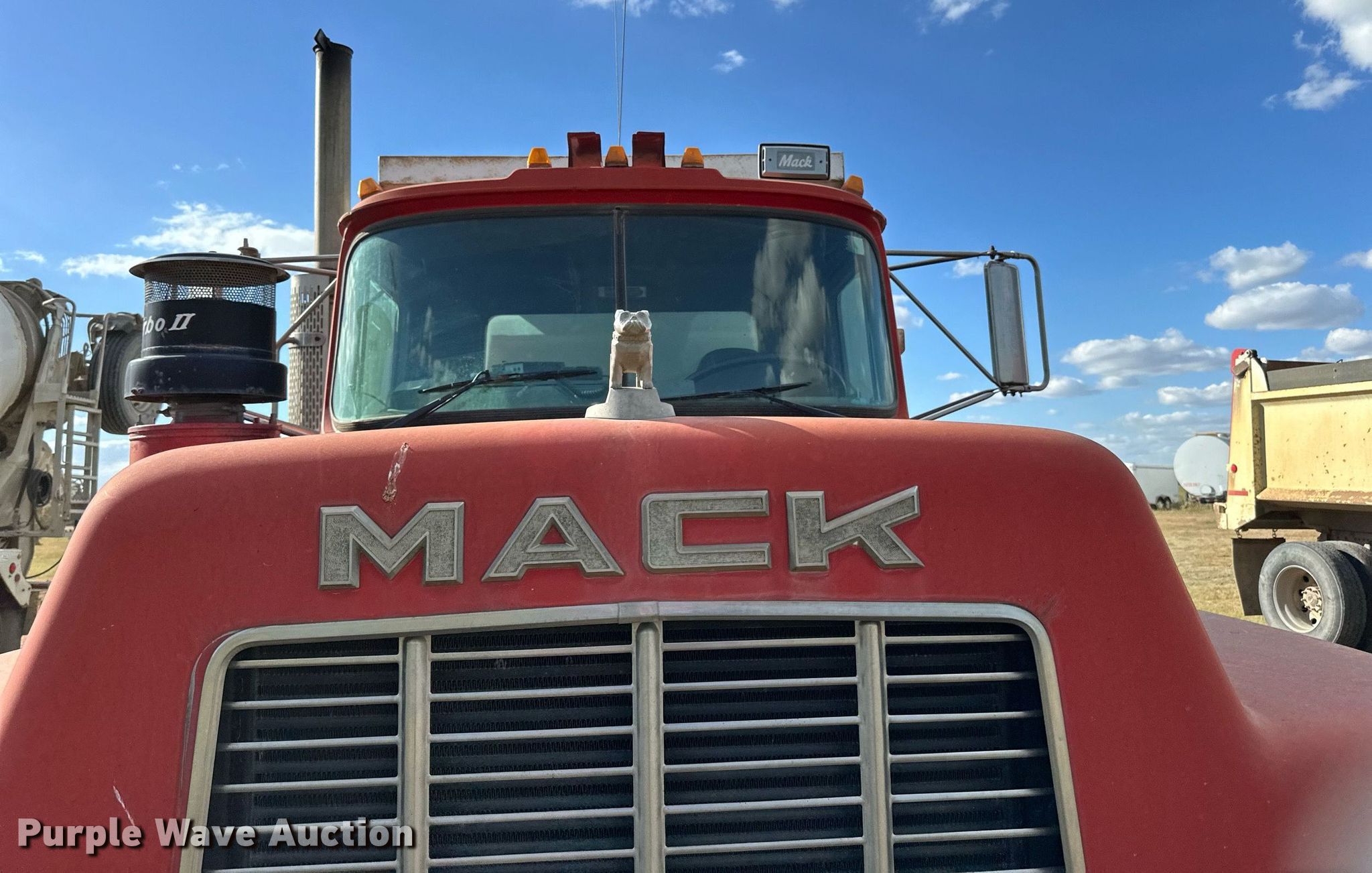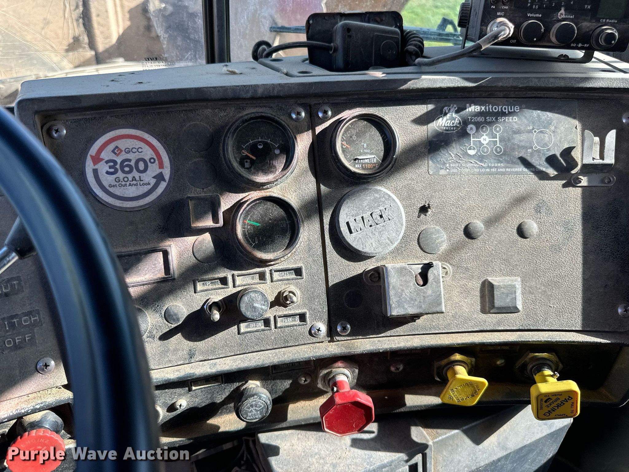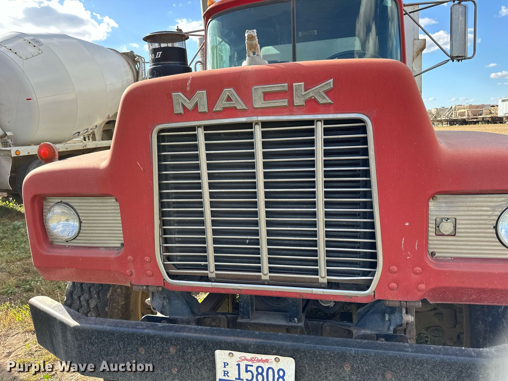 1990 Mack RD690S dump truck. Miles: 16,726 on odometer, Hours: 719 on meter, VIN: 1M2P198C9LW006584. Engine Displacement: 11.0L, Cylinders: 6, Fuel type: Diesel. Transmission Mack T2060, Manual, Speed: 6. Chassis Axles: Triple, Suspension: Camelback, Brakes: Air, PTO. Interior Heat. Features Dump bed 16' L x 94" W, Side height: 44", Side board height: 10", Bed type: Steel, Ram: Single, End gate: Air operated. Tires Front: 385\65R22.5, Rear: 11R22.5, Lift axle: 11R22.5. South Dakota title. Consolidated Ready Mix Inc.. Bellingham, MN 56212
