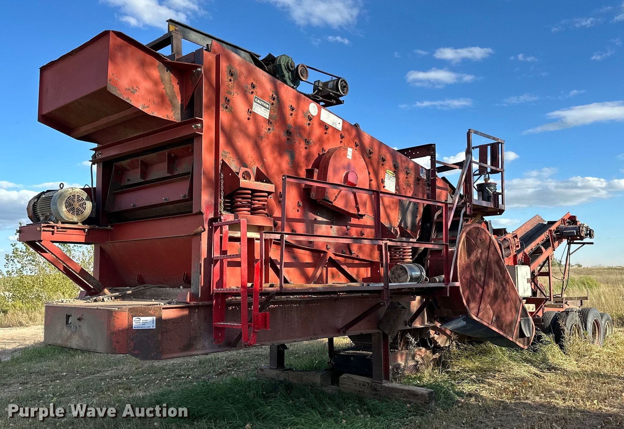 1962 jaw crushing plant. Serial: 45-v-180. Electric Motor Phase: Three. Chassis Axles: Triple. Features Crusher Jaw, Width: 3', Length: 4', Screen Length: 14', Width: 5', Input hopper Length: 3' 7", Width: 4' 2", Vibrating, Discharge conveyor 24' L x 35" W. Tires 11R22.5, 10.00R20, 9R17.5. Notes Unknown operating condition. Consolidated Ready Mix Inc.. Bellingham, MN 56212