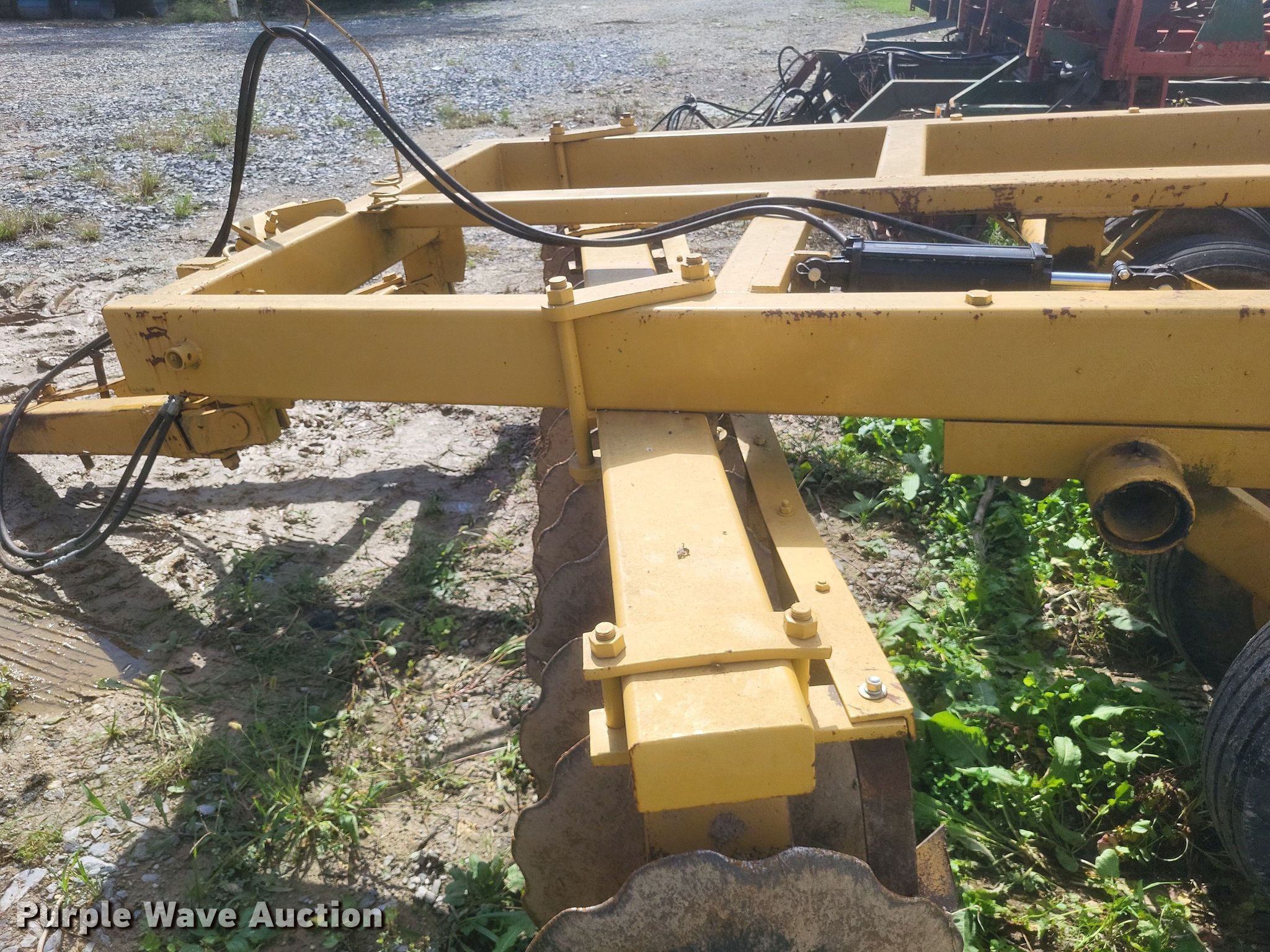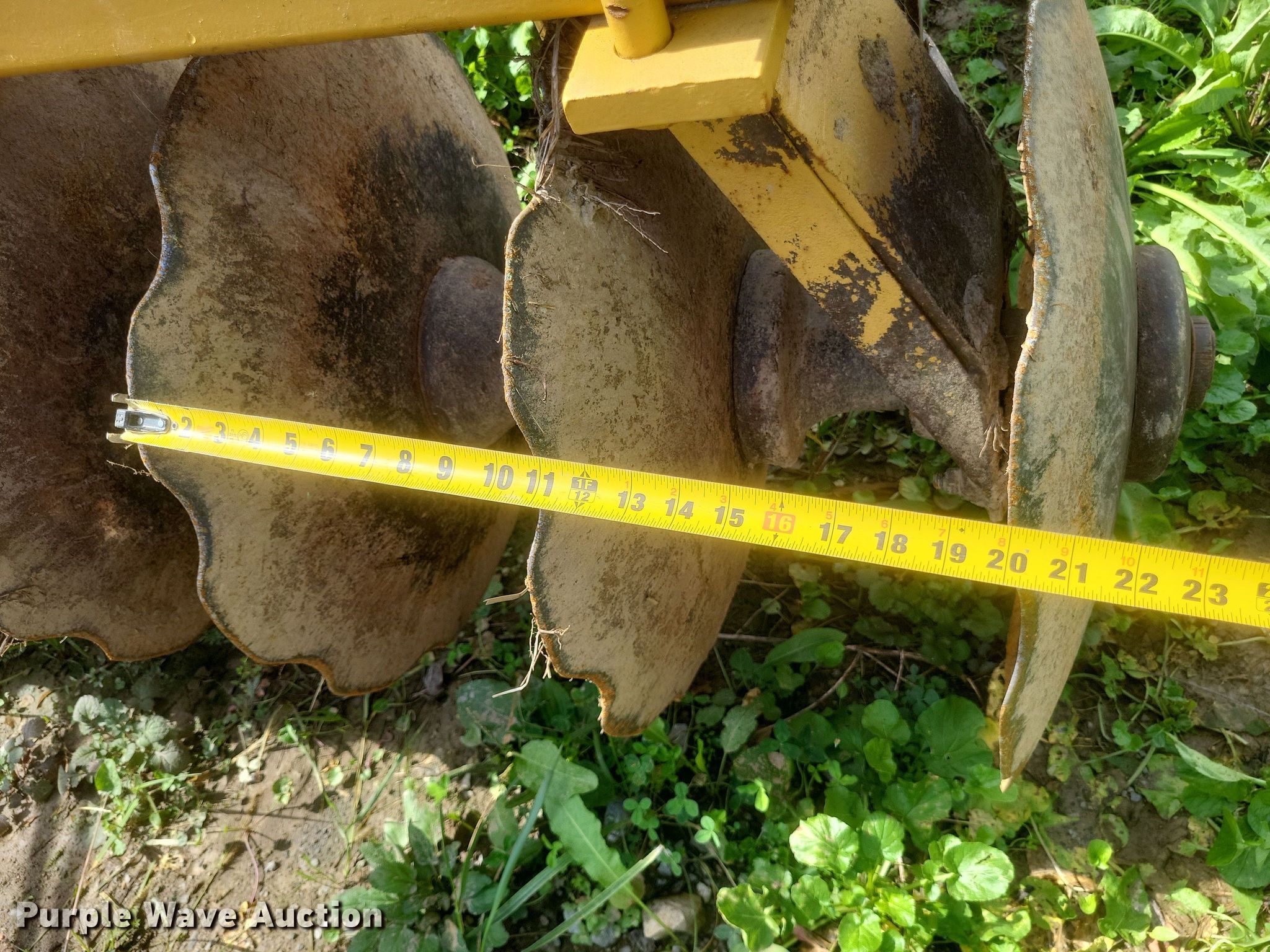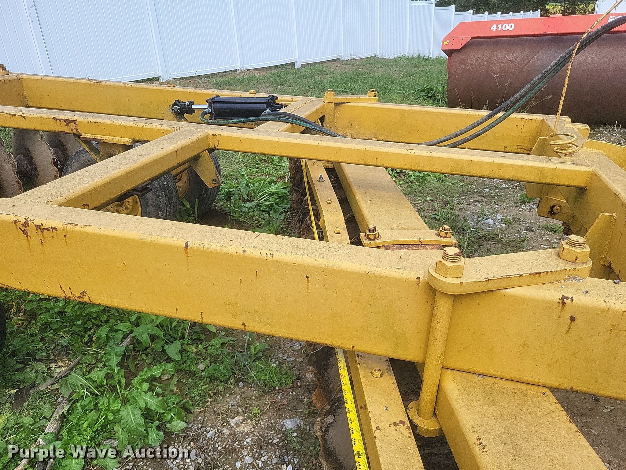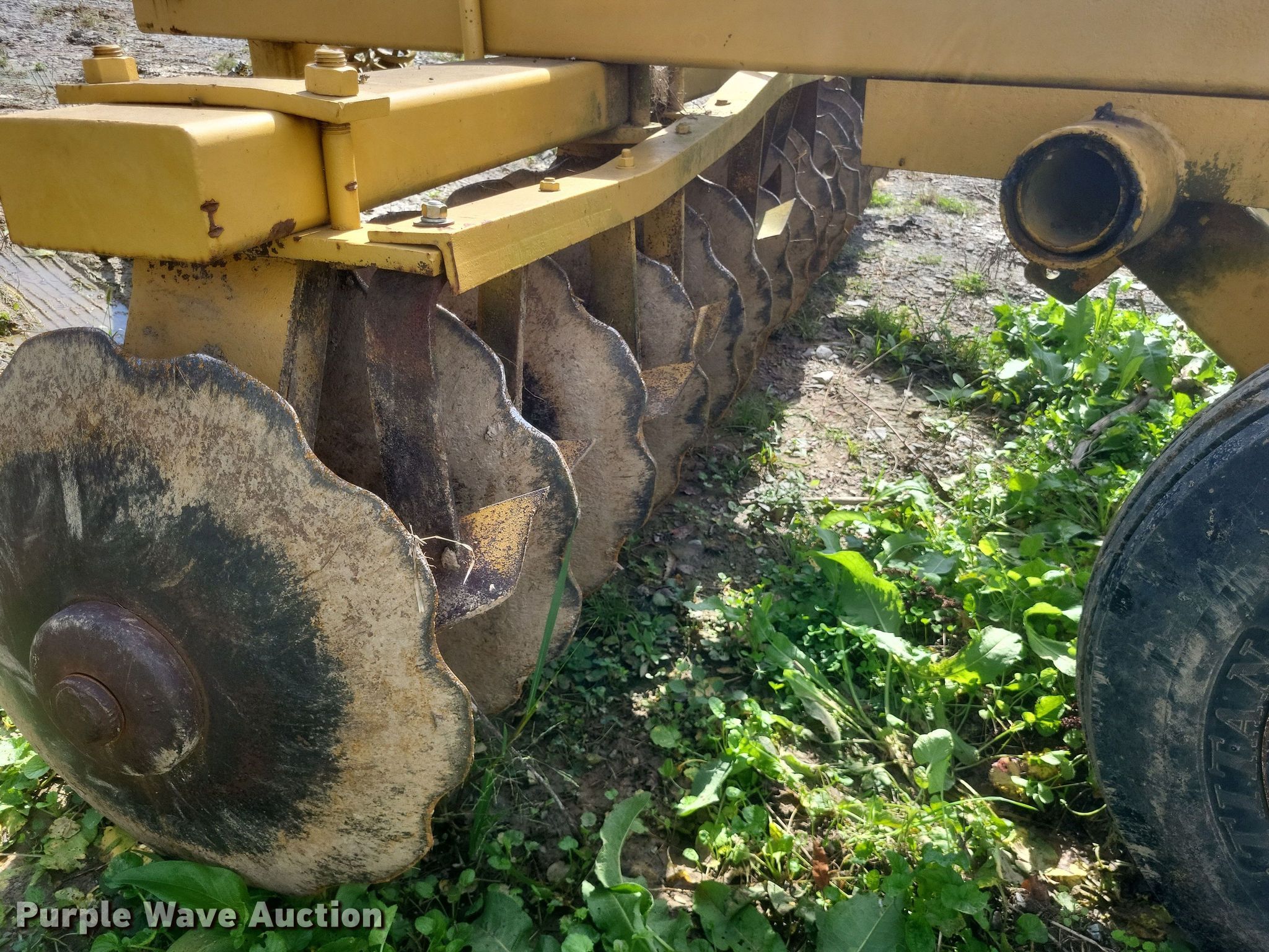 Cook disk. Overall width: 13'. Features Front blades Diameter: 24", Spacing: 10", Rear blades Diameter: 24", Spacing: 10", Disk scrapers, Operation Hydraulic lift. Tires Tire size: 9.5L-15. Oak Hill Equipment, LLC. Ewing, IL 62836