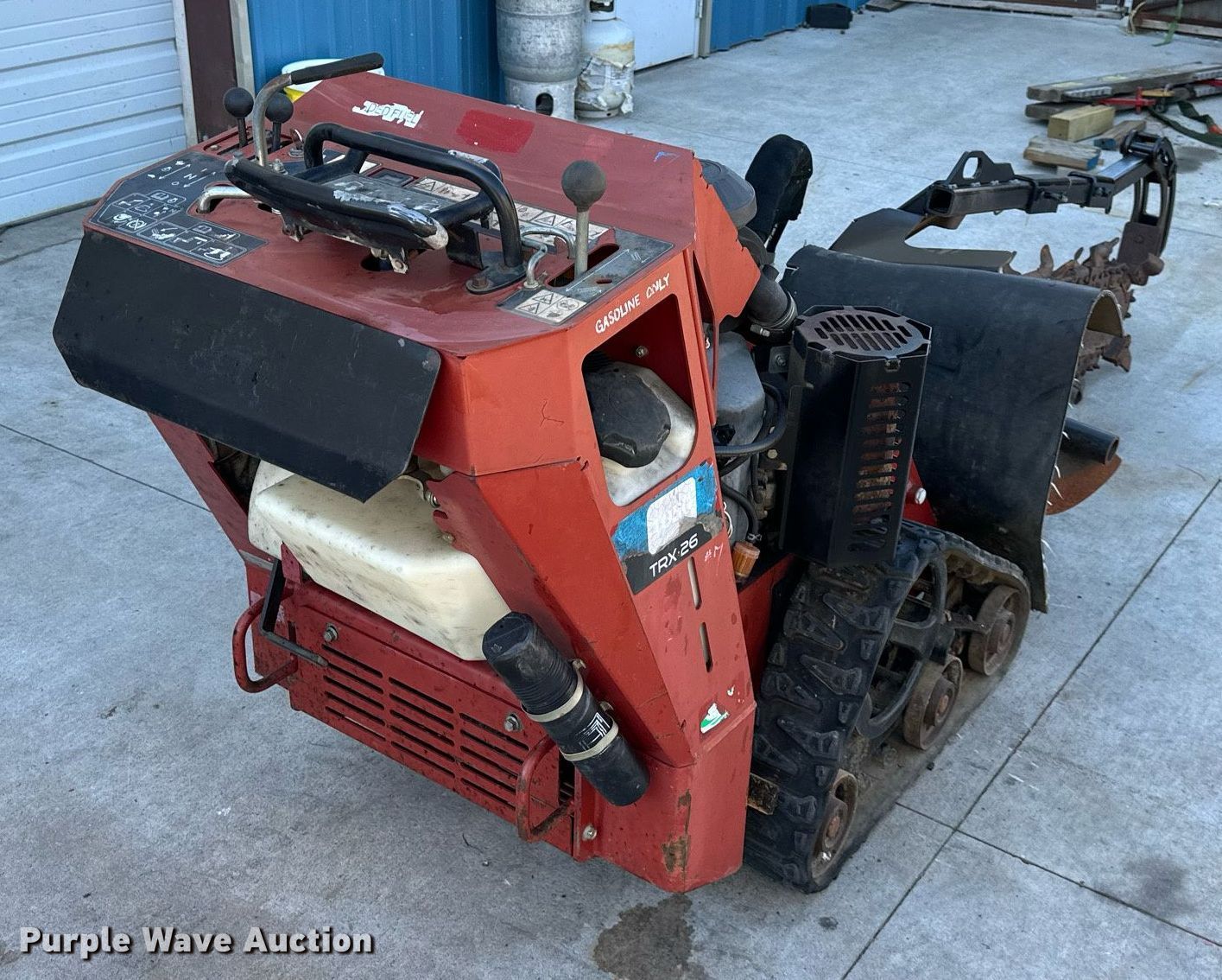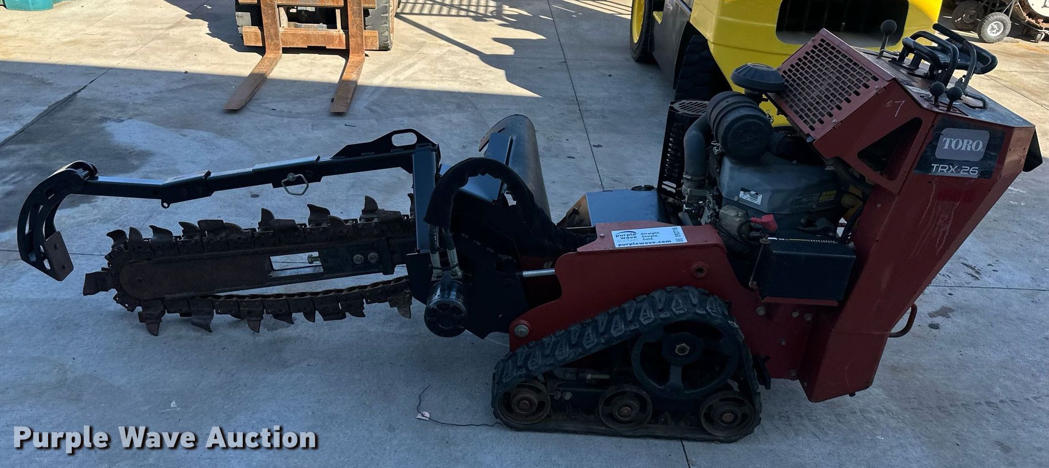 Purple Wave is selling a used Trencher or Rock Saw in Kansas. This item is a Toro TRX26 trencher with the following: Hours: 369 on meter, Serial: 22974-314000187