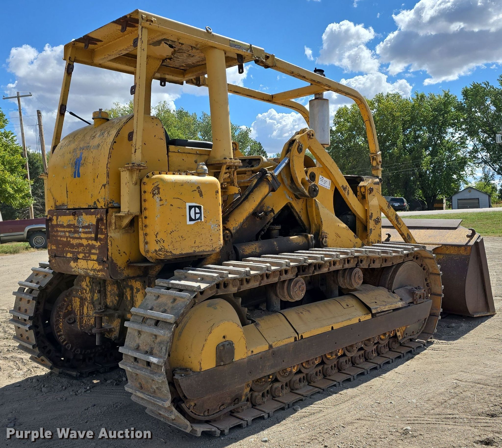 1965 Caterpillar 977H track loader. Hours: Unknown, Serial: 53A5735. Engine Caterpillar, Cylinders: 6, Fuel type: Diesel. Transmission Powershift, 2F - 2R. Operators station OROPS, Bucket controls: Two-lever. Features Bucket Width: 96", Sweeps. Tracks Width: 18", Grouser pads: Double. McClains' Trucking. Madison, NE 68748