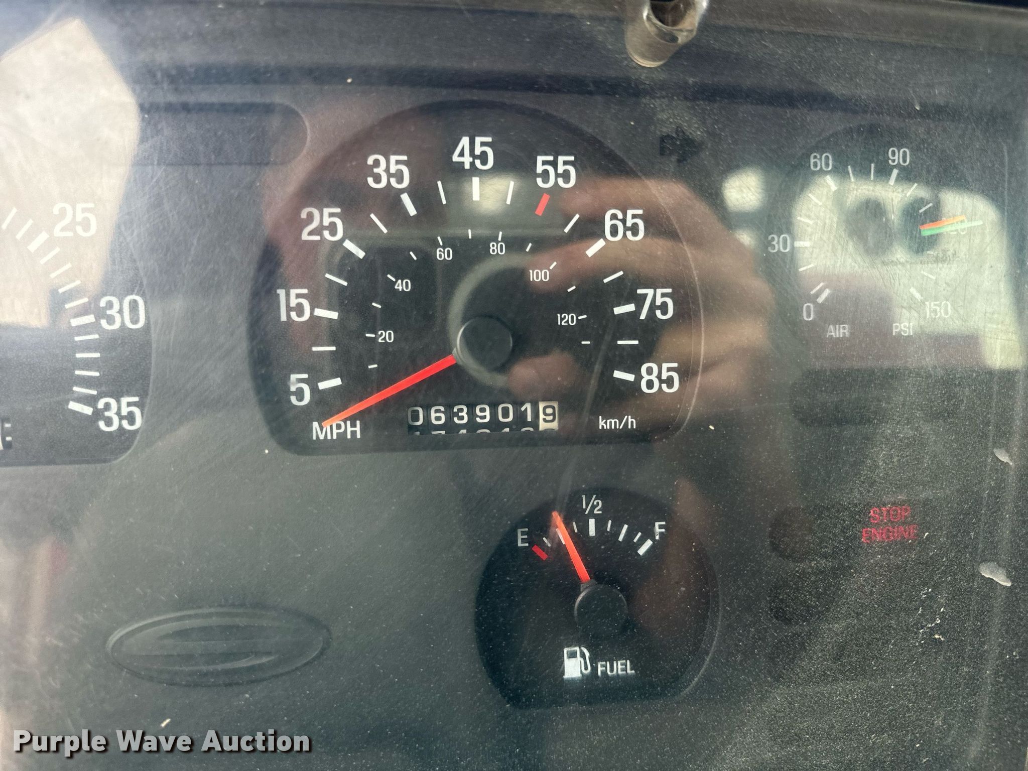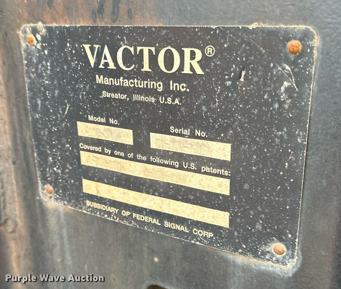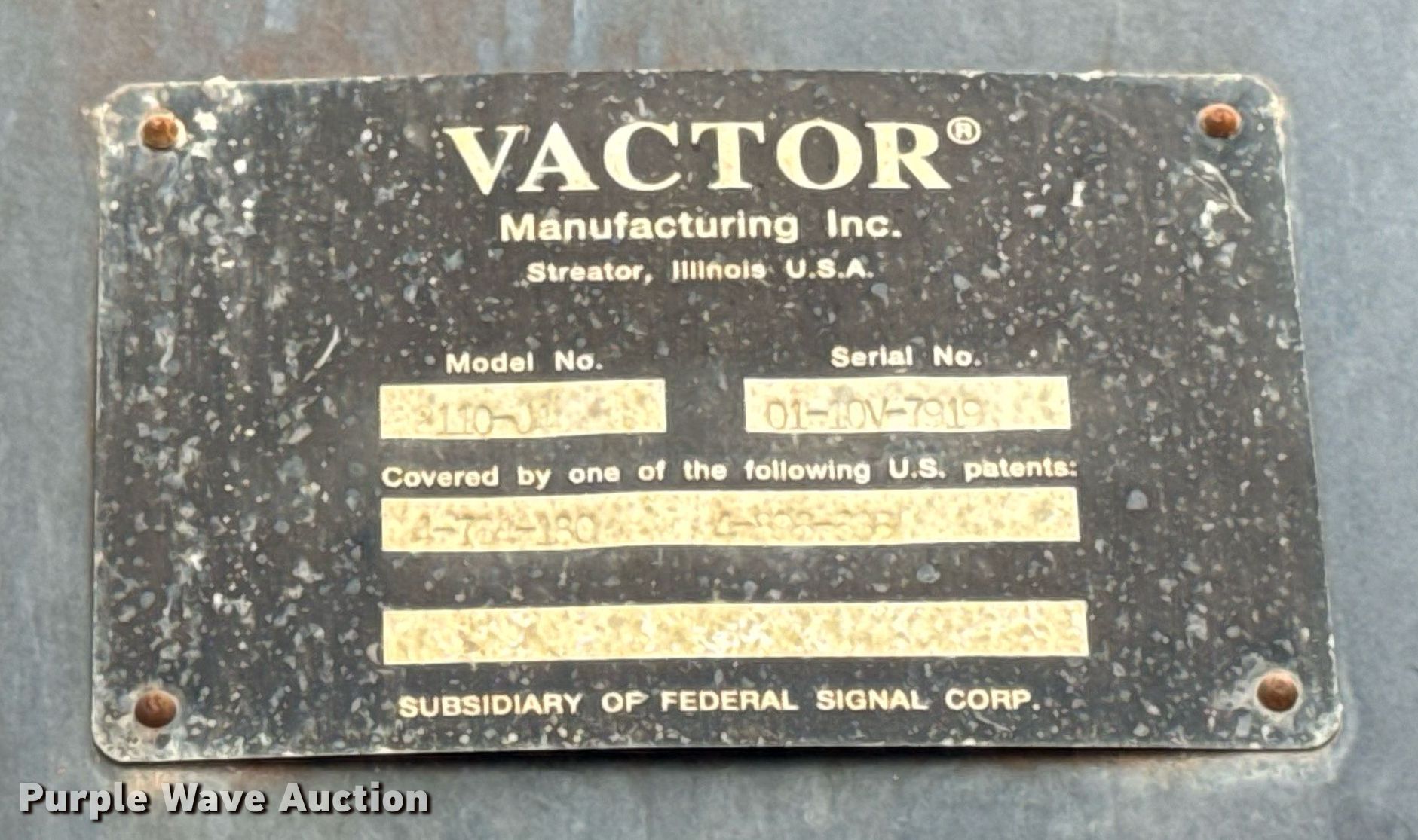 2002 Sterling L-Line hydrovac truck. Miles: 63,902 on odometer, Hours: 12,723 on meter, VIN: 2FZAATAK02AJ80836. Engine Caterpillar 3126, Displacement: 7.2L, Cylinders: 6, Fuel type: Diesel. Transmission Automatic. Chassis Axles: Single, Suspension: Spring, Brakes: Air, PTO, GVWR: 41,000 lbs. Interior AC, Heat, Cruise control. Features Tank bed Vactor 2110, Rear outlet: 6", Engine John Deere Powertech, Displacement: 4.5L, Cylinders: 4, Fuel type: Diesel, Hose reel Front, Diameter: 1", Length: 600', Telescopic boom Diameter: 8", Remote control. Tires Front: 315/80R22.5, Rear: 11R22.5. Notes Dash warning indicator: Engine warning stop engine, Unknown operating condition of hose reel, Non-operational water pump. Illinois title. Title distribution may be delayed up to 14 days from verification of funds. Len Cox & Sons Excavating. Romeoville, IL 60446