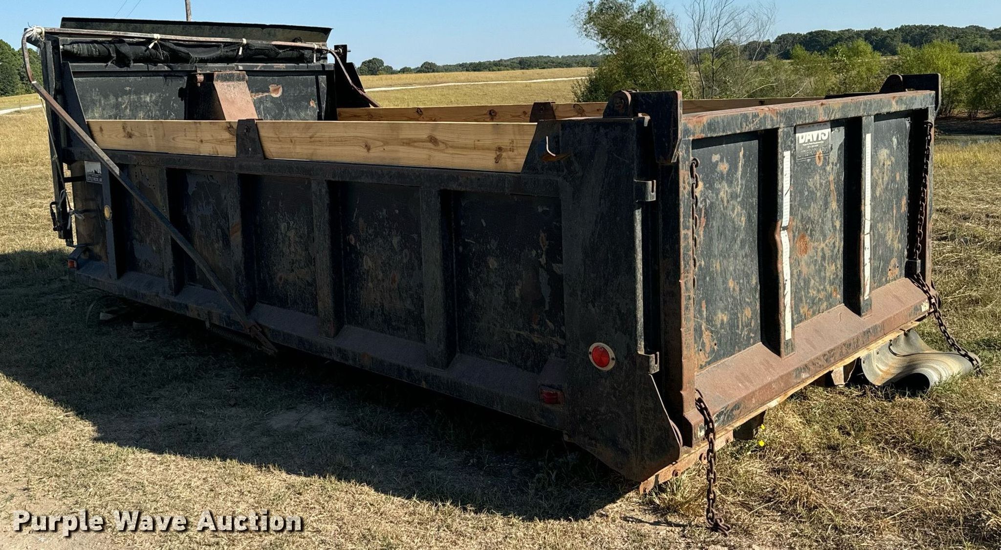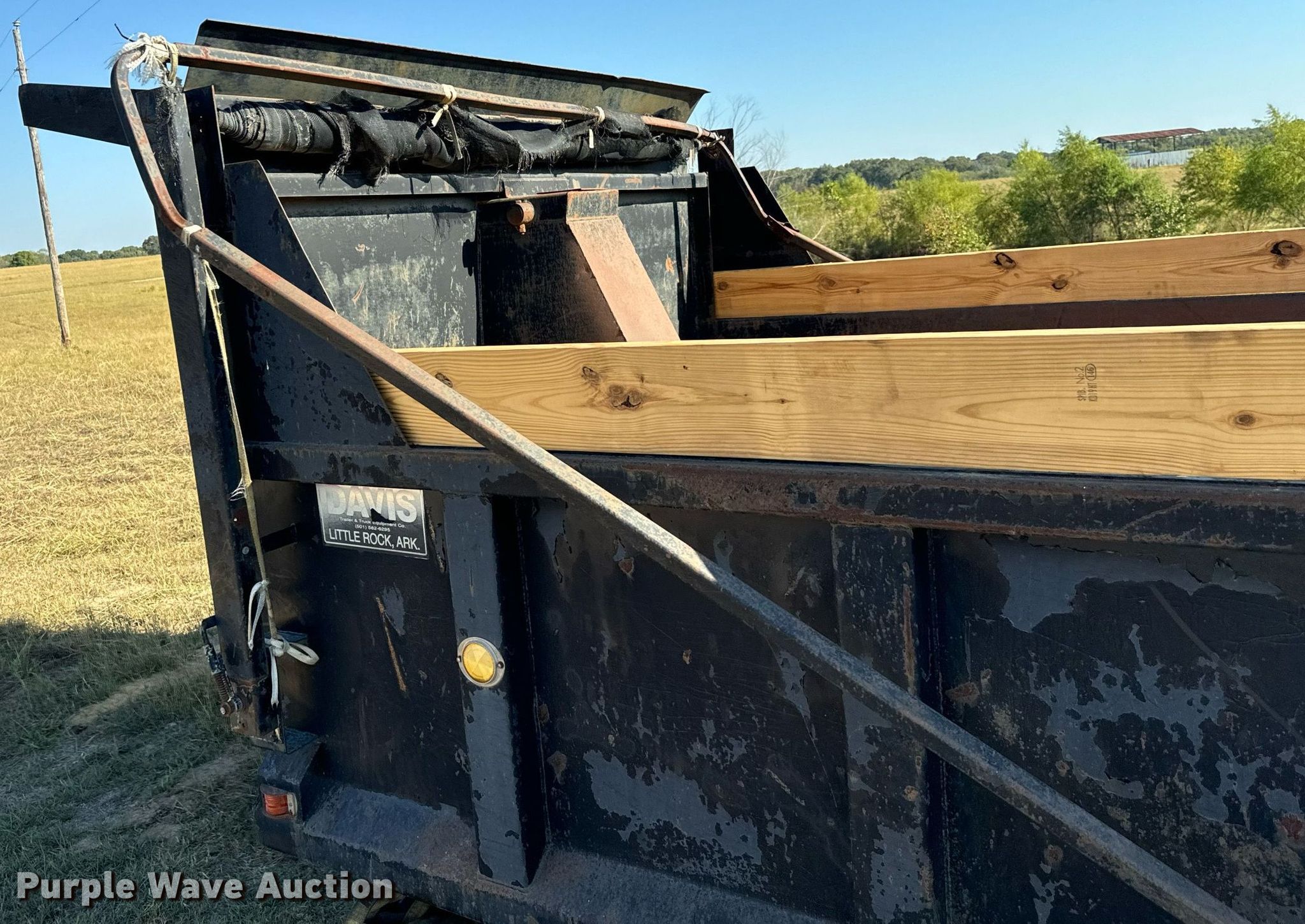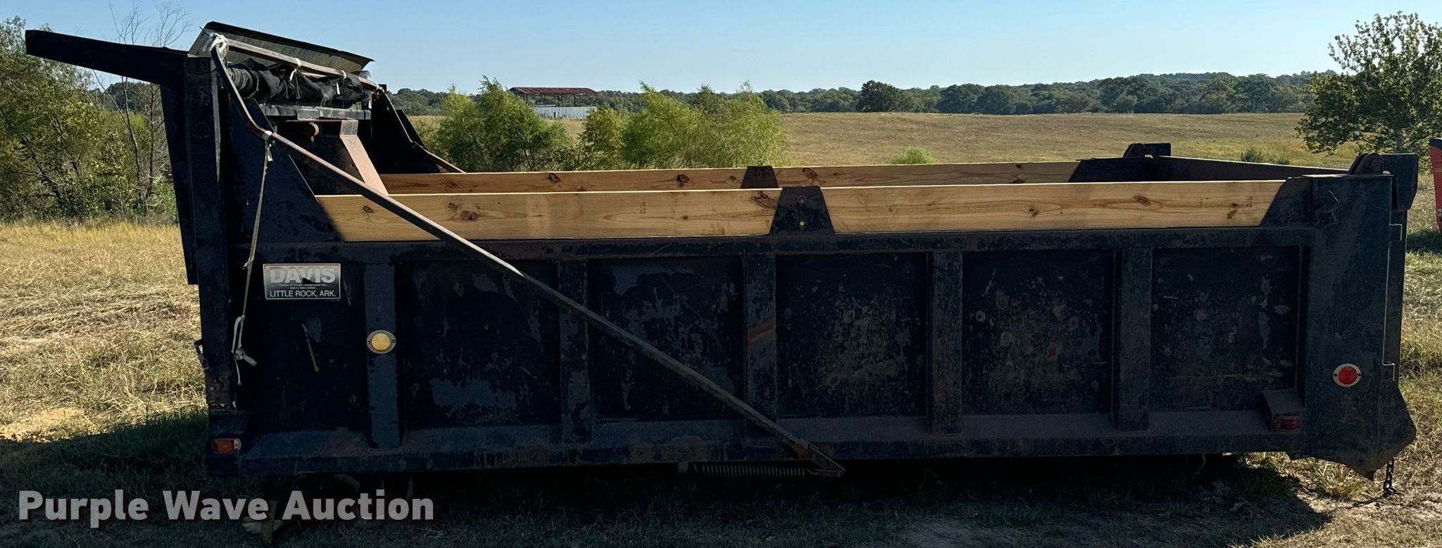Davis dump bed. 16' L x 8' W, Side height: 37", Side board height: 7", Bed type: Steel, Roll tarp, Ram: Single, End gate: Air operated. Atoka, OK 74525