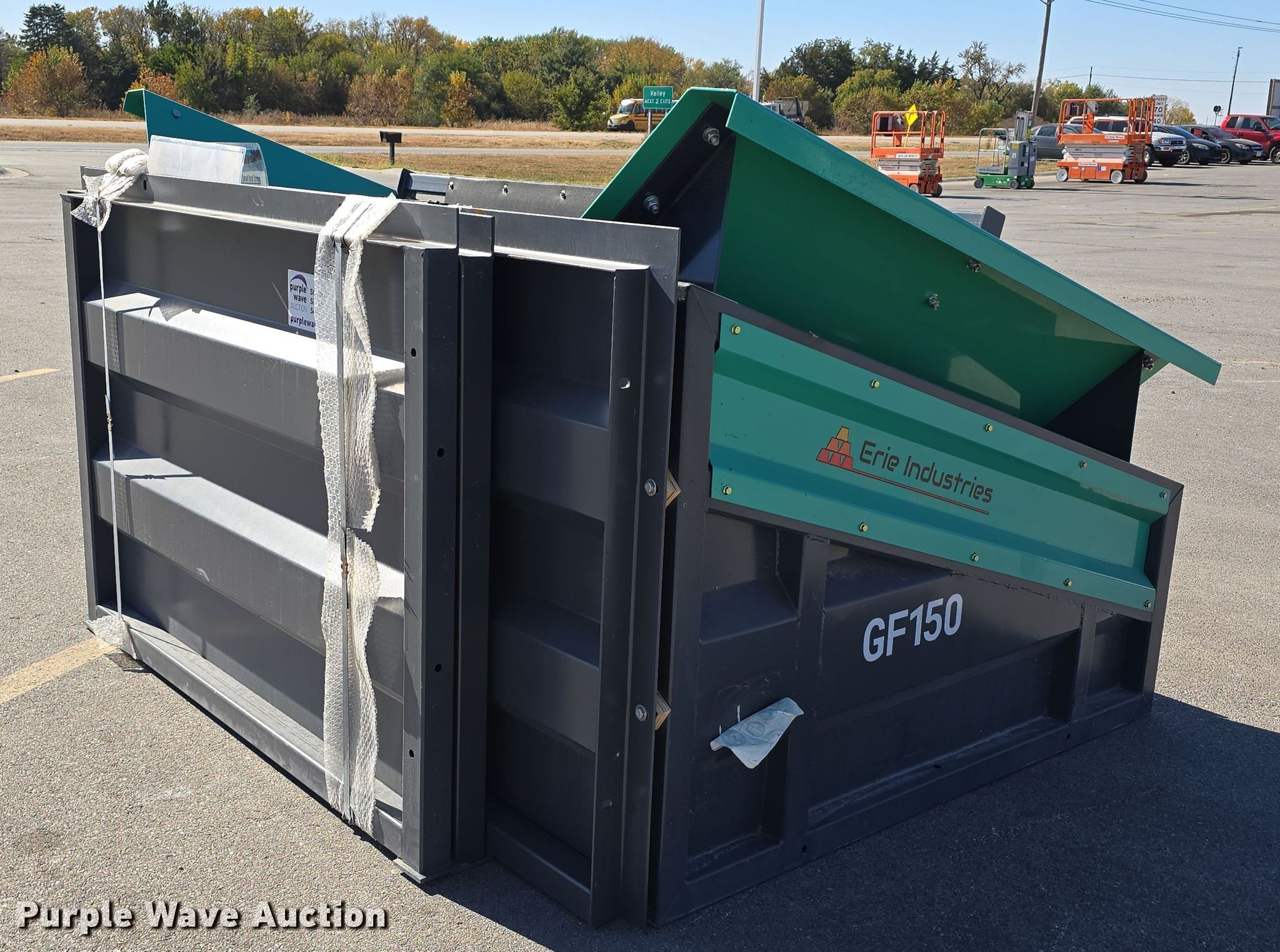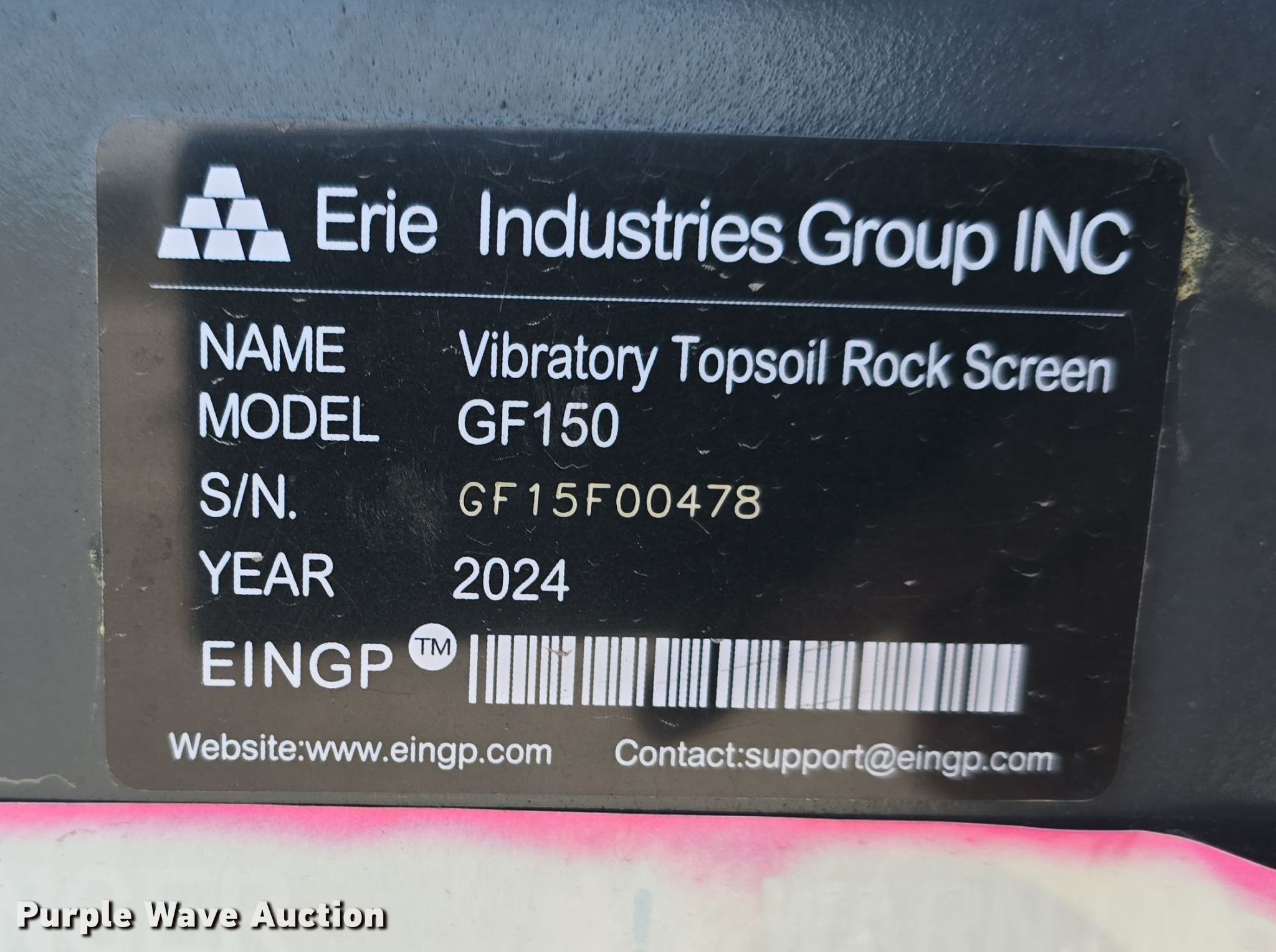 2024 Erie Industries Group GF150 vibratory screen. Serial: GF15F00478. Features Overall: 58" L x 86" W x 50" H, Screen deck Length: 58", Width: 59", Decks: Single, Screen size Top: 0.75", Vibrating. Notes Unused. Jordan Machinery/ S & N Auto Sales. Waterloo, NE 68069