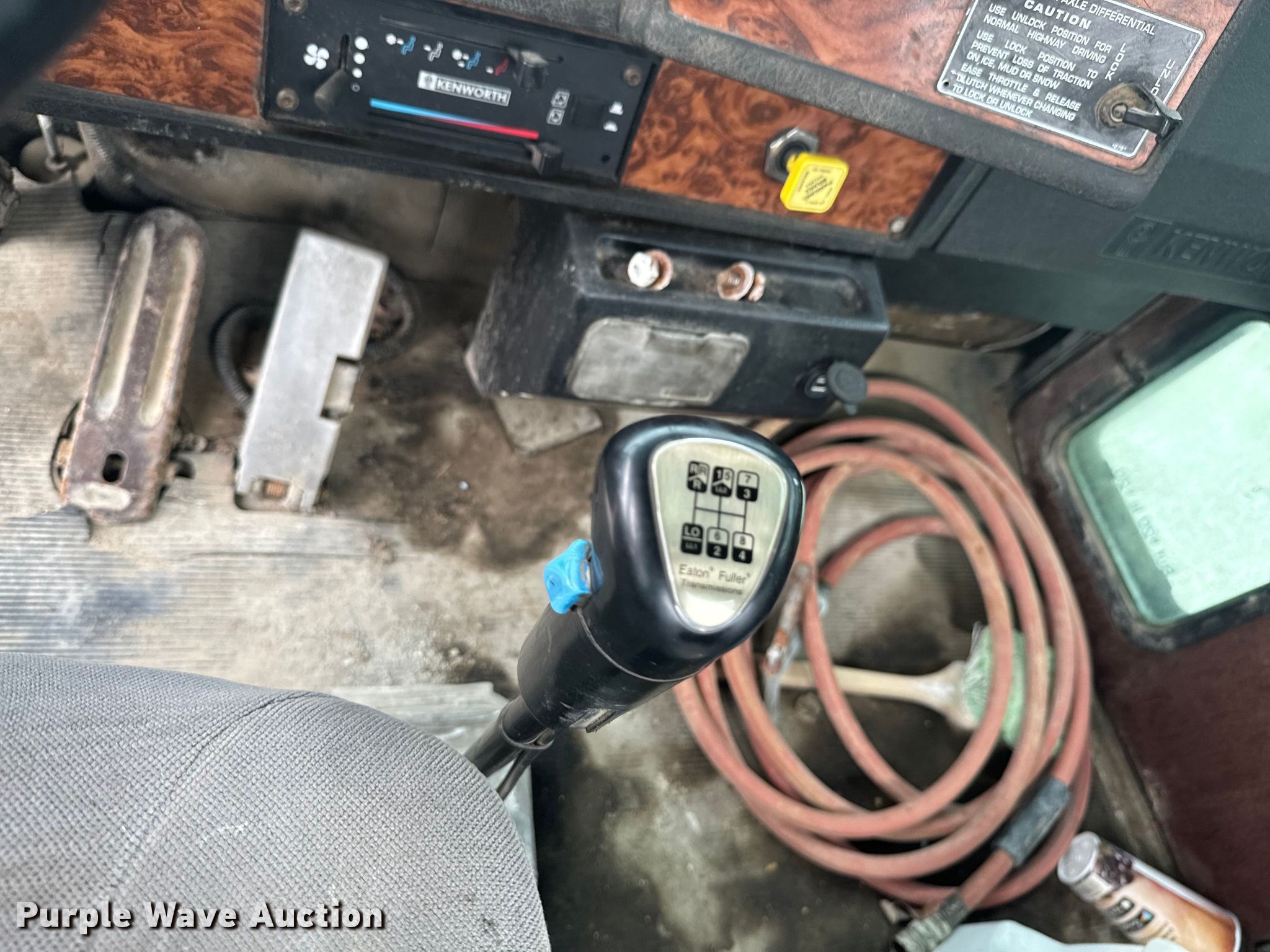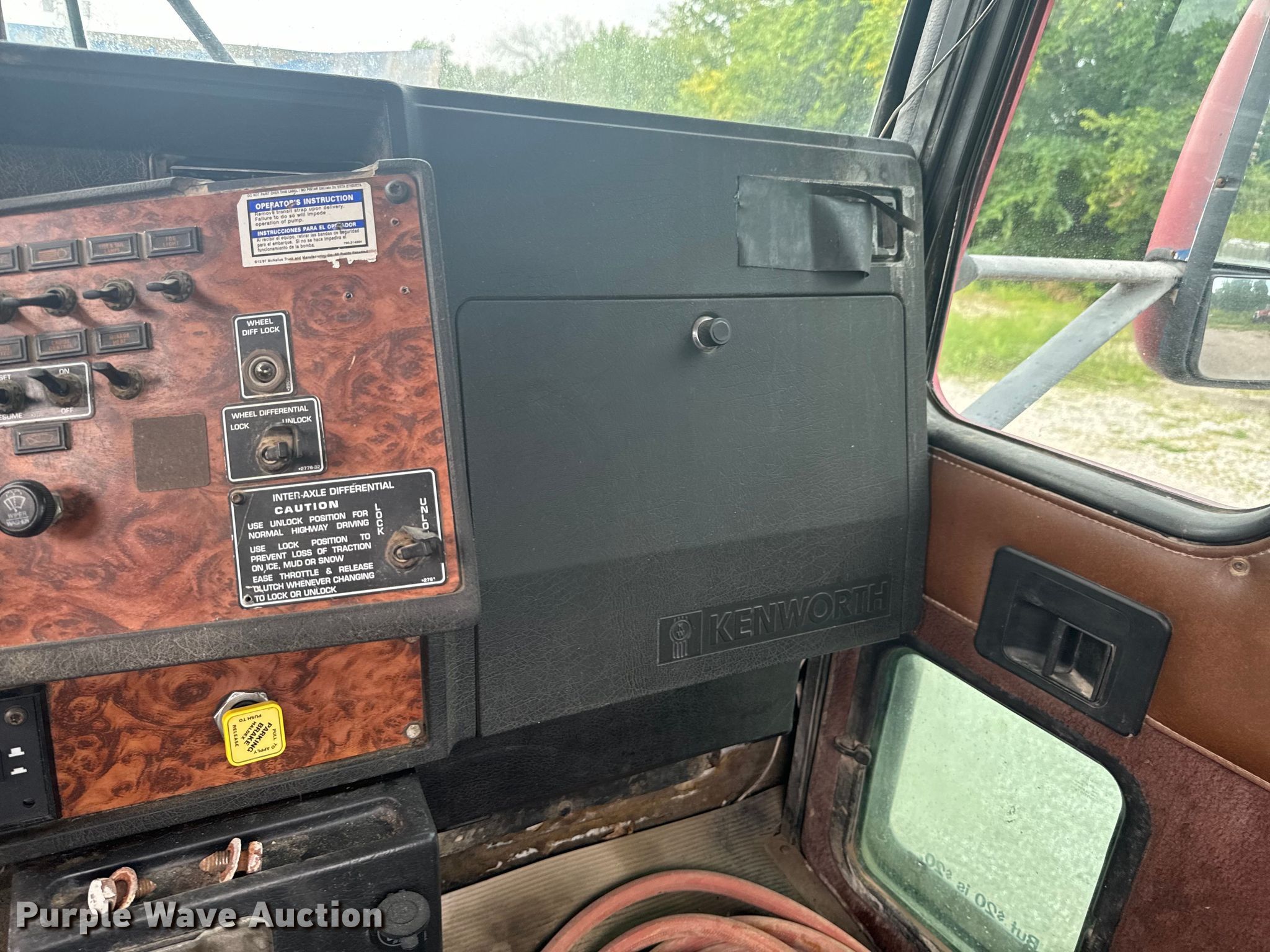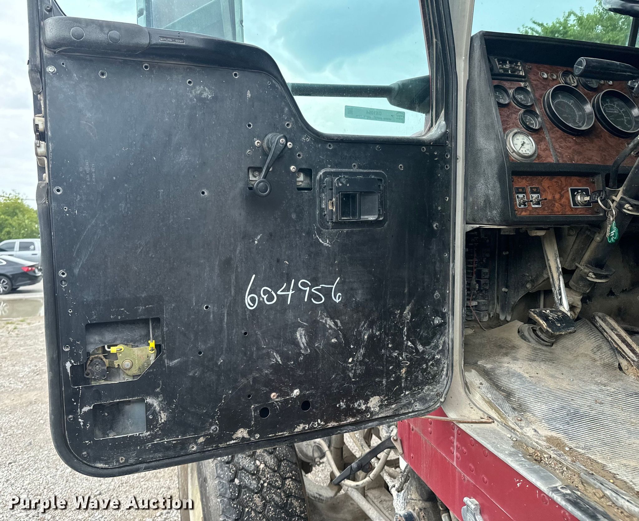 1999 Kenworth W900 ready mix truck cab and chassis. Miles: 254,429 on odometer, Hours: 157 on meter, VIN: 1NKWL00XXXR824218. Engine Cummins ISM, Displacement: 10.8L, Cylinders: 6, Fuel type: Diesel. Transmission Eaton Fuller, Manual, Speed: 11. Chassis Axles: Quad, Pusher axle Steerable, Tag axle, Differential lock: Full, Suspension: Air, Brakes: Air, PTO. Interior AC, Heat, Heated mirrors, Cruise control. Features Discharge: Rear, In-cab controls, Rear drum controls, Water tank capacity: 150 gallons, Chute Extensions: 3, Chute type: Steel. Tires Front: 425/65R22.5, Rear: 11R22.5, Lift axle: 295/85R22.5. Notes No barrel, Passenger seat missing, Passenger door issues, does not open. Kansas title. O'Brien Ready Mix, Inc.. Oswego, KS 67356