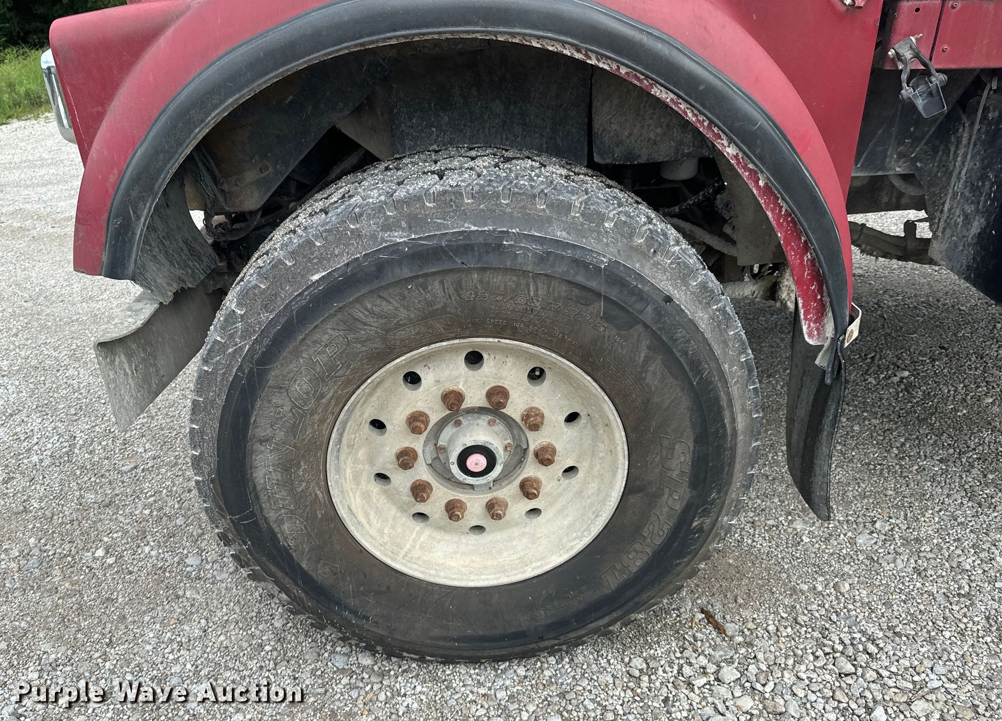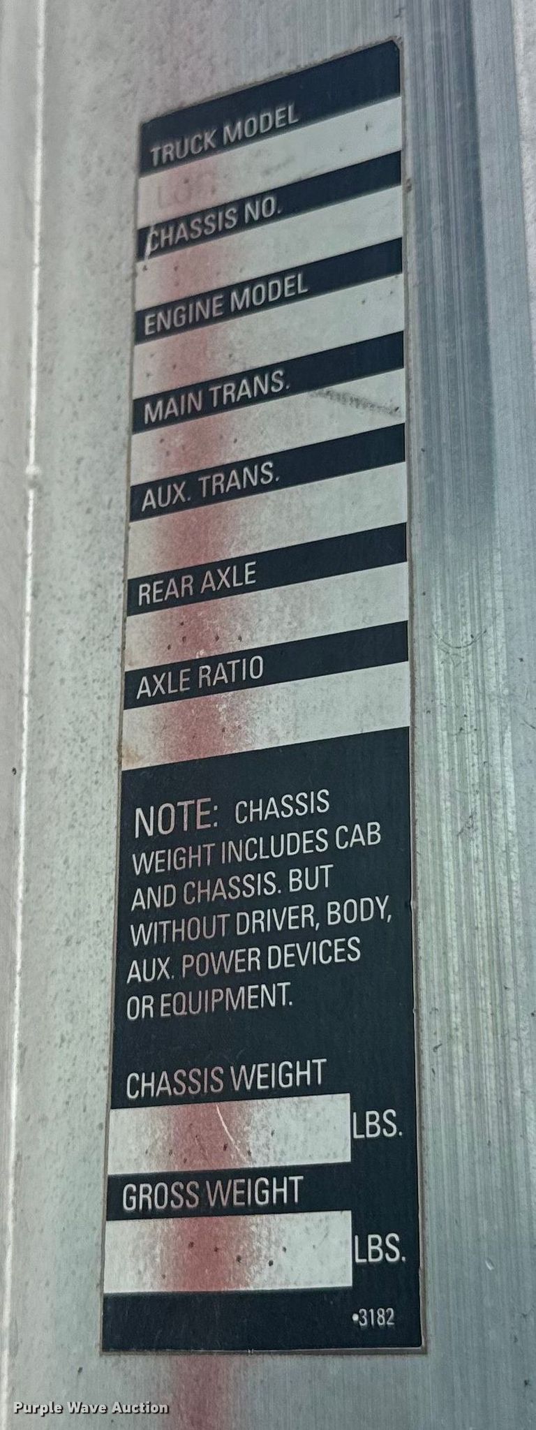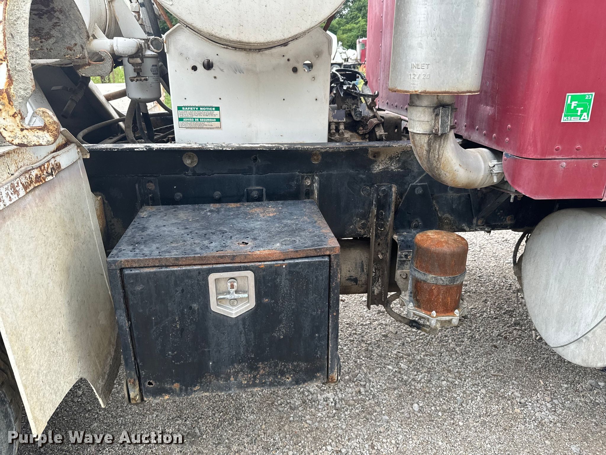 1999 Kenworth W900 ready mix truck cab and chassis. Miles: 254,429 on odometer, Hours: 157 on meter, VIN: 1NKWL00XXXR824218. Engine Cummins ISM, Displacement: 10.8L, Cylinders: 6, Fuel type: Diesel. Transmission Eaton Fuller, Manual, Speed: 11. Chassis Axles: Quad, Pusher axle Steerable, Tag axle, Differential lock: Full, Suspension: Air, Brakes: Air, PTO. Interior AC, Heat, Heated mirrors, Cruise control. Features Discharge: Rear, In-cab controls, Rear drum controls, Water tank capacity: 150 gallons, Chute Extensions: 3, Chute type: Steel. Tires Front: 425/65R22.5, Rear: 11R22.5, Lift axle: 295/85R22.5. Notes No barrel, Passenger seat missing, Passenger door issues, does not open. Kansas title. O'Brien Ready Mix, Inc.. Oswego, KS 67356