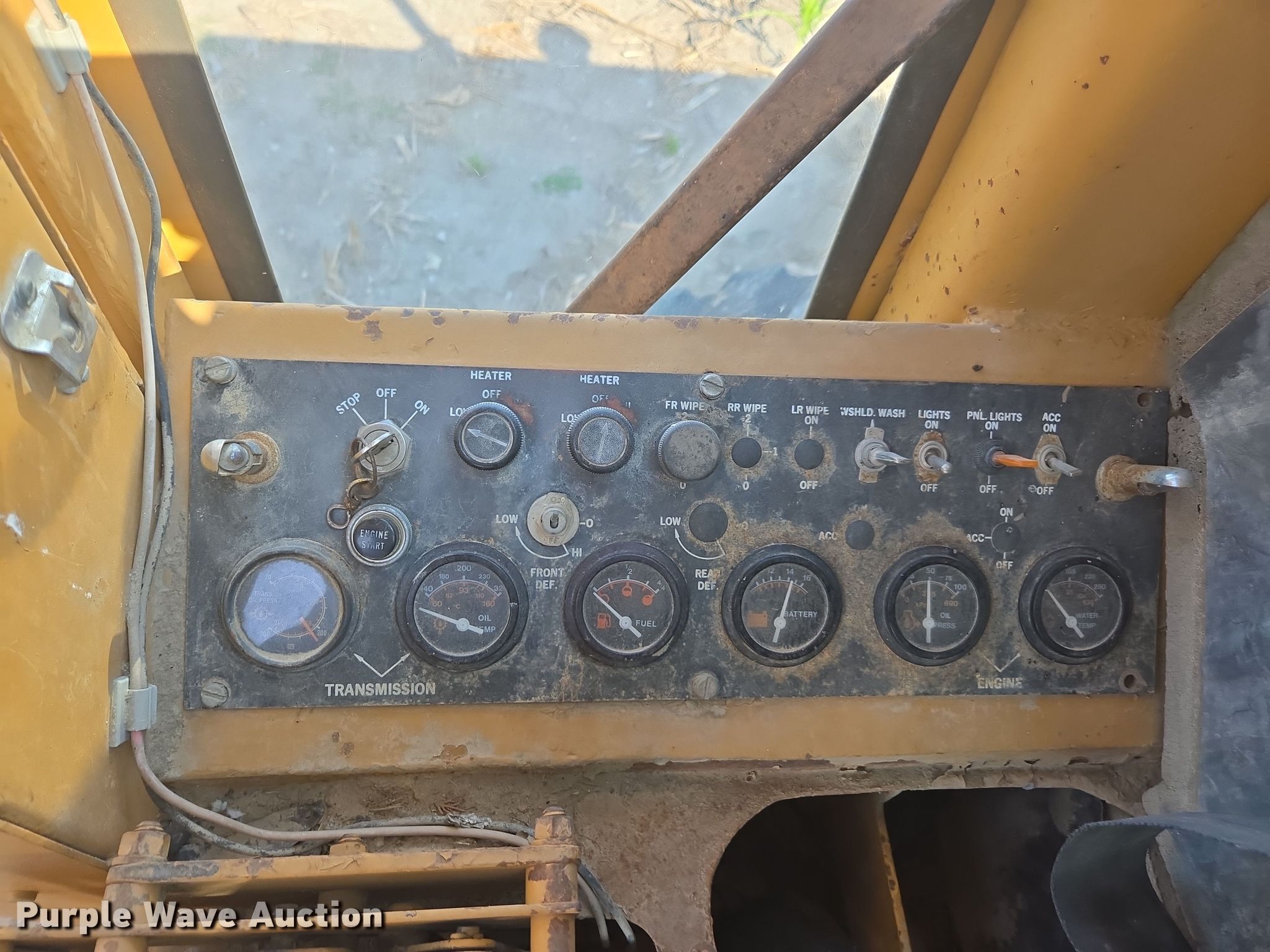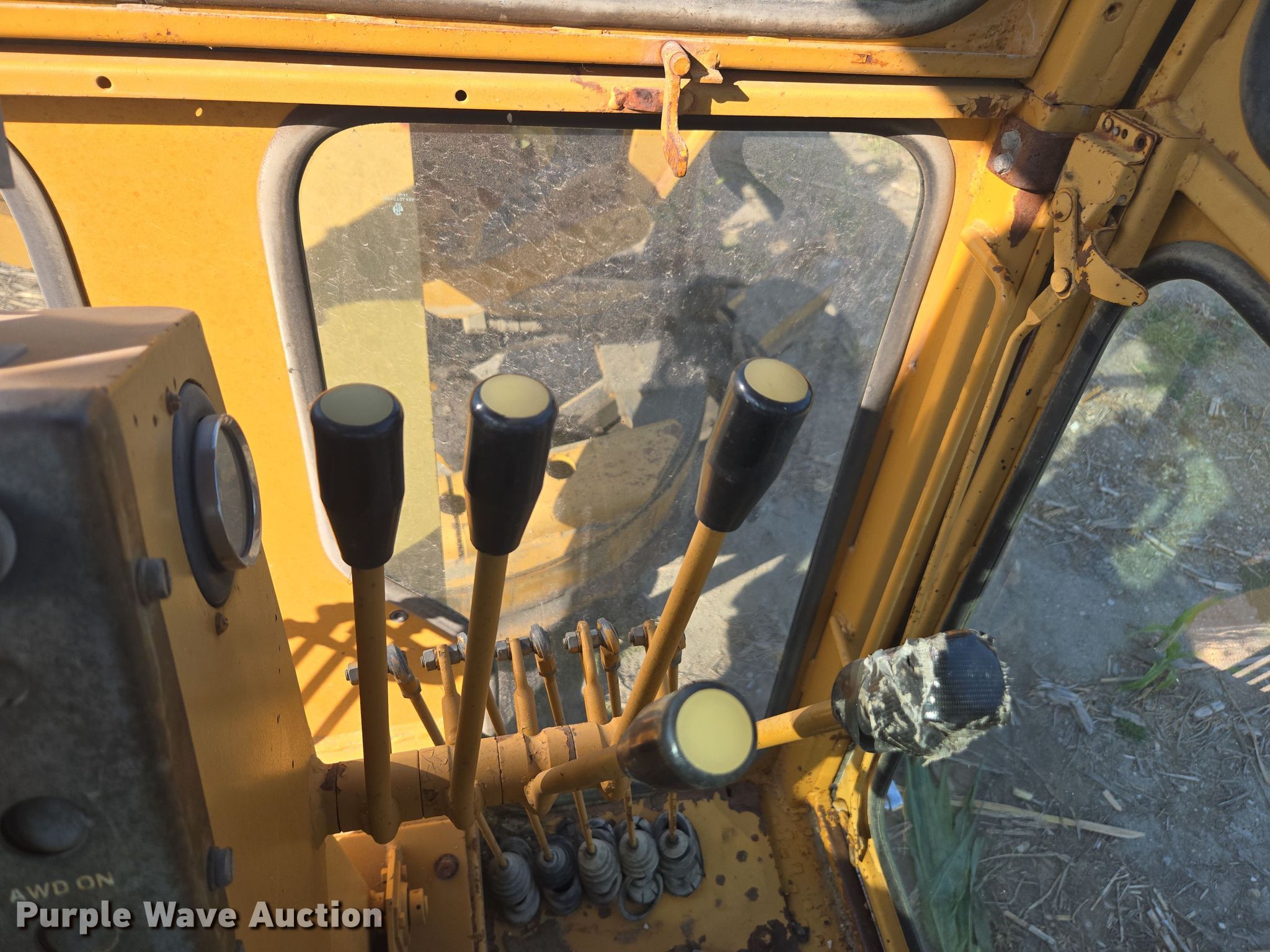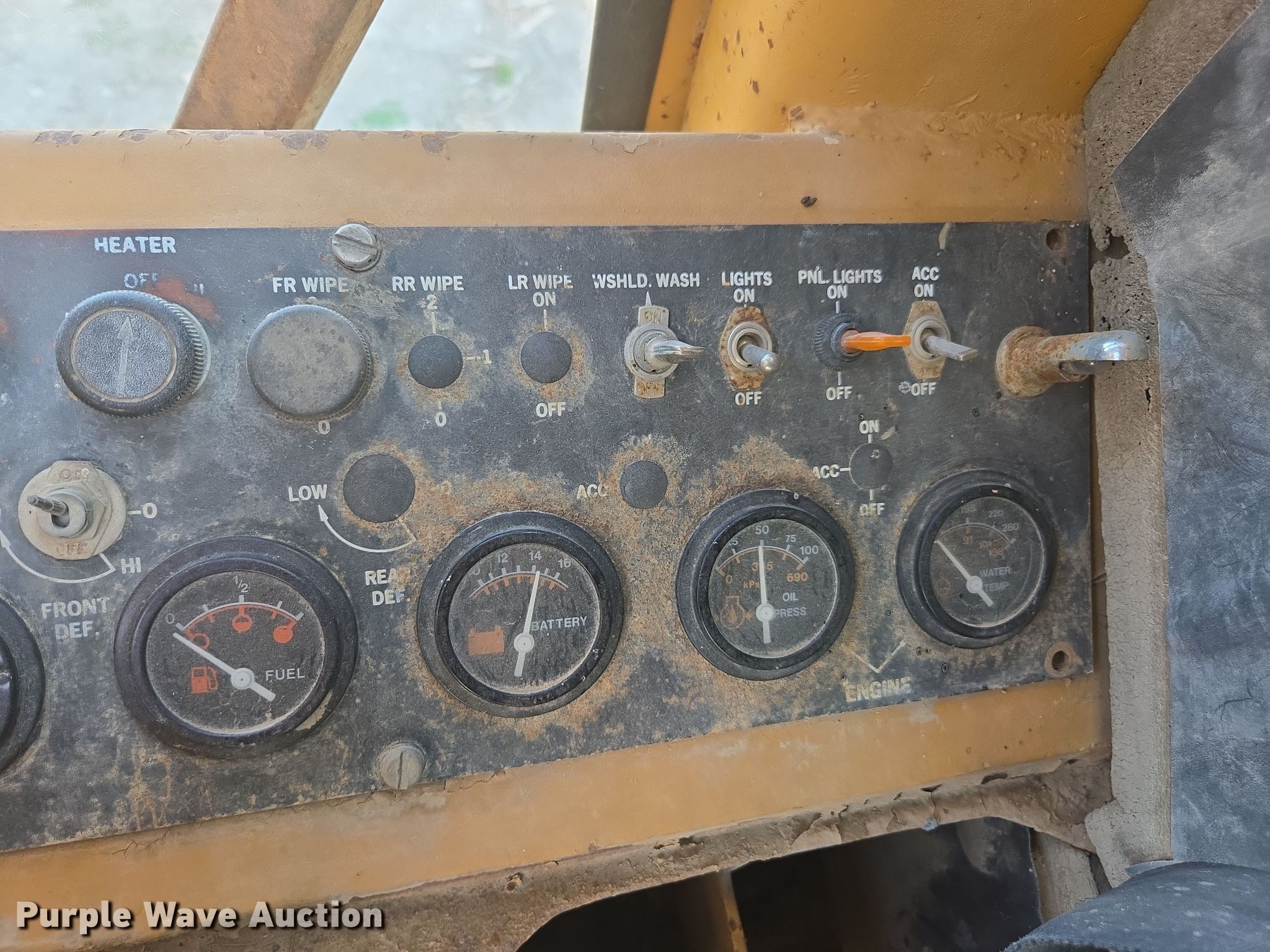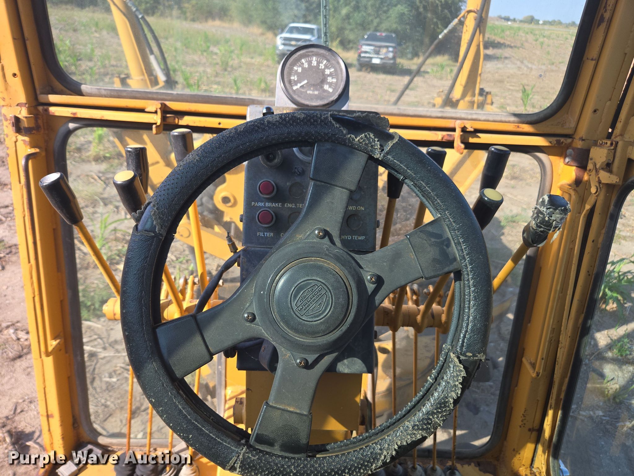 1987 Galion A400E motor grader. Serial: BZID-C11619. Engine International Harvester, Cylinders: 6, Fuel type: Diesel. Transmission Powershift, 6F - 3R. Operators station Enclosed cab, Heat, Hydraulic control valves: 9. Features Moldboard: Tip control, Side shift, Moldboard total width: 14', Scarifier Scarifier type: Mid-mounted Teeth: 5.. Tires Size: 14.00-24. Notes Hydraulic oil leak. GRS Bulldozing. Belvue, KS 66407