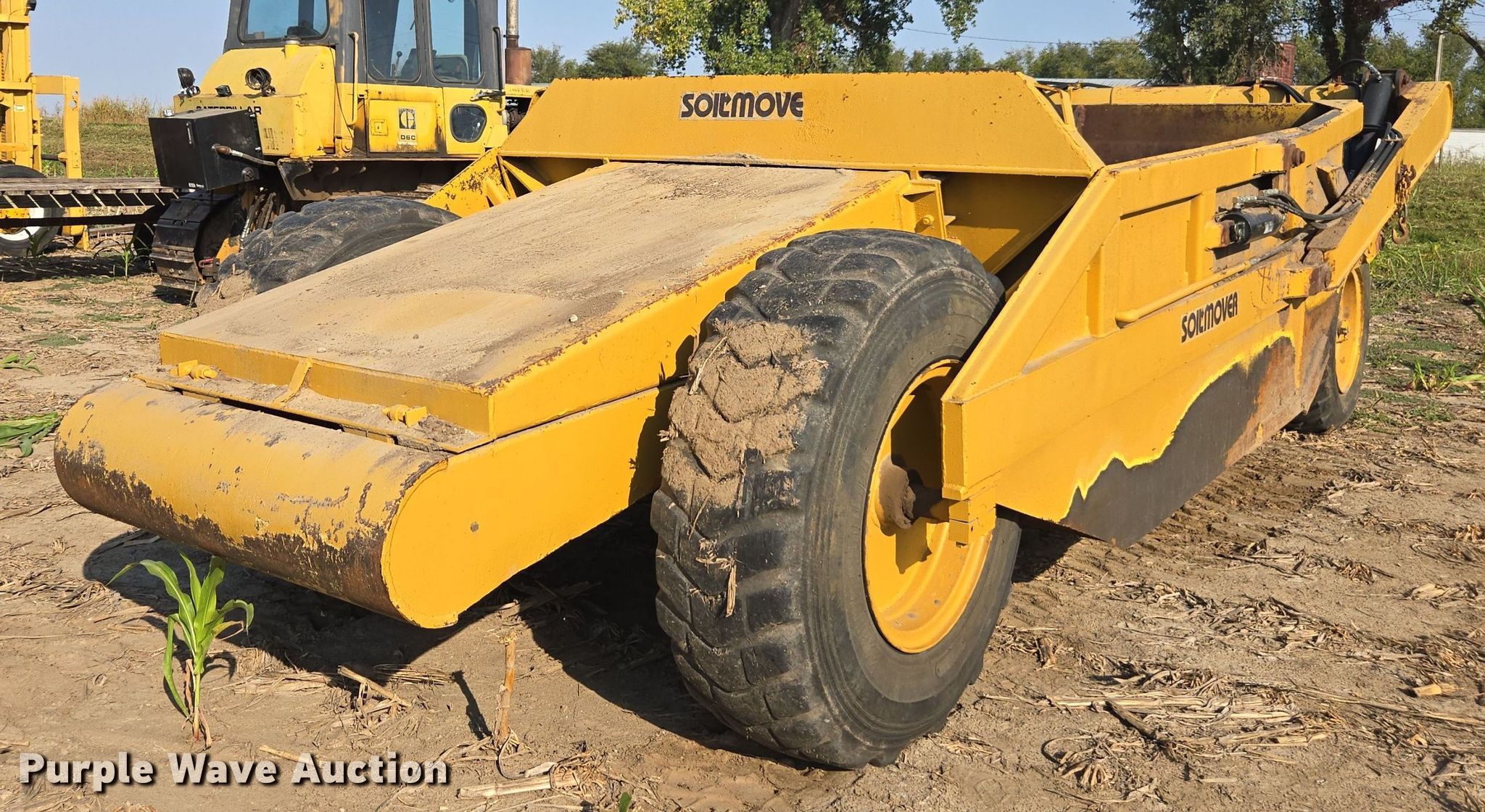 Soil Mover scraper. Features. Bowl capacity: 12 cu.yd., Hydraulic lift, Rear push block. Tires Front: 15.5-25, Rear: 17.5R25. Notes Dozer not included. GRS Bulldozing. Belvue, KS 66407