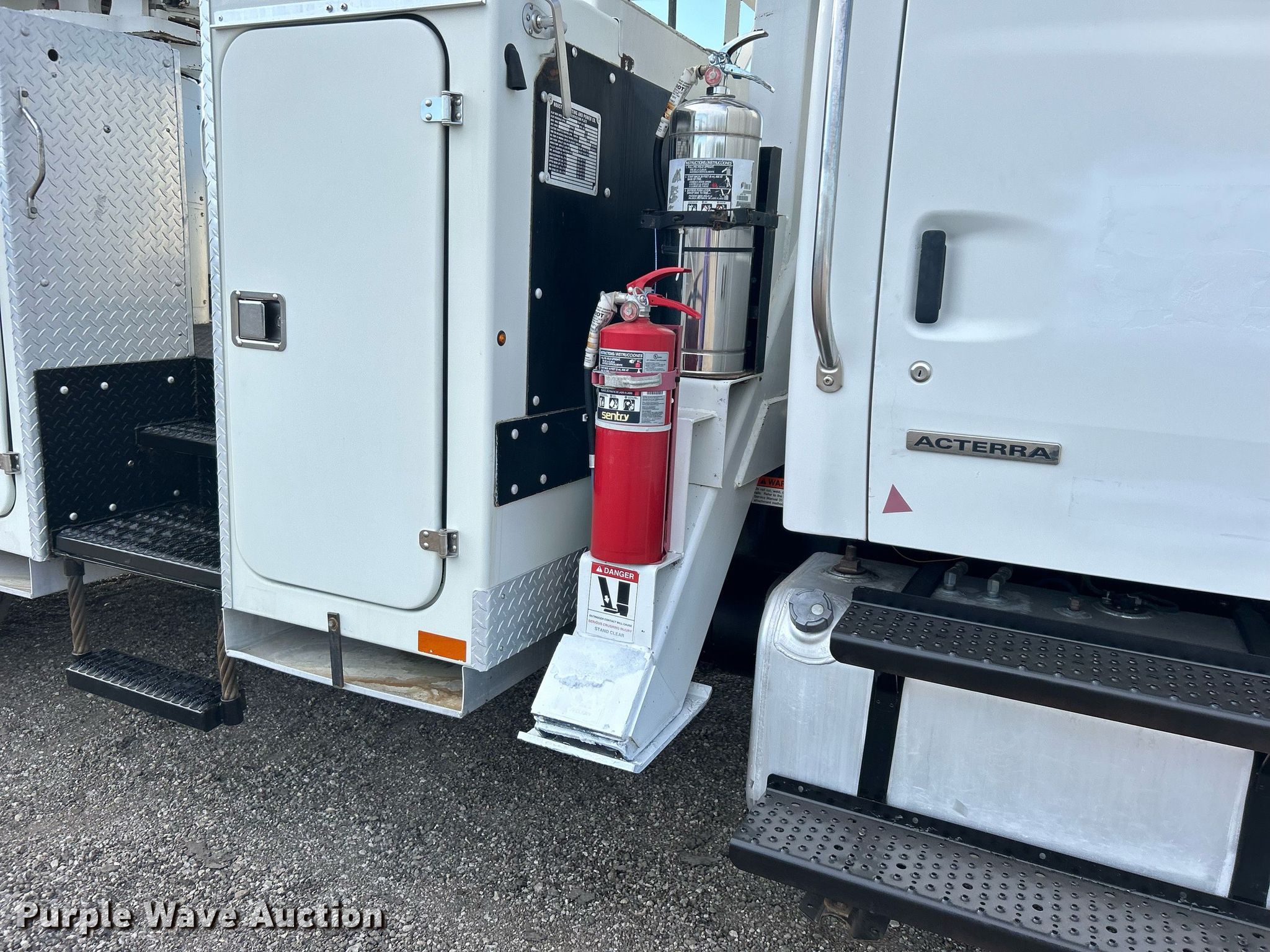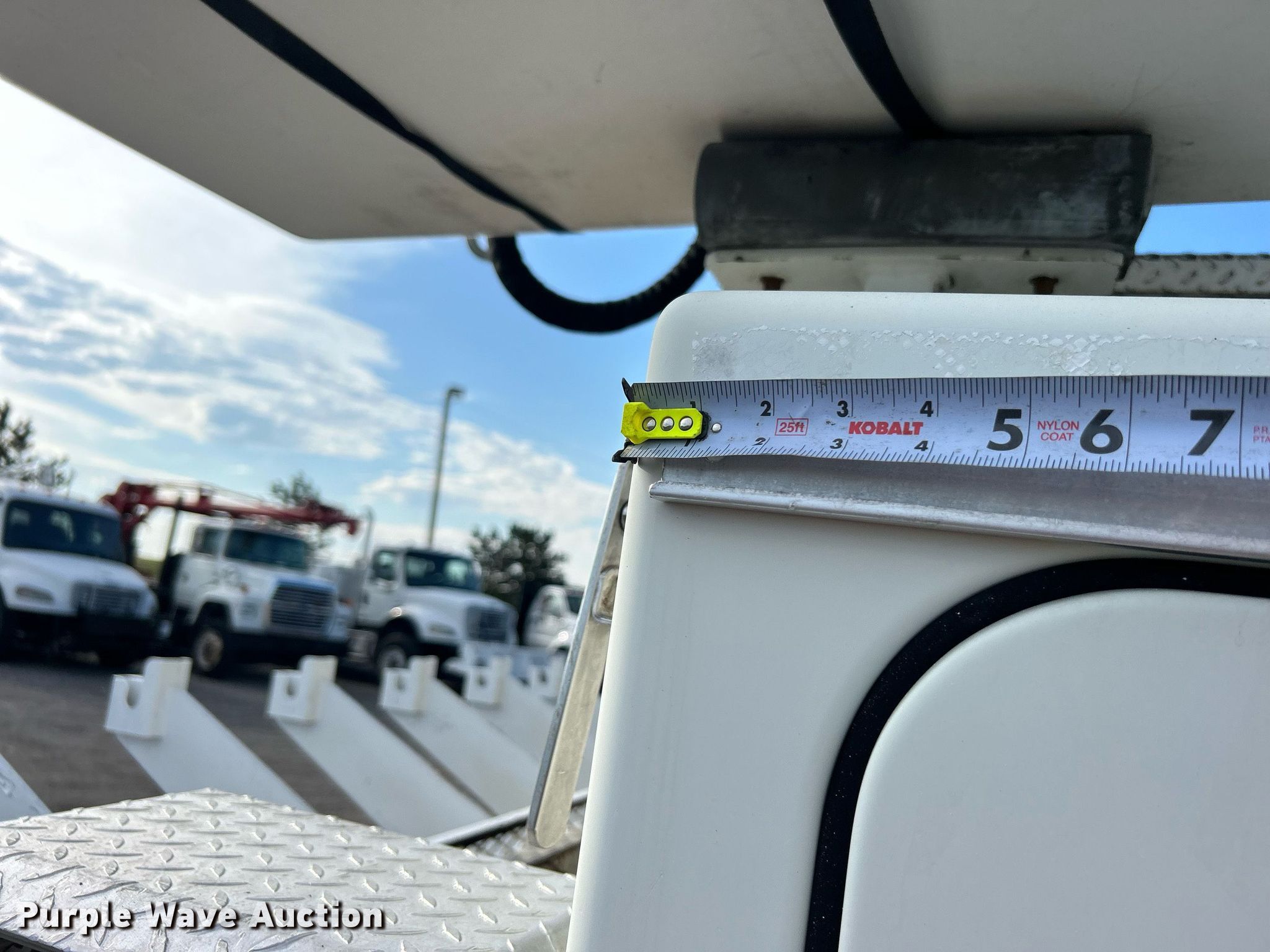 2007 Sterling Acterra bucket truck. Miles: 103,640 on odometer, Hours: 3,724 on meter, VIN: 2FZACGBS87AY38068. Engine Cummins ISC260, Serial: 46667160, Displacement: 8.3L, Cylinders: 6, Fuel type: Diesel, HP: 260. Transmission Automatic. Chassis Axles: Single, Differential lock: Inter-axle, Suspension: Air, Brakes: Air, PTO, Wet kit, GVWR: 33,000 lbs. Interior AC, Heat, Cruise control, Brake controller. Features Bed Brand FX, 13' L x 94" W, Engine Kubota V1505-EU1, Cylinders: 4, Fuel: Diesel, Boom 2006 Versalift VO-355-MHI, Serial: DN060013, Maximum lift capacity: 350 lbs, Boom type: Articulating, Insulated, Telescopic, Man basket, Boom controls Platform/ basket.. Tires Size: 11R22.5. Oklahoma title. Title distribution may be delayed up to 14 days from verification of funds. Collinsville, OK 74021