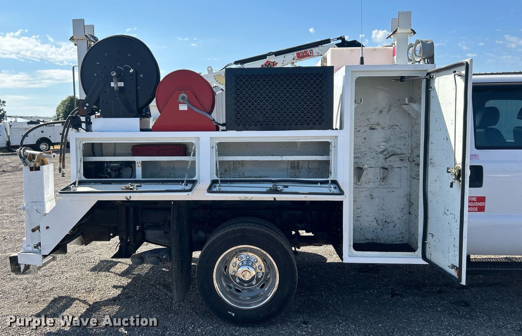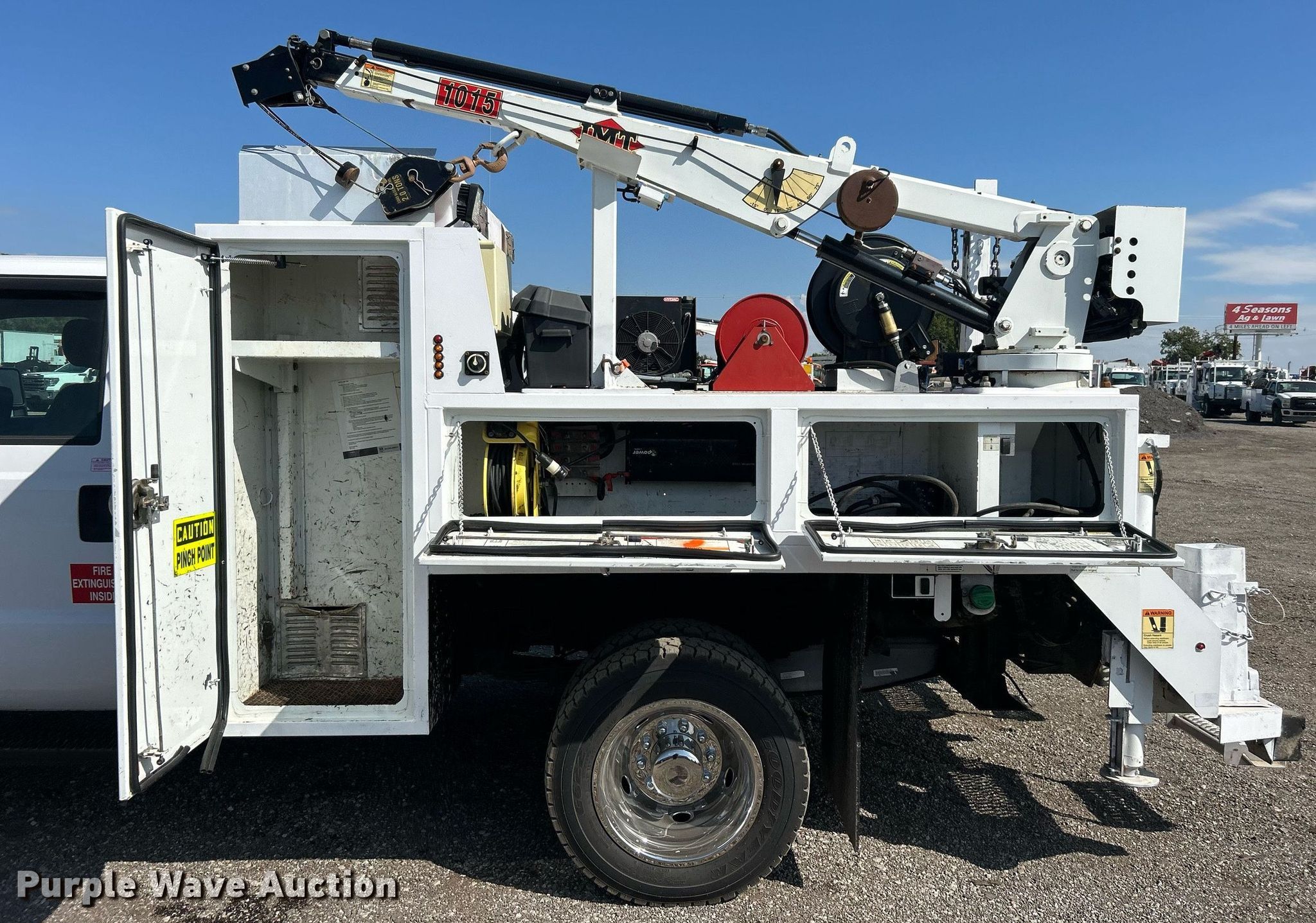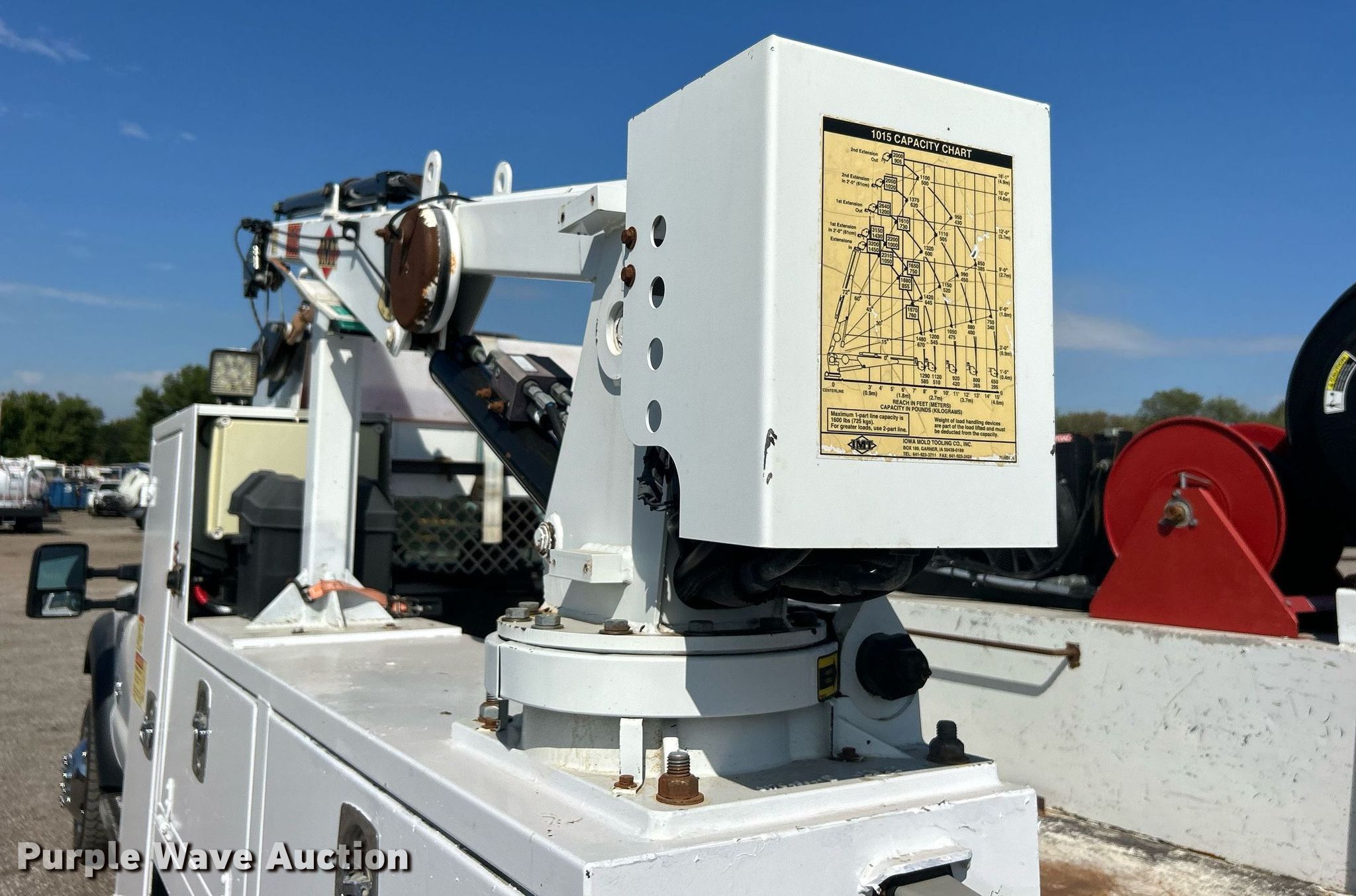 2016 Ford F550 Super Duty Crew cab utility / service truck. Miles: 57,913 on odometer, VIN: 1FD0W5HT5GEC89315. Engine Displacement: 6.7L, Cylinders: 8, Fuel type: Diesel. Transmission Automatic. Chassis Four wheel drive, Axles: Single, Suspension: Spring, Brakes: Hydraulic, PTO, GVWR: 19,500 lbs, Wheelbase: 176". Interior AC, Heat, Cruise control, Auxiliary controls, Brake controller. Features Bed 9' 2" L x 93" W, Oil/lube system Hose reels, Crane IMT 1015, Maximum boom length: 16' Maximum lift capacity: 3,200 lbs.. Tires Size: 225/70R19.5. Oklahoma title. Collinsville, OK 74021