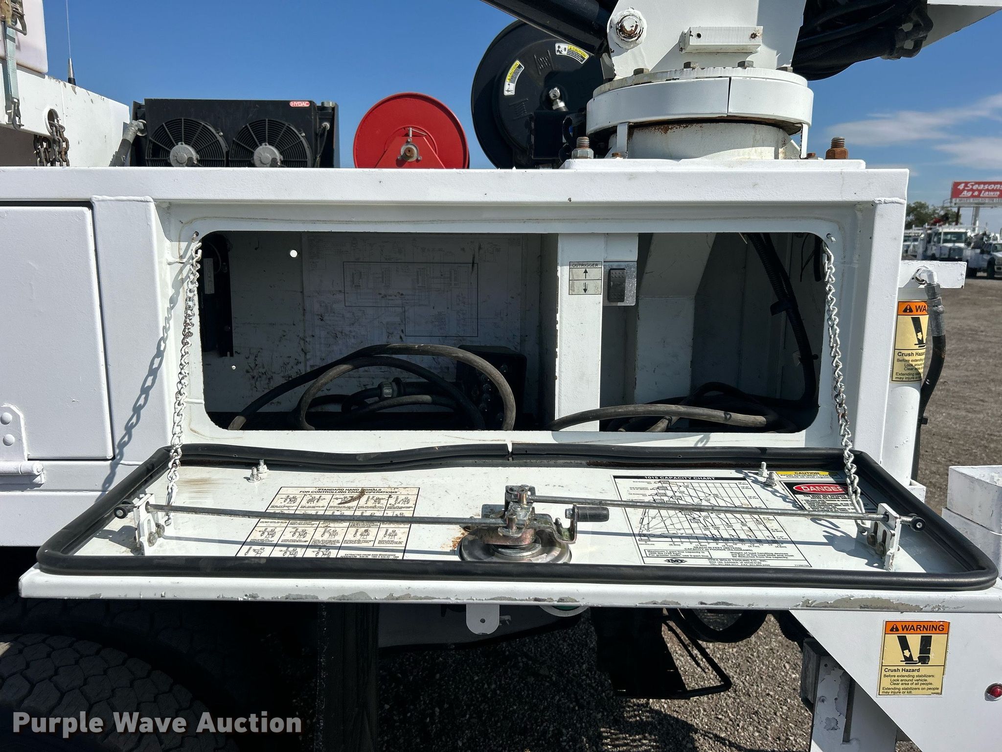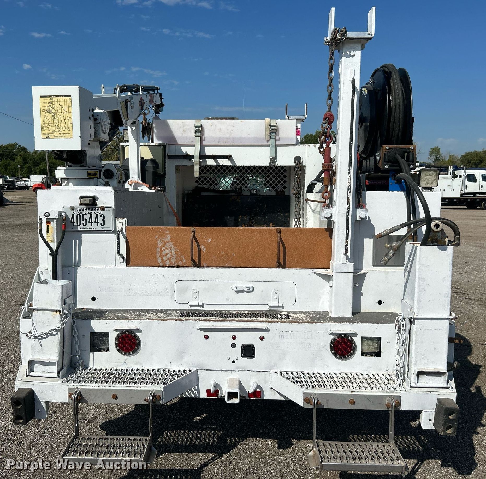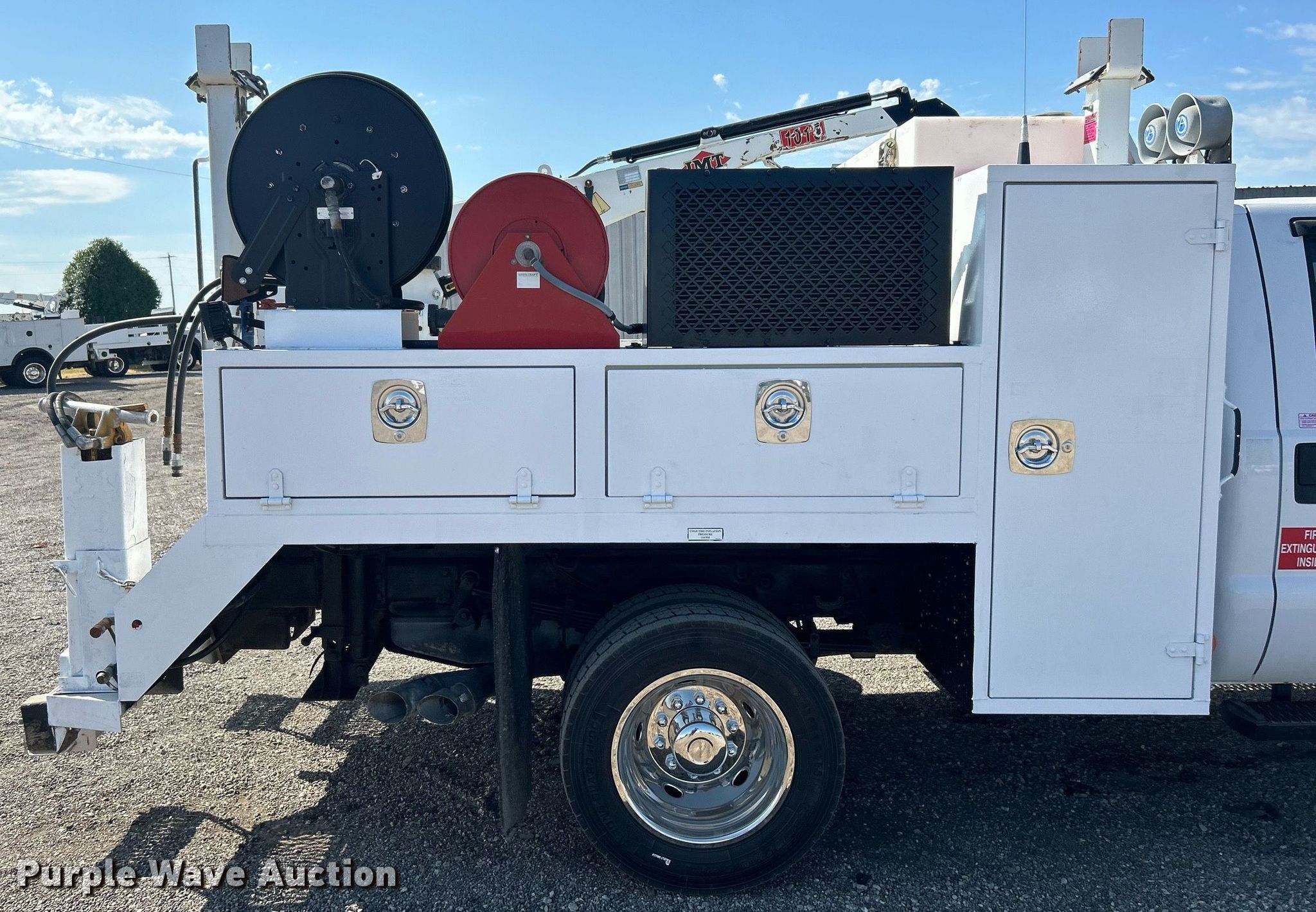 2016 Ford F550 Super Duty Crew cab utility / service truck. Miles: 57,913 on odometer, VIN: 1FD0W5HT5GEC89315. Engine Displacement: 6.7L, Cylinders: 8, Fuel type: Diesel. Transmission Automatic. Chassis Four wheel drive, Axles: Single, Suspension: Spring, Brakes: Hydraulic, PTO, GVWR: 19,500 lbs, Wheelbase: 176". Interior AC, Heat, Cruise control, Auxiliary controls, Brake controller. Features Bed 9' 2" L x 93" W, Oil/lube system Hose reels, Crane IMT 1015, Maximum boom length: 16' Maximum lift capacity: 3,200 lbs.. Tires Size: 225/70R19.5. Oklahoma title. Collinsville, OK 74021