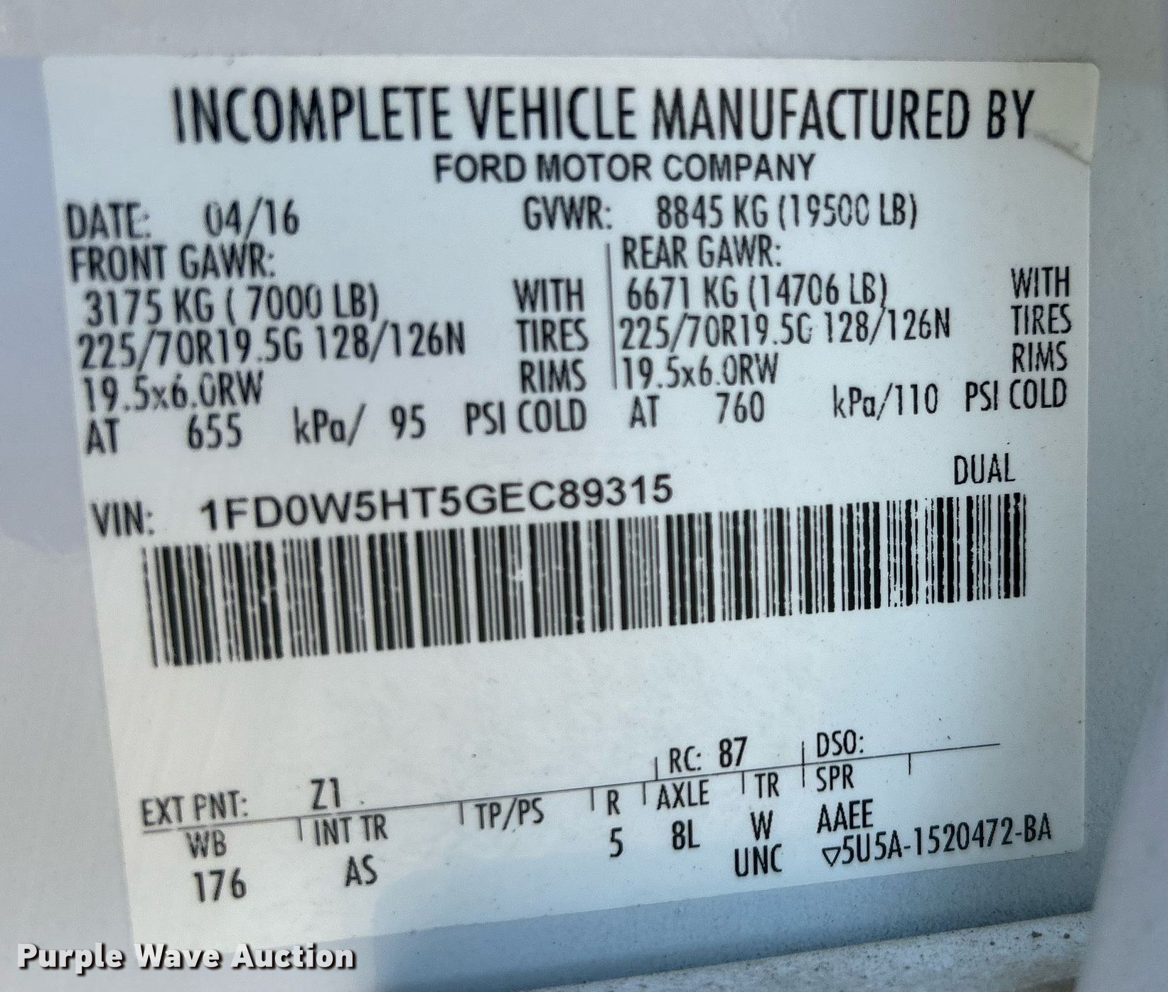 - VIN: 1FD0W5HT5GEC89315