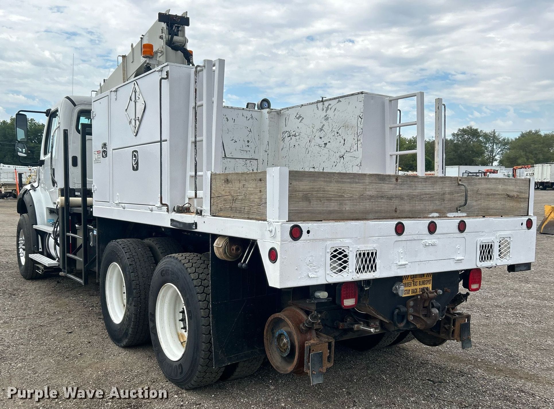 Purple Wave is selling a used Crane Truck in Oklahoma. This item is a 2012 Freightliner Business Class M2 crane truck with the following: Miles: 124,291 on odometer, Hours: 9,363 on meter, VIN: 1FVHC7DV2CDBU0399