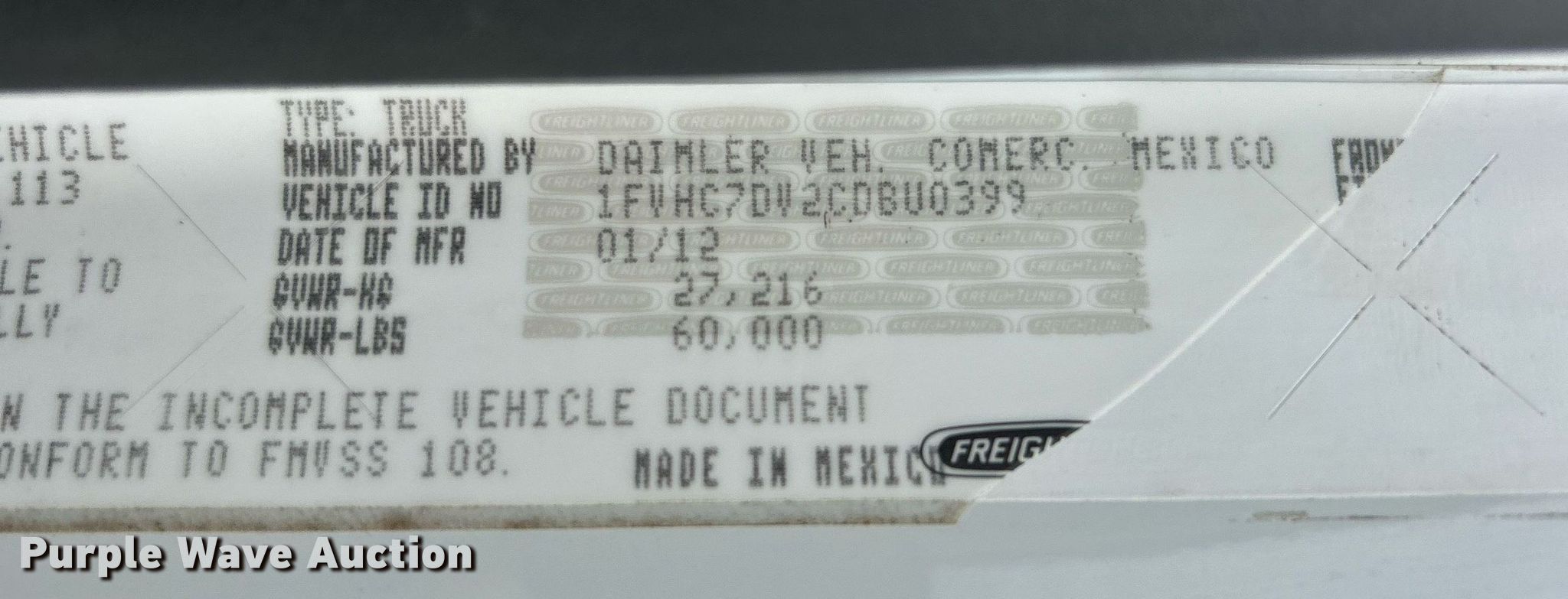 - VIN: 1FVHC7DV2CDBU0399