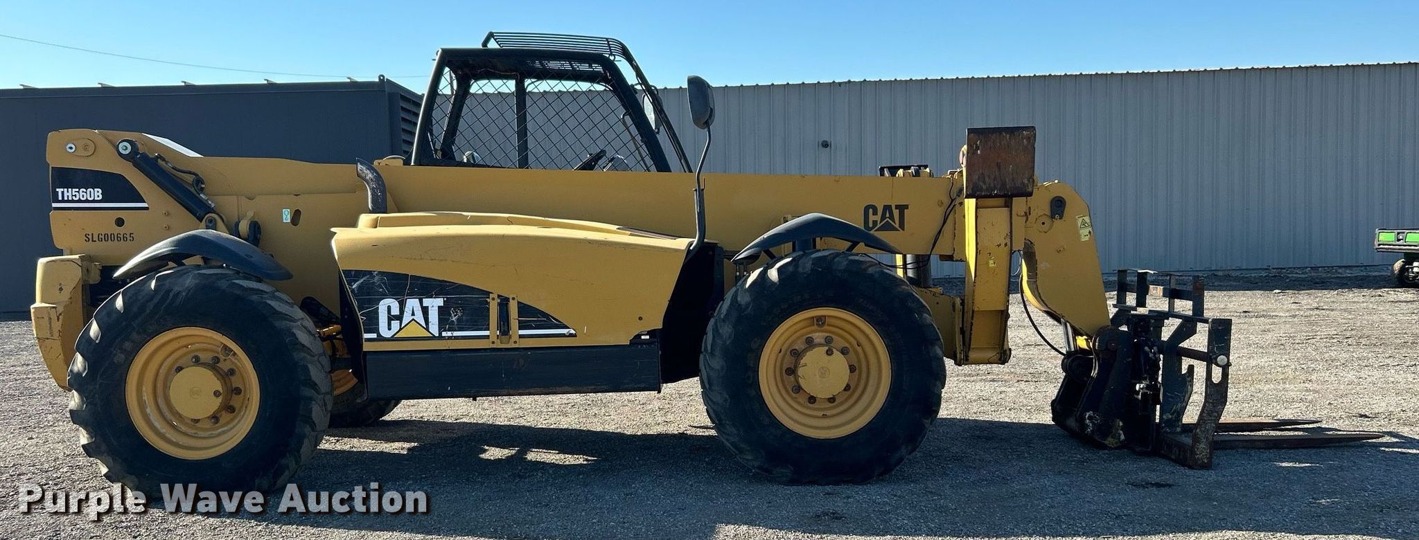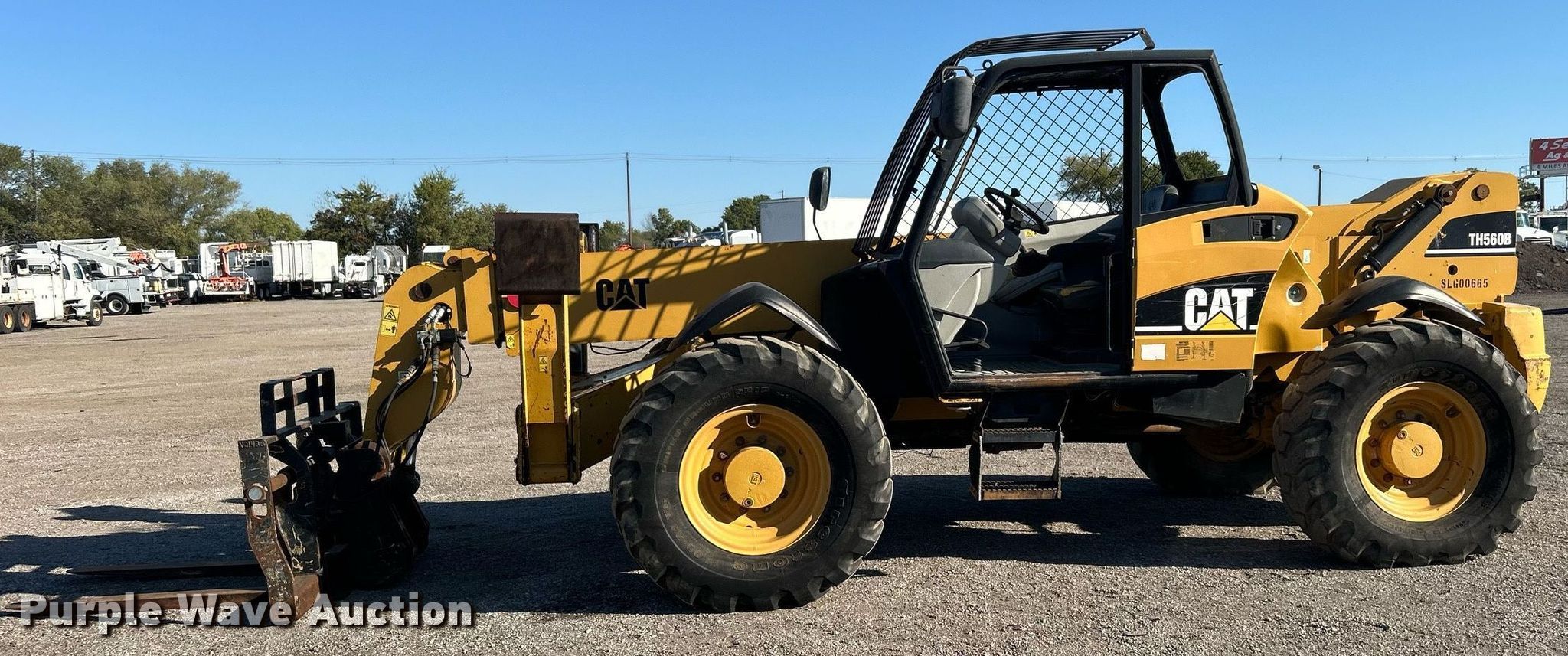 Purple Wave is selling a used Telehandler in Oklahoma. This item is a 2004 Caterpillar TH560B telehandler with the following: Hours: 8,849 on meter, Serial: CATTH560VSLG00665