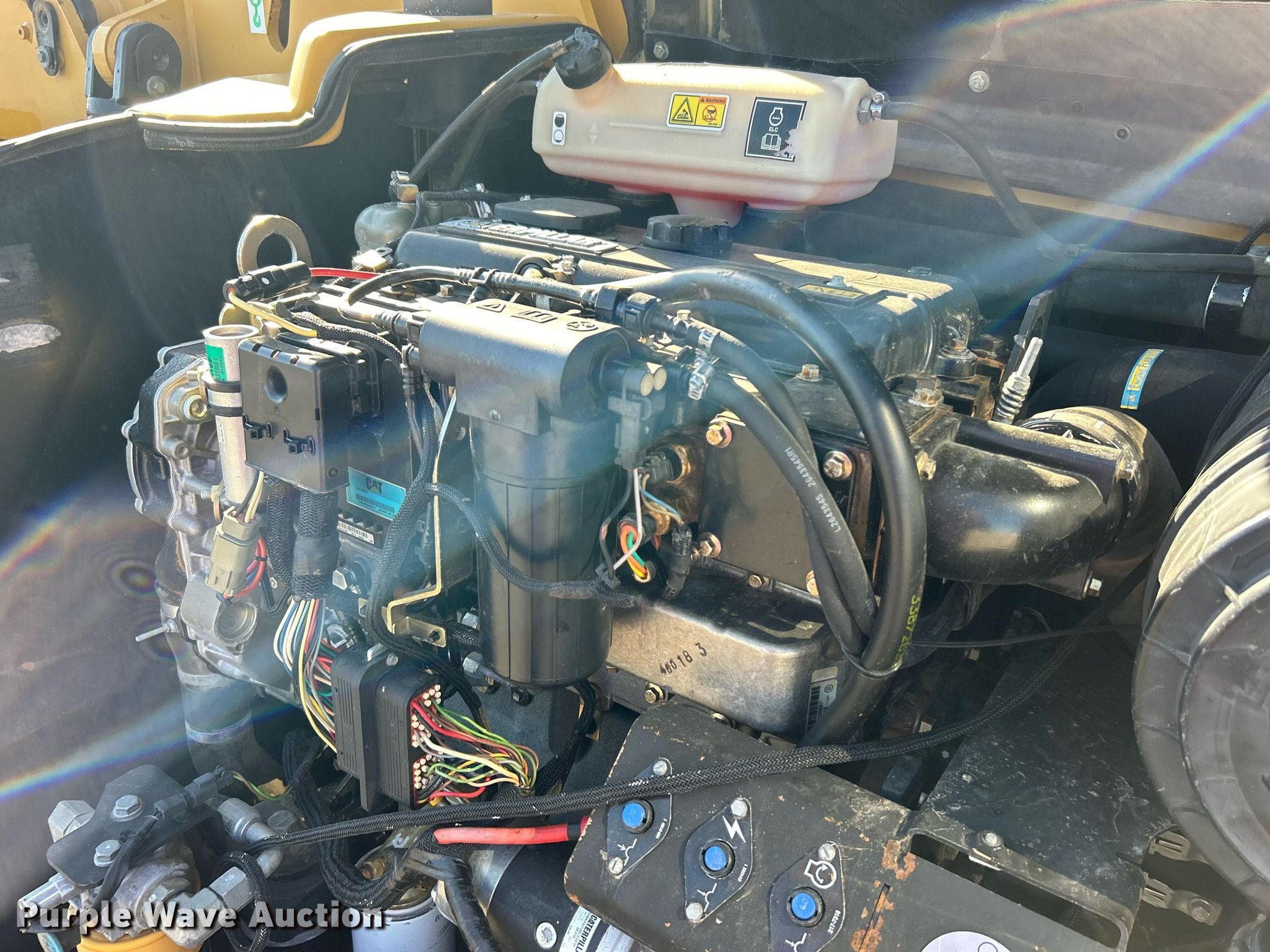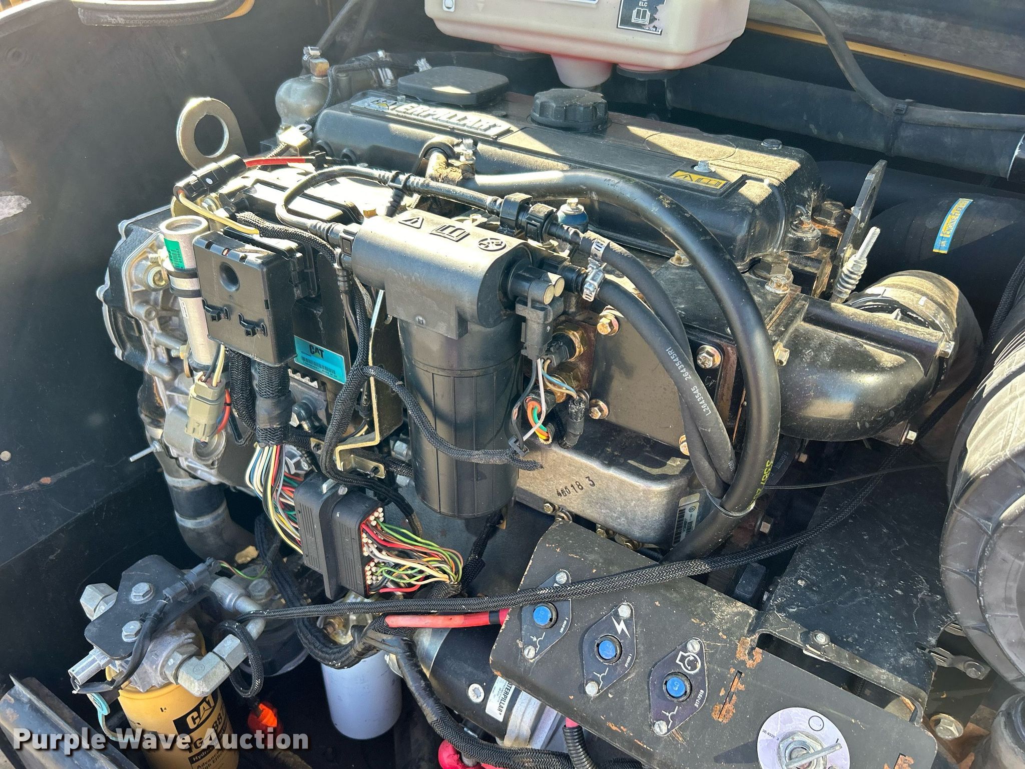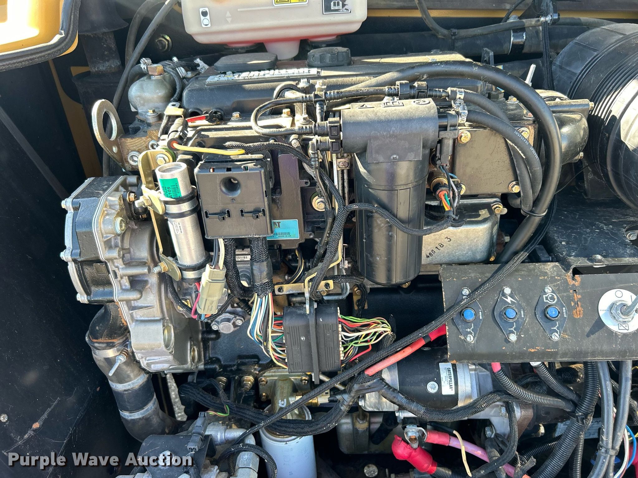 2004 Caterpillar TH560B telehandler. Hours: 8,849 on meter, Serial: CATTH560VSLG00665. Engine Caterpillar, Cylinders: 4, Fuel type: Diesel. Transmission Powershift, 4F - 4R, Four wheel drive, Differential lock. Operators station Canopy. Features Maximum lift capacity: 11,000 lbs, Maximum lift height: 45', Boom stages: 3, Fork length: 47", Tilt carriage, Hydraulic outriggers, Hydraulic leveling, Quick attach: Manual. Tires Size: 14.00-24 TG. Notes Engine cover damaged. Collinsville, OK 74021