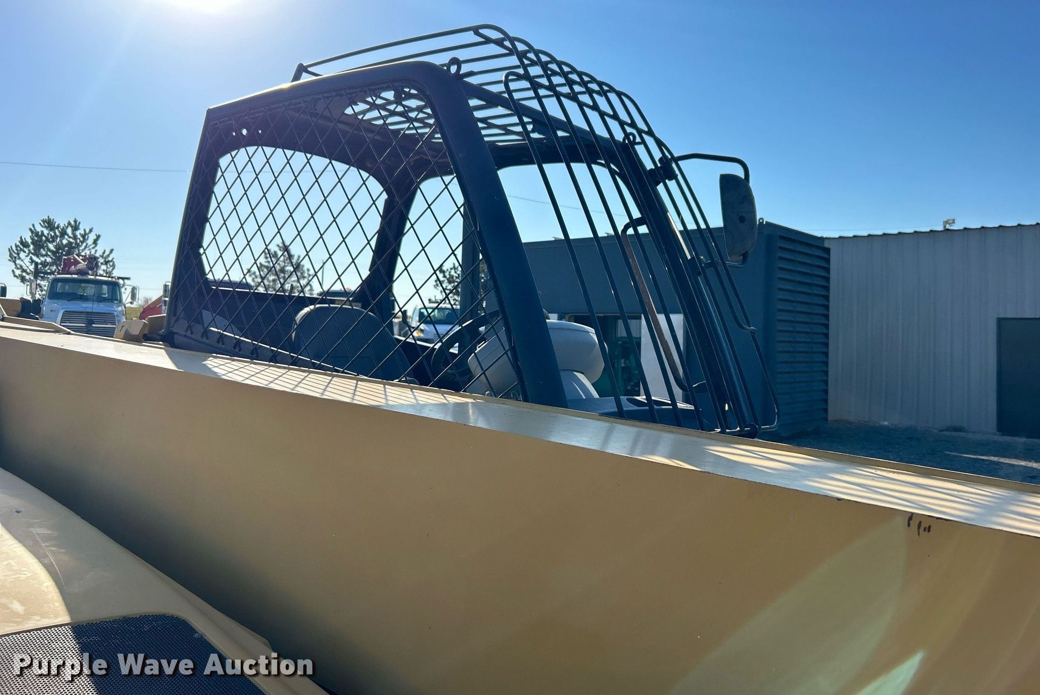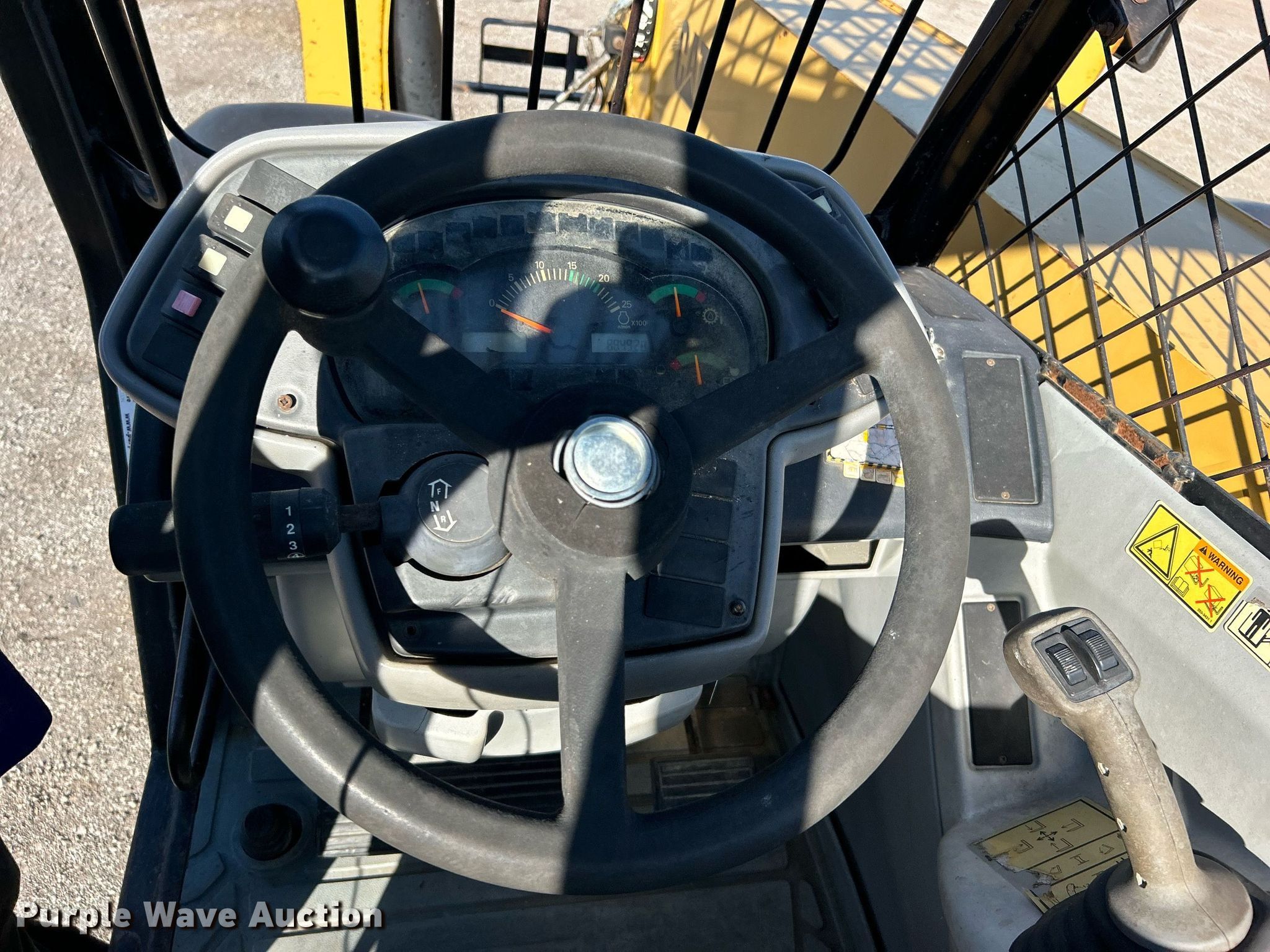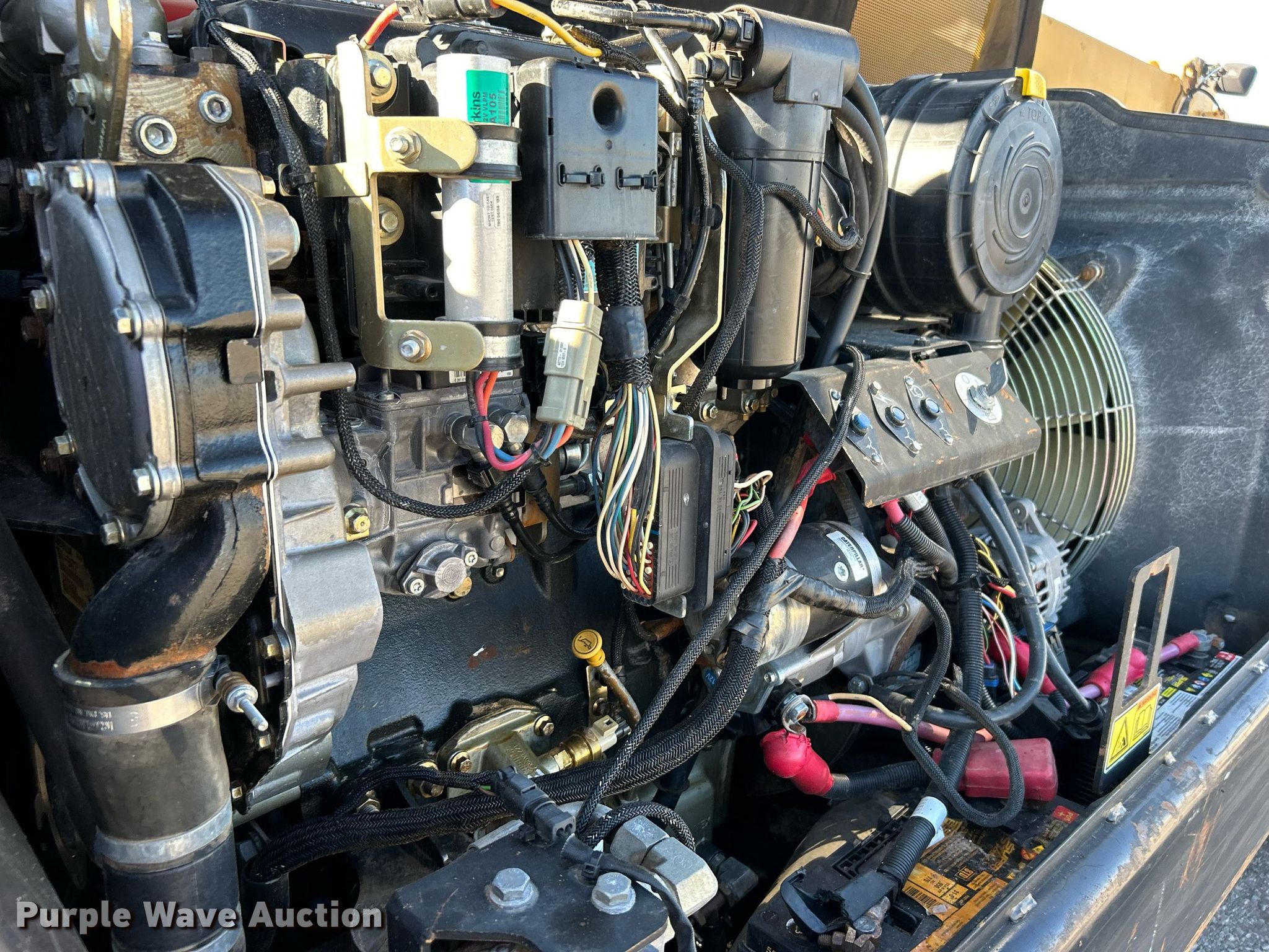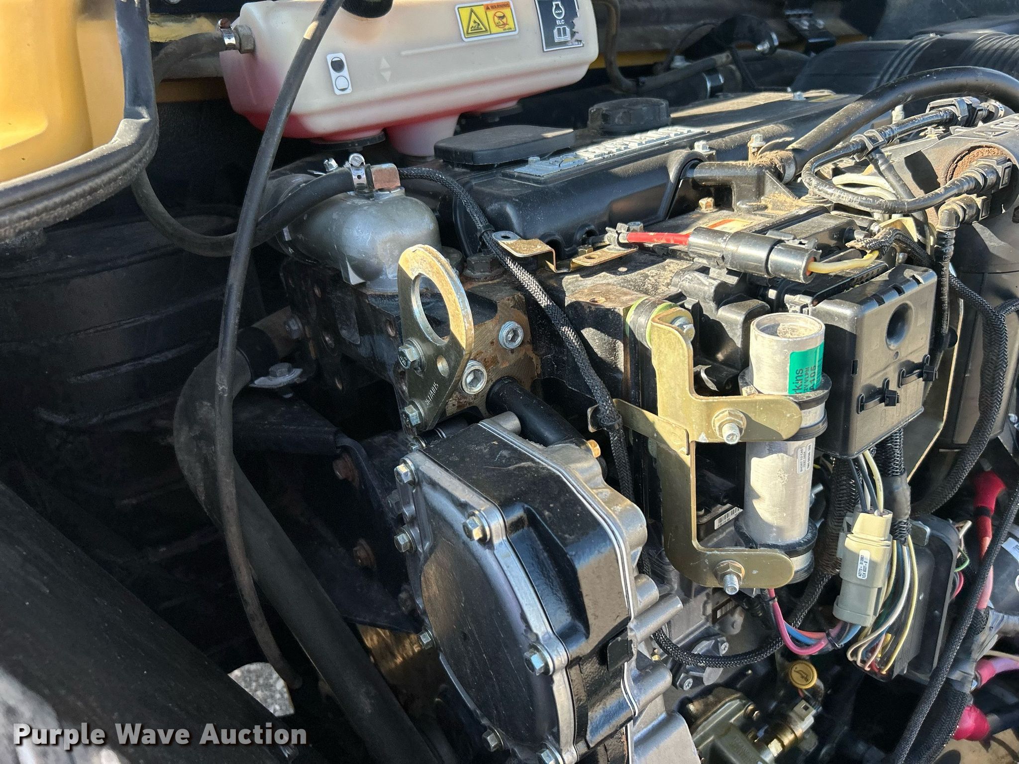2004 Caterpillar TH560B telehandler. Hours: 8,849 on meter, Serial: CATTH560VSLG00665. Engine Caterpillar, Cylinders: 4, Fuel type: Diesel. Transmission Powershift, 4F - 4R, Four wheel drive, Differential lock. Operators station Canopy. Features Maximum lift capacity: 11,000 lbs, Maximum lift height: 45', Boom stages: 3, Fork length: 47", Tilt carriage, Hydraulic outriggers, Hydraulic leveling, Quick attach: Manual. Tires Size: 14.00-24 TG. Notes Engine cover damaged. Collinsville, OK 74021