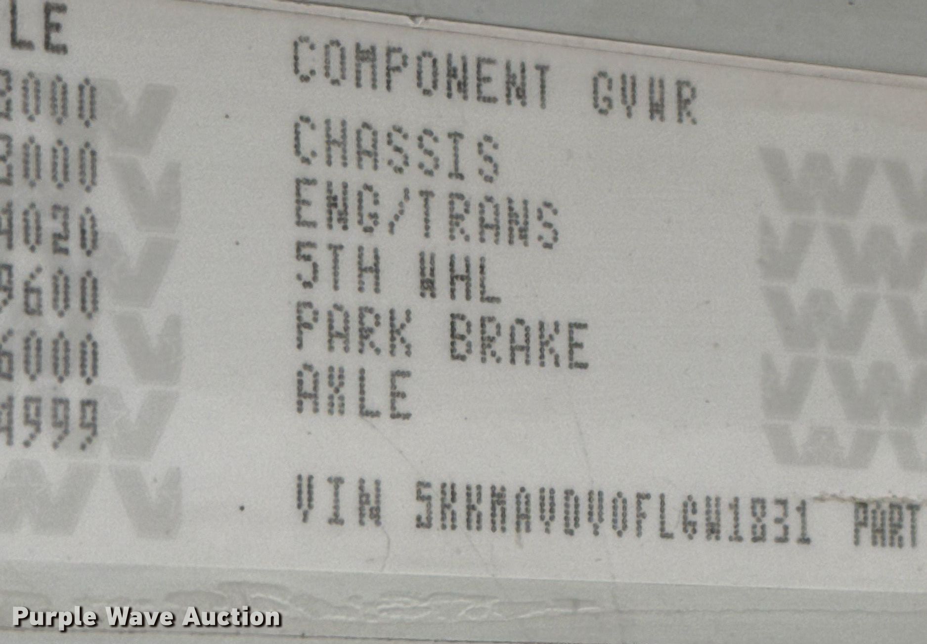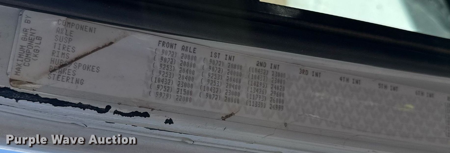 • Lift axle GAWR: 20,000 lbs