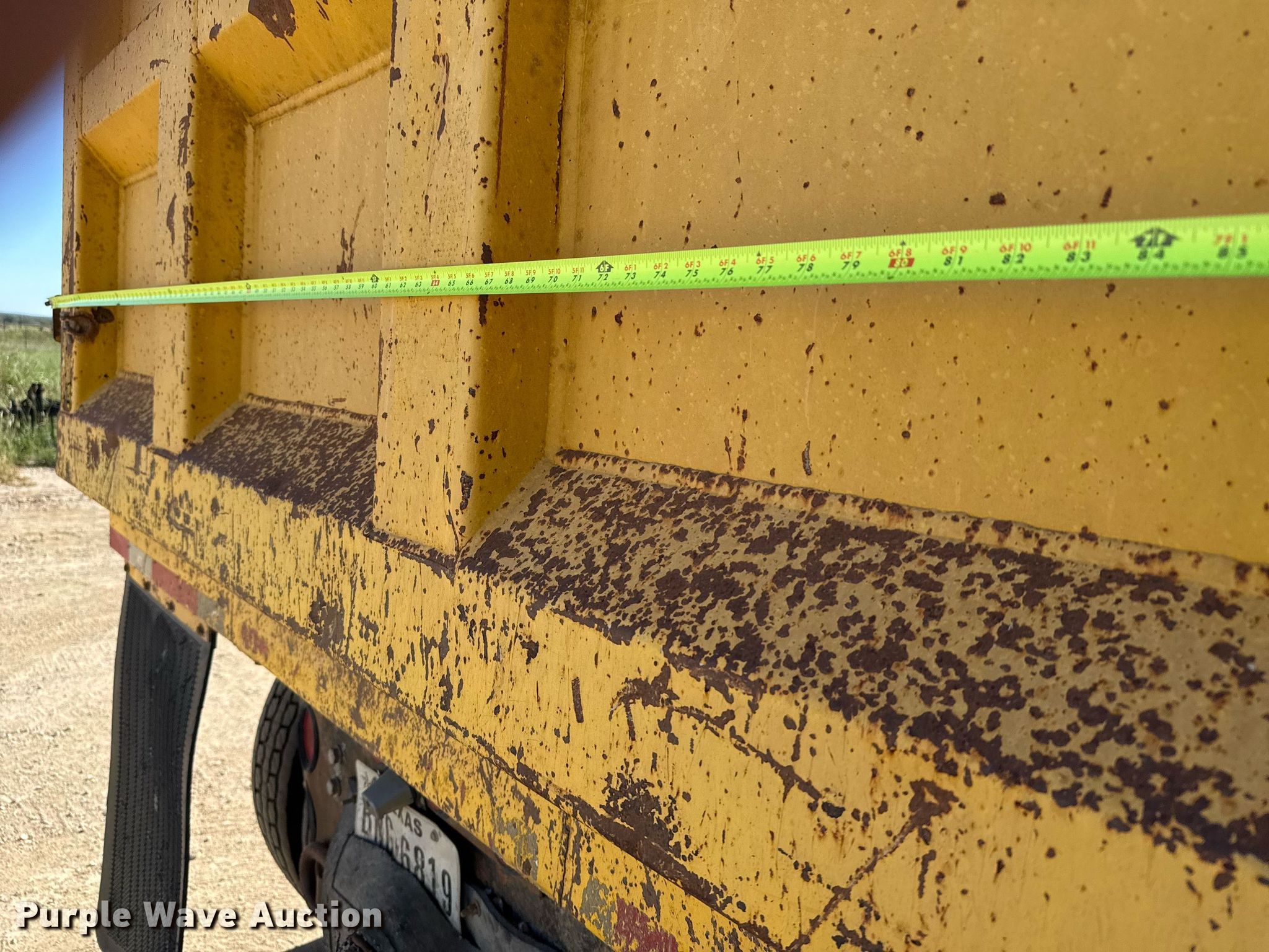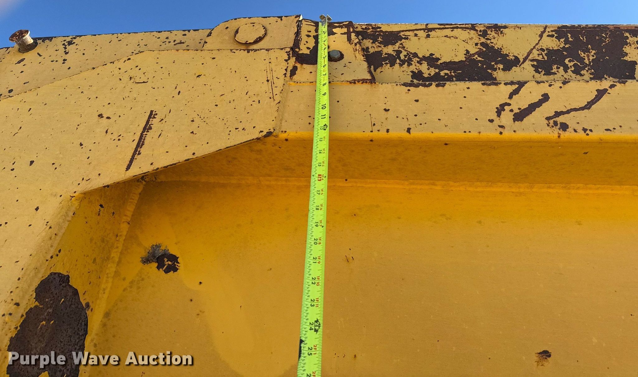 2005 Peterbilt 378 dump truck. Miles: 762,666 on odometer, Hours: 24,208 on meter, VIN: 1XPFDU9X05D877060. Engine Caterpillar C13, Displacement: 12.0L, Cylinders: 6, Fuel type: Diesel, Engine brake. Transmission Eaton Fuller, Manual, Speed: 10. Chassis Axles: Tandem, Differential lock: Inter-axle, Suspension: Air Dump valves, Brakes: Air, PTO, GVWR: 52,000 lbs FAWR: 12,000 lbs, IAWR: 20,000 lbs, RAWR: 20,000 lbs. Interior AC, Heat, Heated mirrors, Cruise control. Features Dump bed Warren, 14' L x 8' 3" W, Side height: 47", Side board height: 8", Bed type: Steel, Roll tarp, Ram: Single, End gate: Air operated. Tires Front: 295/75R22.5, Rear: 11R22.5. Notes Windshield chipped or cracked, Possible AC issue. Texas title. Title distribution may be delayed up to 14 days from verification of funds. Baxter Sand and Gravel. San Saba, TX 76877