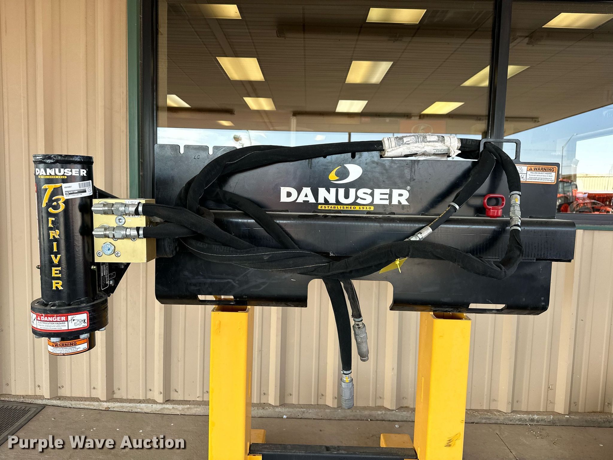 Danuser T3 skid steer post driver. Serial: 14328. Notes Stand not included. Great Plains Kubota. Duncan, OK 73533