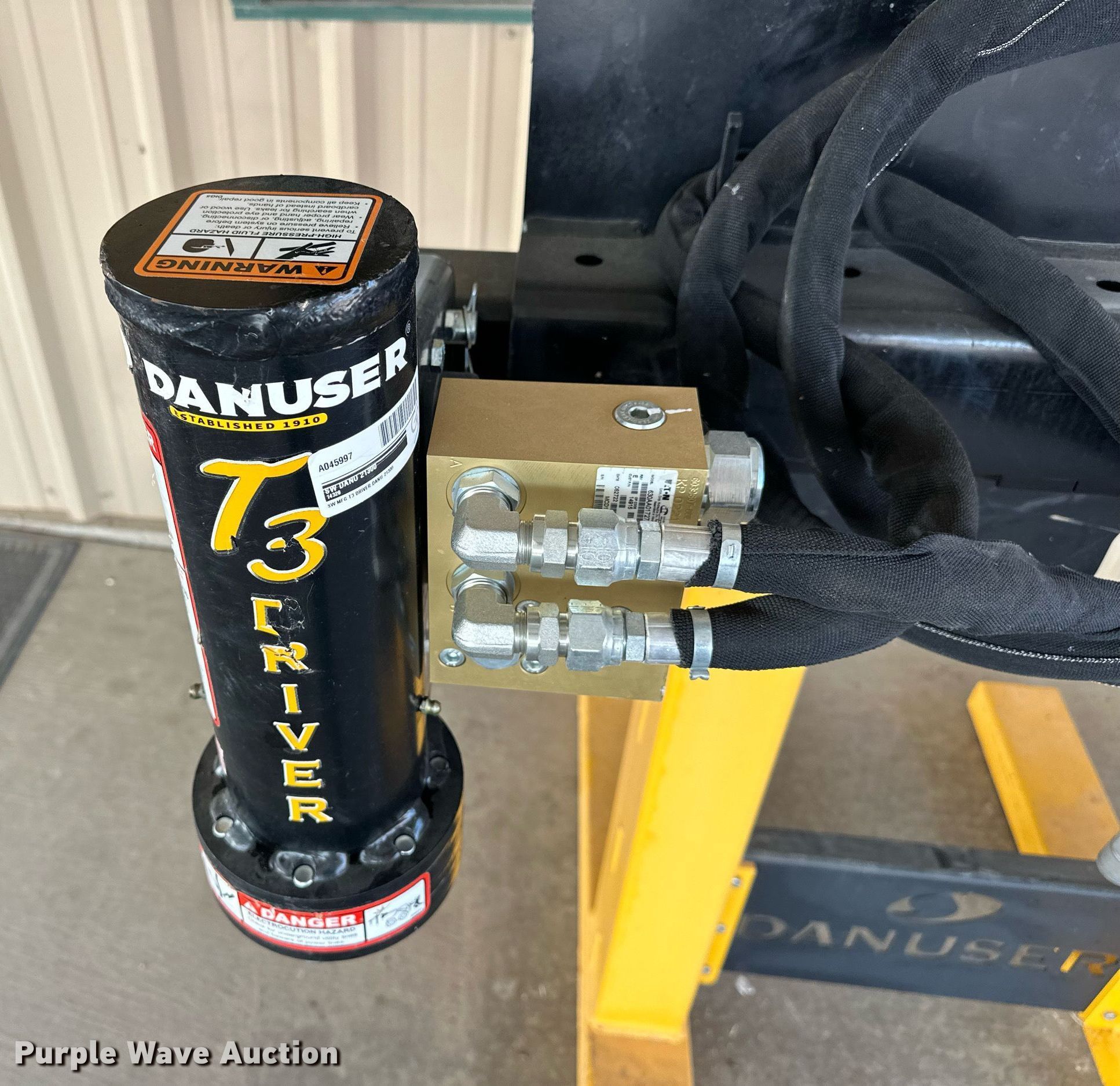 Purple Wave is selling a used Skid Steer Attach. in Oklahoma. This item is a Danuser T3 skid steer post driver with the following: Serial: 14328