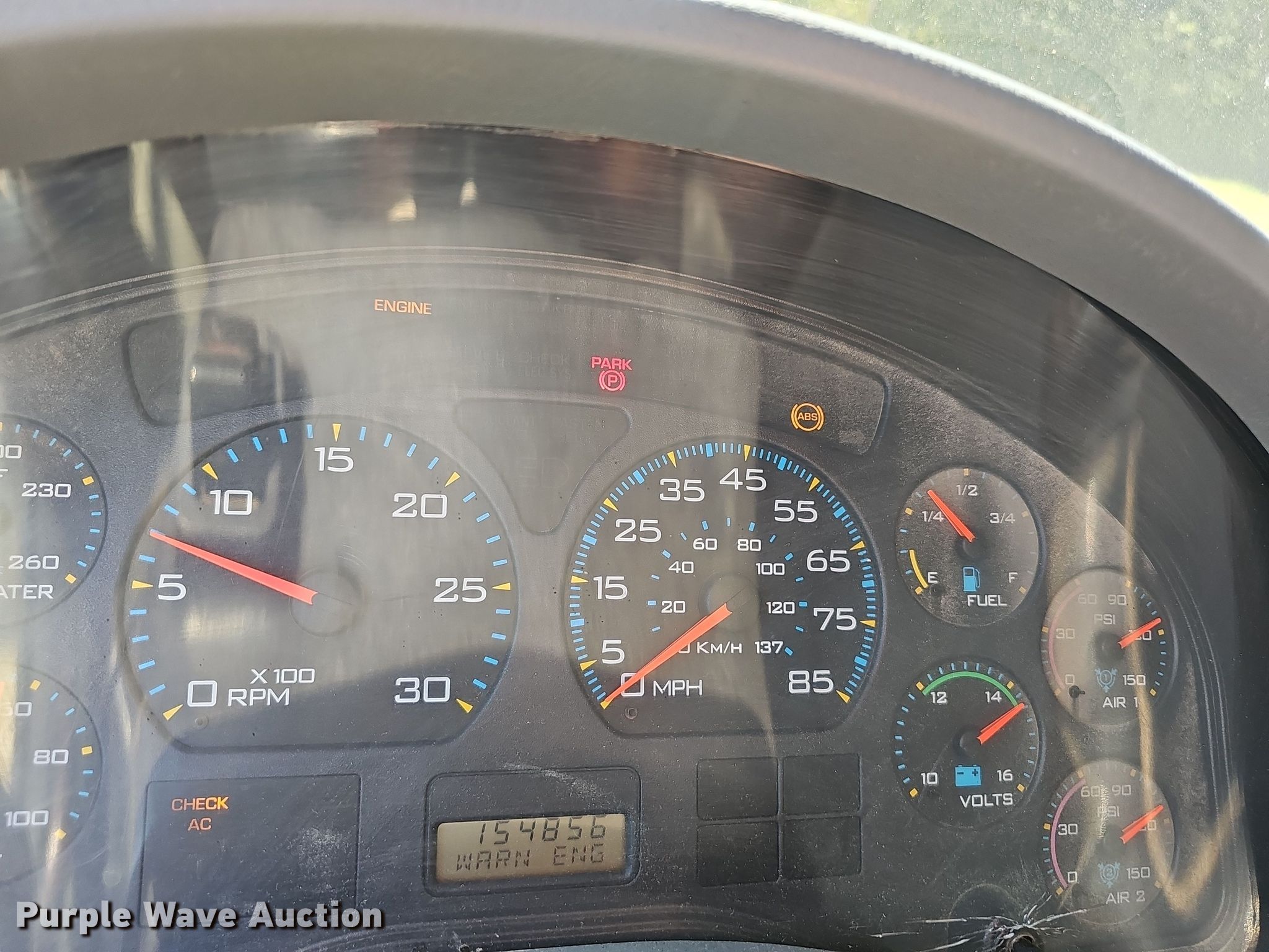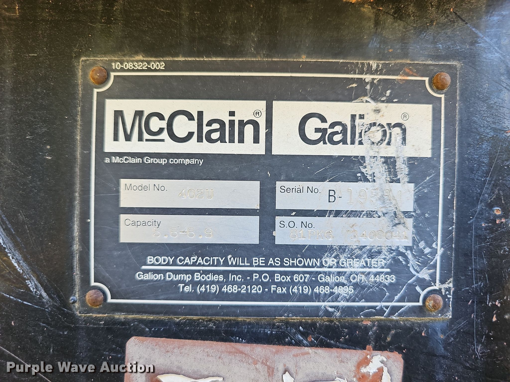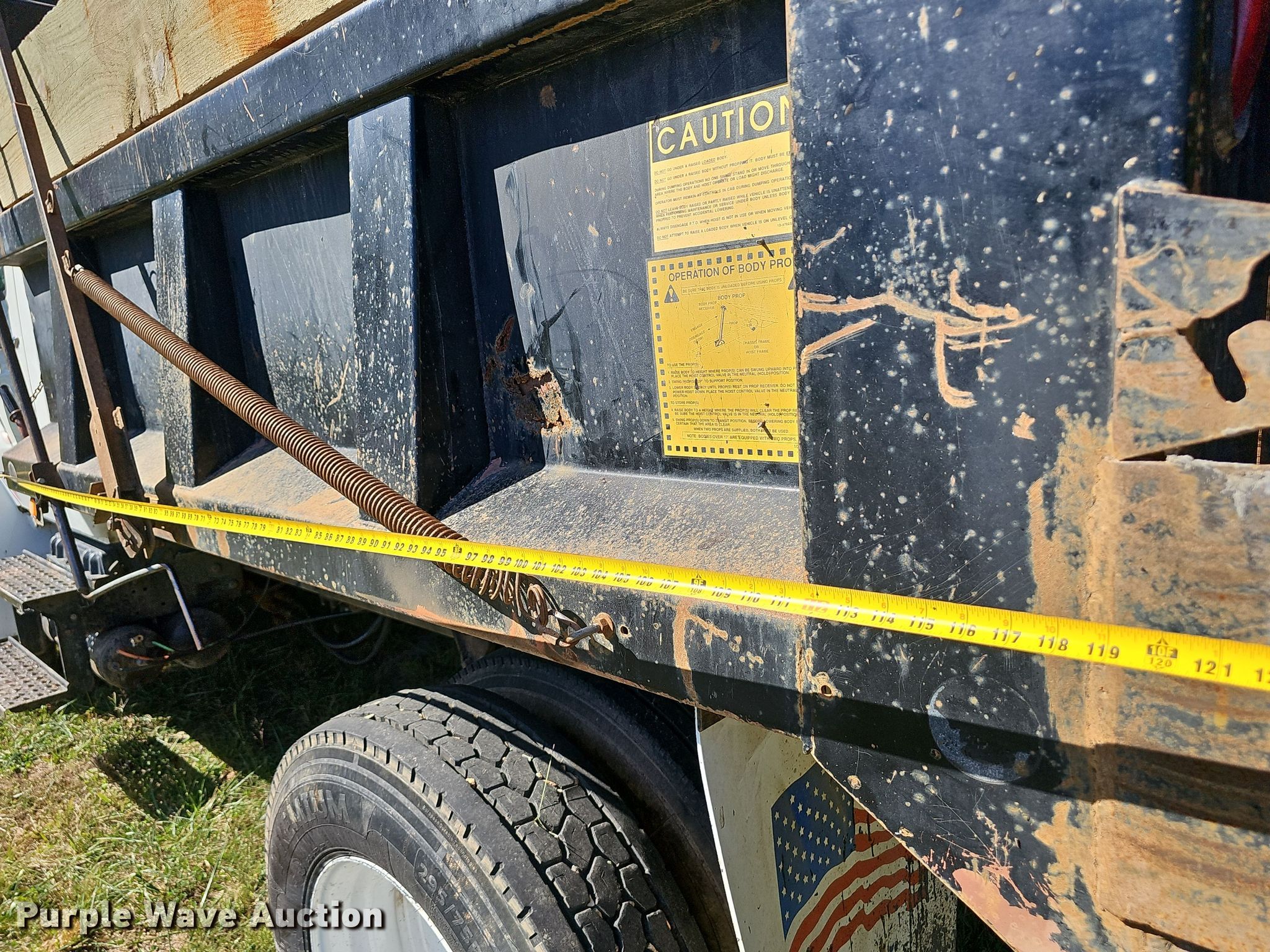 2003 International 4300 dump truck. Miles: 154,856 on odometer, VIN: 1HTMMAAN33H567463. Engine International DT466, Displacement: 7.6L, Cylinders: 6, Fuel type: Diesel. Transmission Eaton Fuller, Manual, Speed: 6. Chassis Axles: Single, Suspension: Spring, Brakes: Air, PTO. Interior AC, Heat, Cruise control. Features Dump bed McClaim 402U, Capacity: 6.9 cu.yd., 10' L x 96" W, Side height: 30", Side board height: 12", Bed type: Steel, Roll tarp Manual, Ram: Single, End gate: Manual. Tires Front: 11R22.5, Rear: 295/75R22.5, 11R22.5. Notes Dash warning indicator: Check engine, ABS, Check AC. Missouri title. Ozark, MO 65721