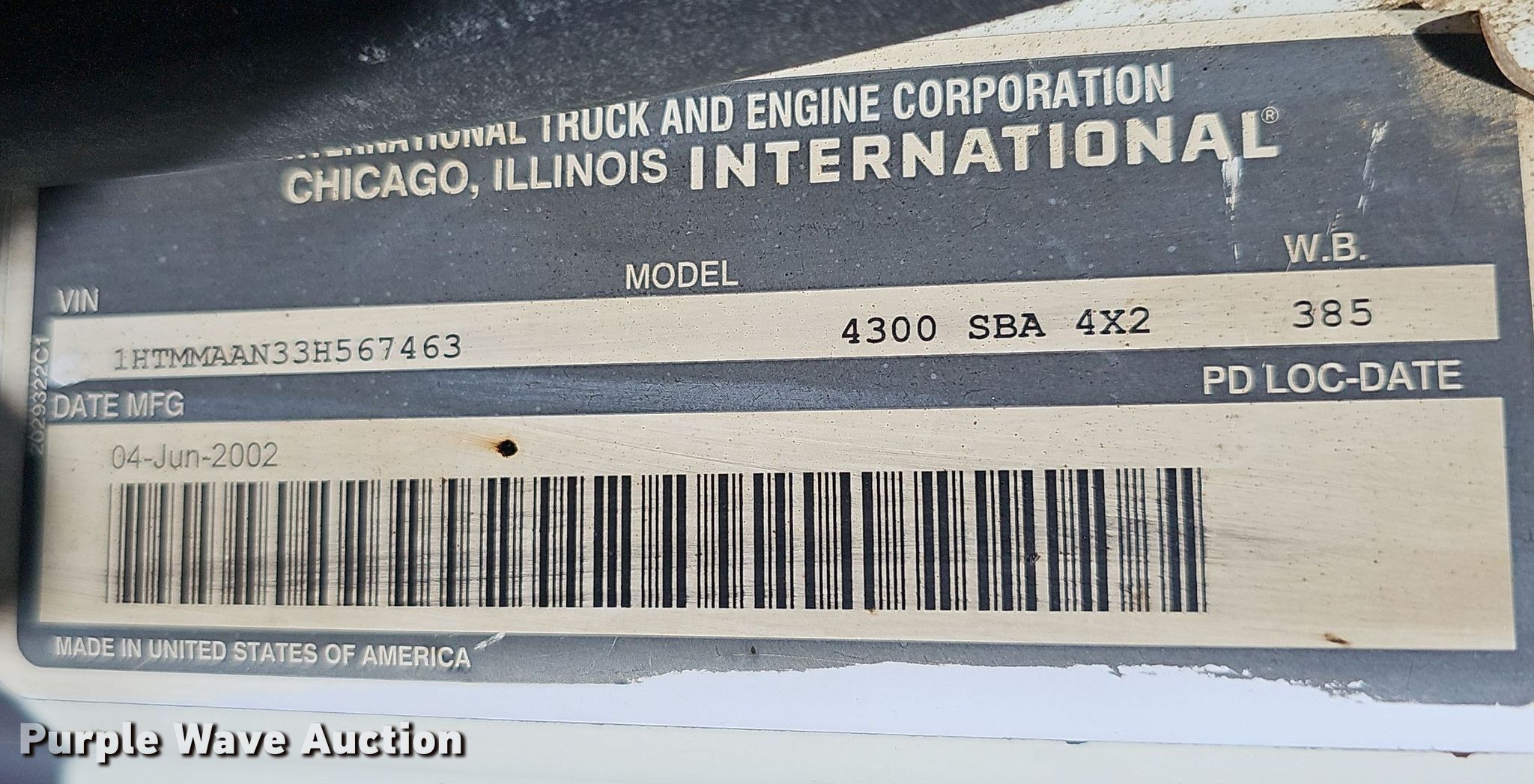 Purple Wave is selling a used Construction Dump Truck in Missouri. This item is a 2003 International 4300 dump truck with the following: Miles: 154,856 on odometer, VIN: 1HTMMAAN33H567463