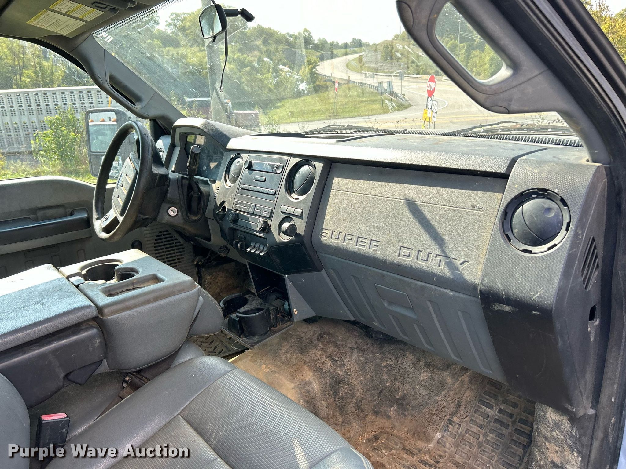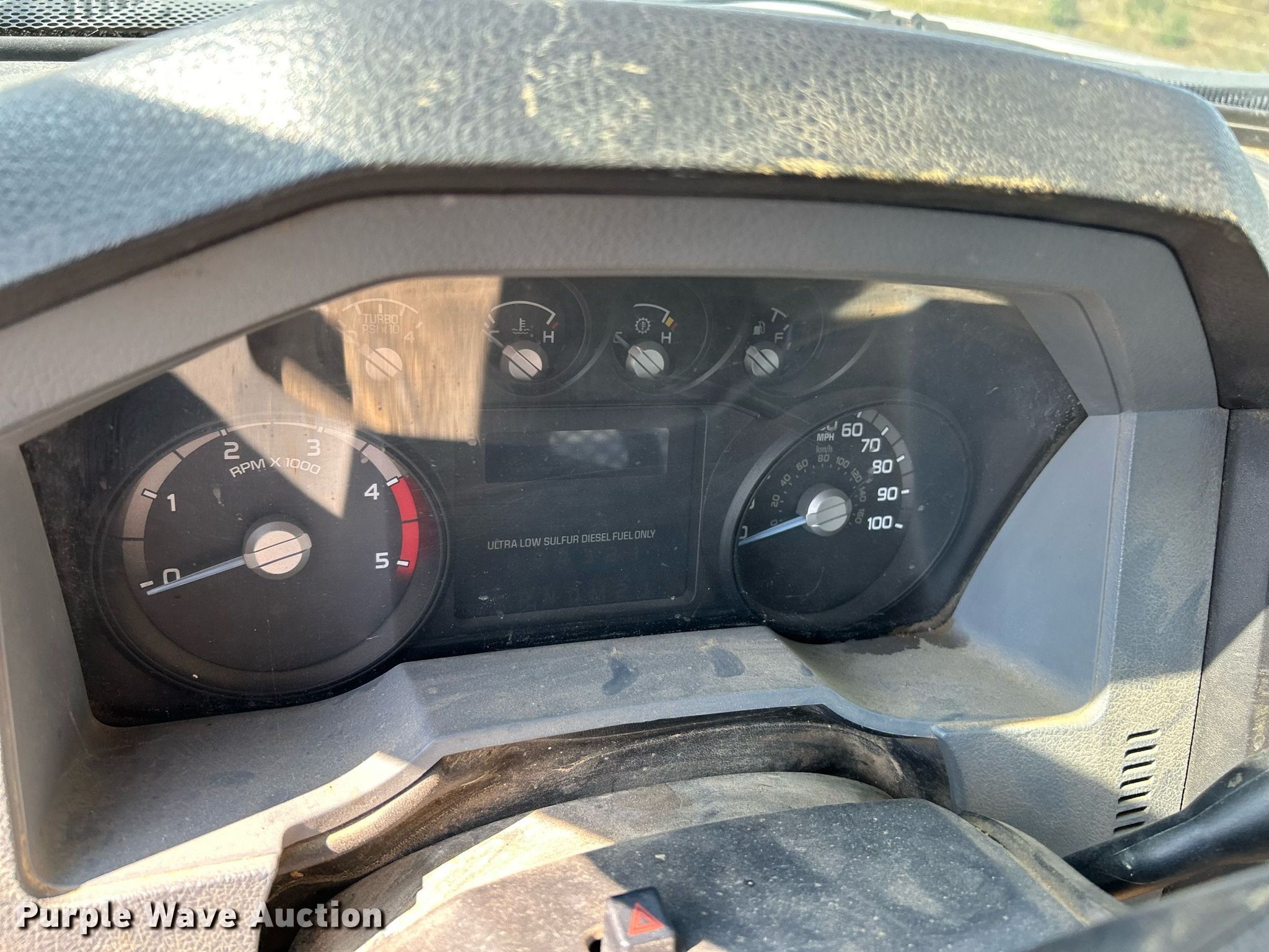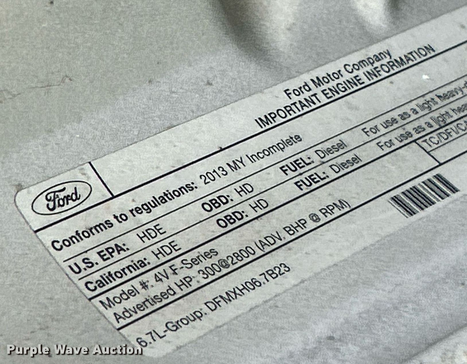2013 Ford F450 Super Duty XL flatbed truck. Miles: Unknown, VIN: 1FDTF4GT2DEB30630. Engine Displacement: 6.7L, Cylinders: 8, Fuel type: Diesel. Transmission Automatic. Chassis Axles: Single, Suspension: Spring, Brakes: Hydraulic, GVWR: 16,000 lbs, Wheelbase: 165". Interior AC, Heat, Cruise control, Auxiliary controls, Brake controller. Features Flatbed 12' L x 92" W, Removable sides. Tires Size: 225/70R19.5. Notes Poly tote not included, Decals will be removed prior to auction, Non-operational unit, Non-operational engine. Kansas title. Mileage has not been verified. Odometer discrepancy will be marked on the title. RLM Underground. Springfield, KY 40069