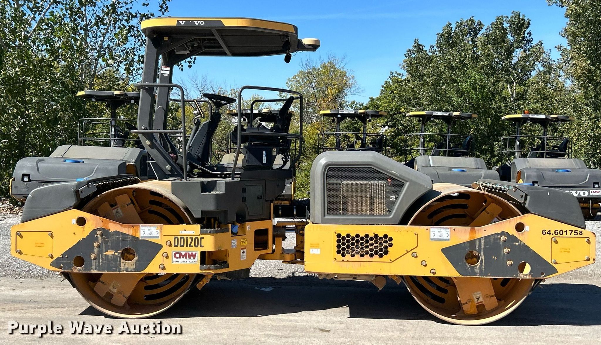 Purple Wave is selling a used Double Drum Roller Compactor in Missouri. This item is a 2017 Volvo DD120C double drum vibratory roller with the following: Hours: 3,634 on meter, Serial: VCED120CK0S288029