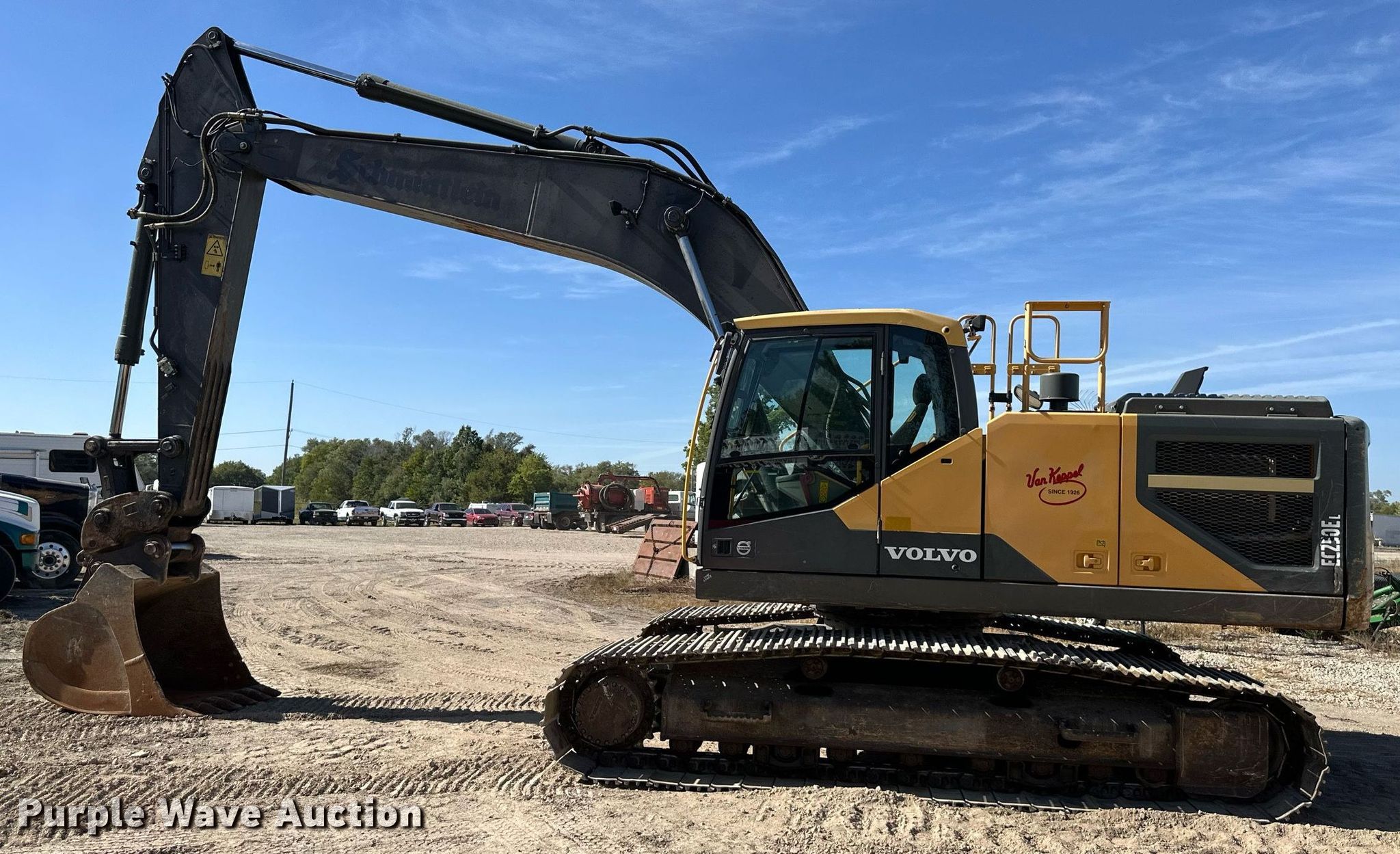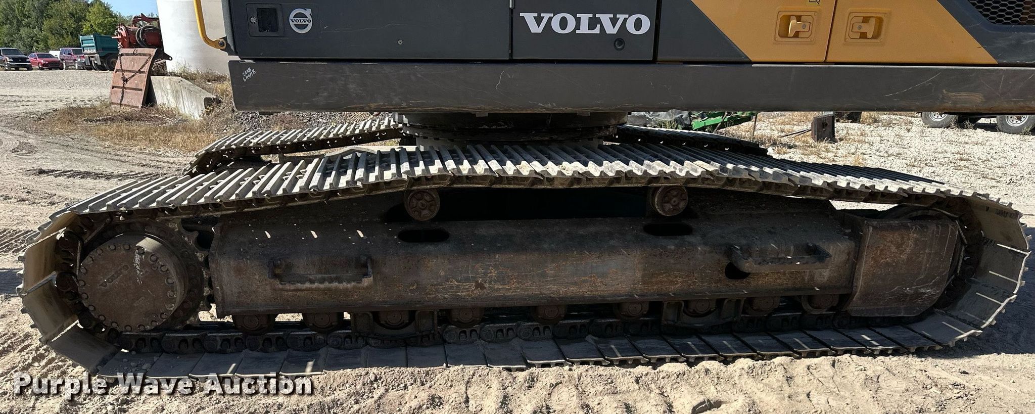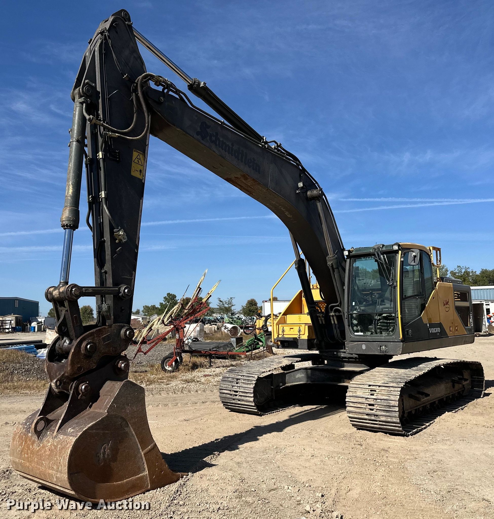 2015 Volvo EC250EL excavator. Hours: 7,152 on meter, Serial: VEC250EC00310145. Engine Volvo, Displacement: 7.7L, Cylinders: 6, Fuel type: Diesel. Transmission Hydrostatic, Two speed travel. Operators station Enclosed cab, AC, Heat. Features Auxiliary hydraulics, Boom Standard, Stick Stick length: 114", Quick coupler: Hydraulic, Bucket VK, Width: 44", Cutting edge: Weld-on, Teeth: 6. Tracks Width: 31.5", Steel, Grouser pads: Triple. Notes Glass cracked. Schmidtlein Excavating, Inc.. Topeka, KS 66616