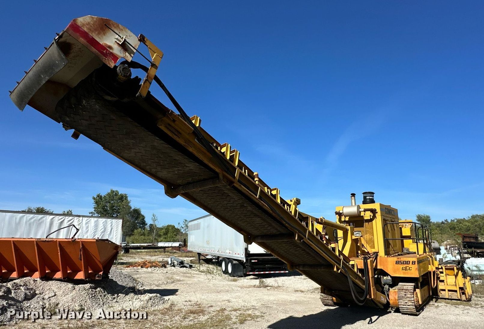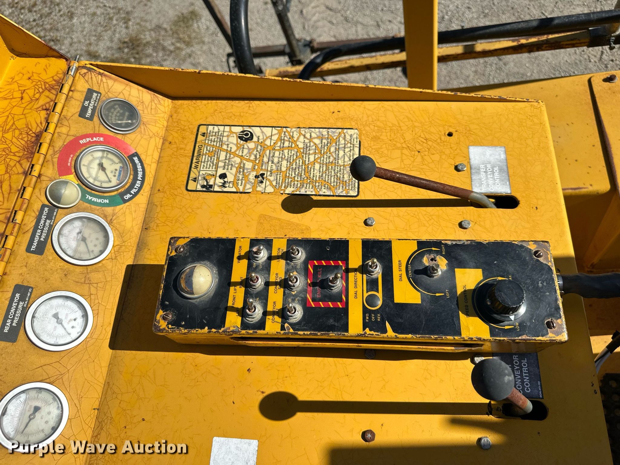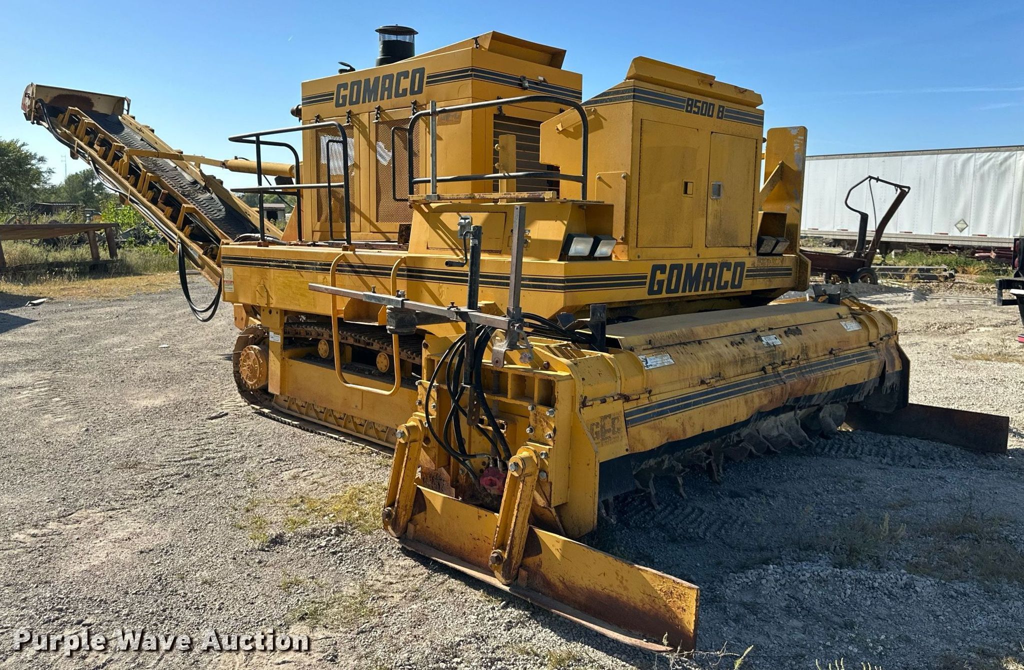1988 Gomaco 8500B trimmer. Hours: 2,087 on meter, Serial: MC15739-28. Engine Detroit Diesel 6V92, Cylinders: 6, Fuel type: Diesel. Transmission Hydrostatic. Features Cutting head Width: 12', Conveyer 30" W x 25' L, Hydraulic lift and swing. Tracks Width: 14", Steel, Grouser pad: Triple. Schmidtlein Excavating, Inc.. Topeka, KS 66616