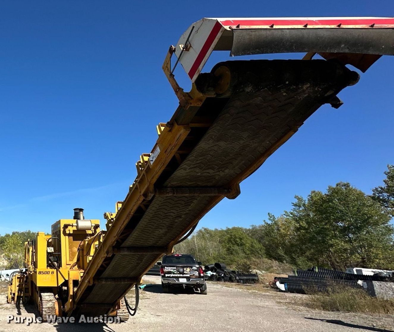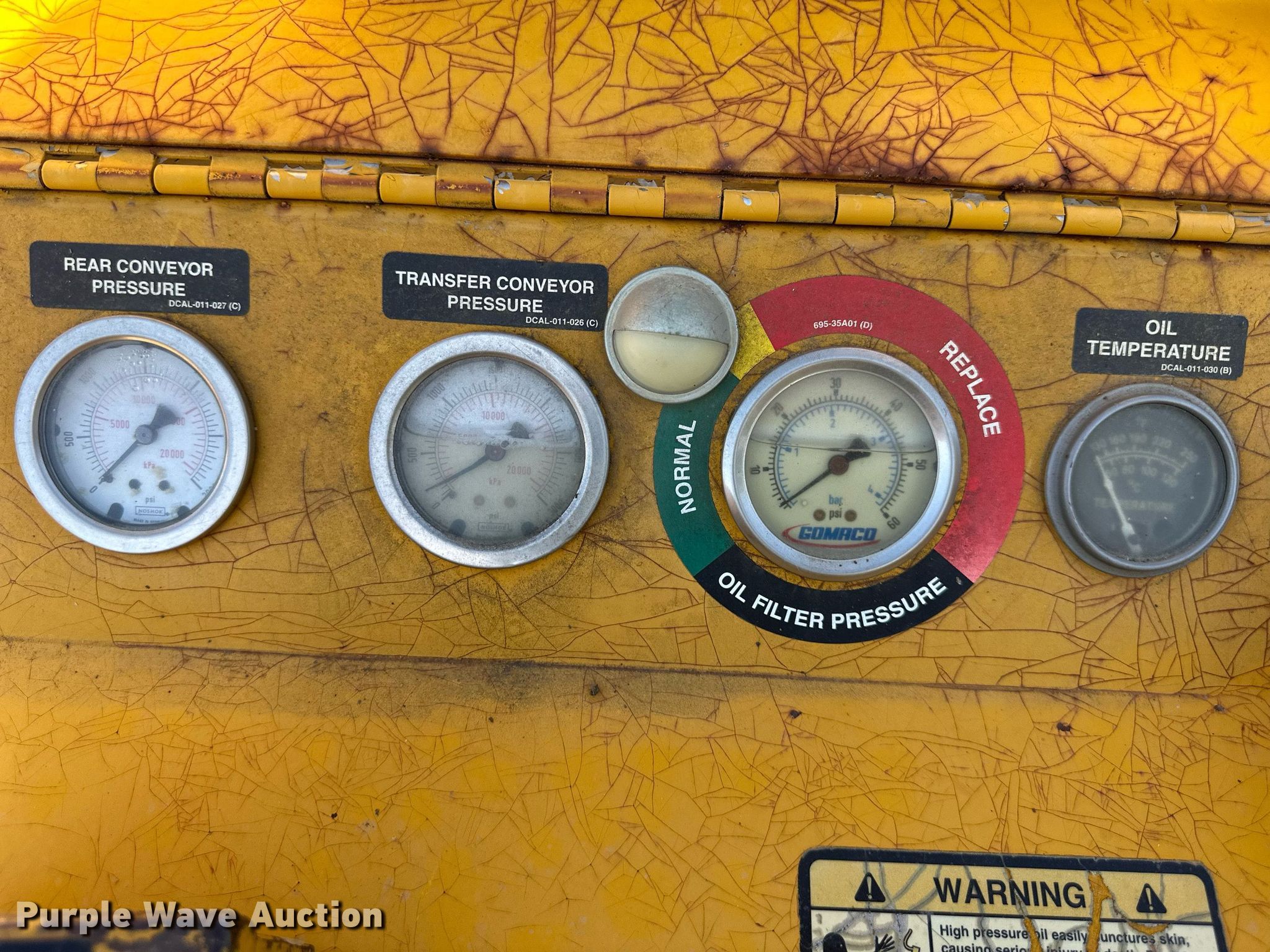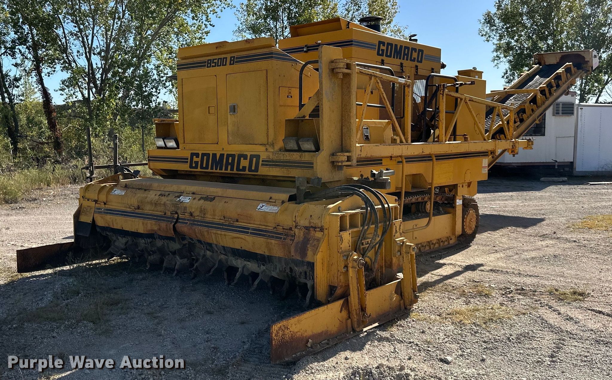 1988 Gomaco 8500B trimmer. Hours: 2,087 on meter, Serial: MC15739-28. Engine Detroit Diesel 6V92, Cylinders: 6, Fuel type: Diesel. Transmission Hydrostatic. Features Cutting head Width: 12', Conveyer 30" W x 25' L, Hydraulic lift and swing. Tracks Width: 14", Steel, Grouser pad: Triple. Schmidtlein Excavating, Inc.. Topeka, KS 66616