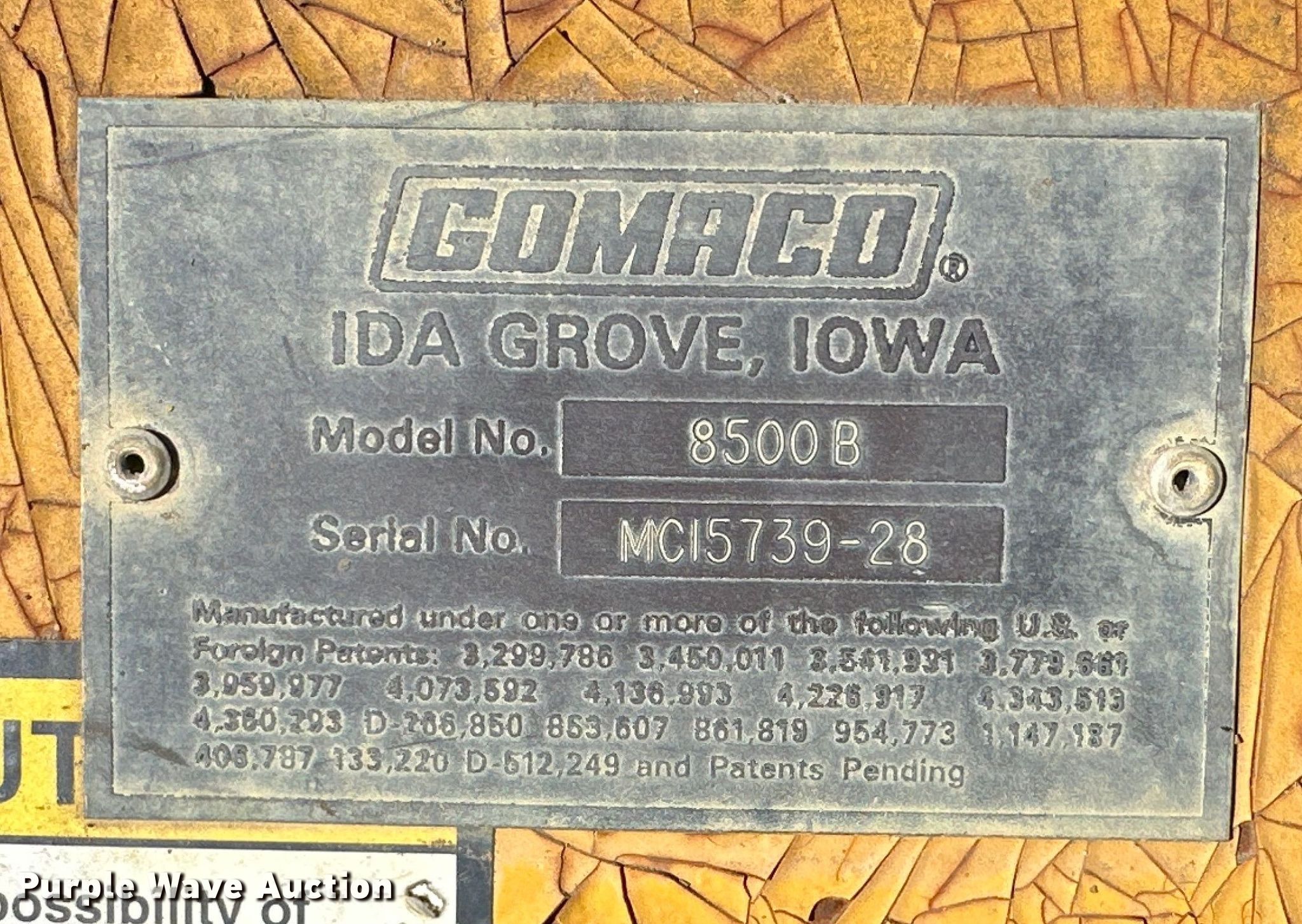 Purple Wave is selling a used Concrete Paver or Curb Machine in Kansas. This item is a 1988 Gomaco 8500B trimmer with the following: Hours: 2,087 on meter, Serial: MC15739-28