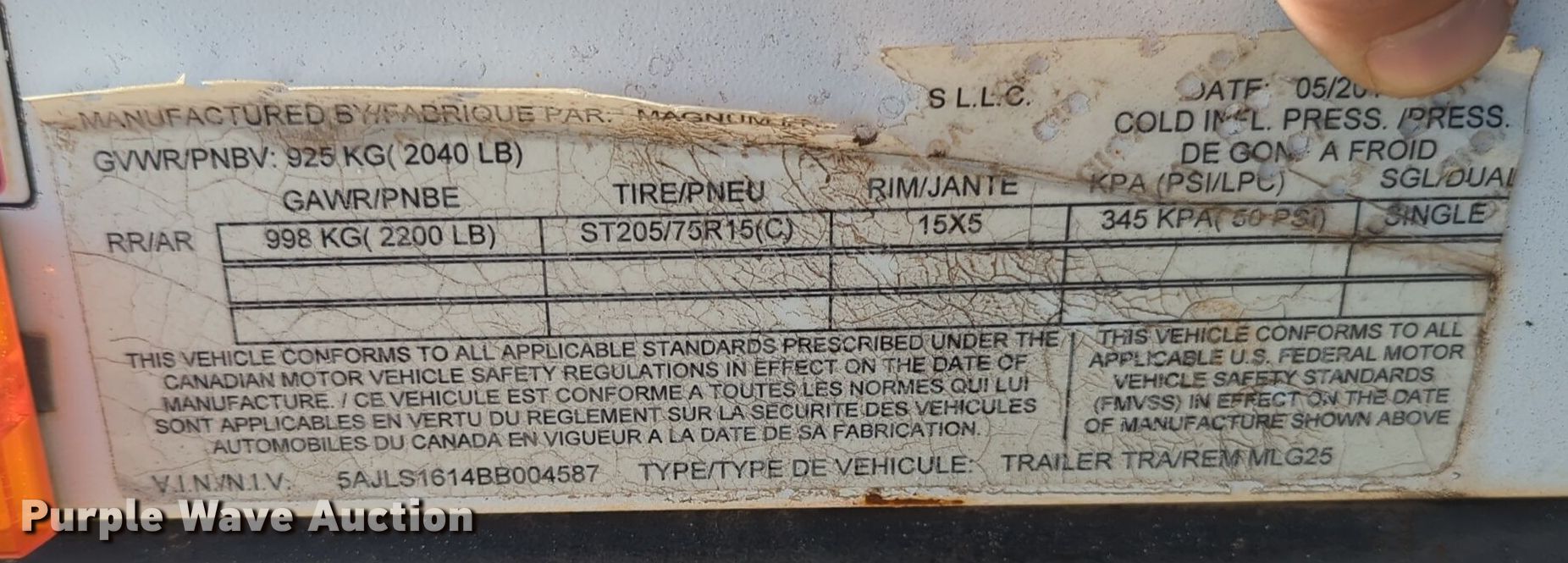 2011 Magnum MLG25 generator. Hours: Unknown, VIN: 5AJLS1614BB004587, Serial: 1104581. Engine Cylinders: 4, Fuel type: Diesel. Features Generator kVA: 23, kW: 18, Phase: Single, Three, Electric start, Fuel tank. Trailer 10' L x 72" W, Ball hitch size: 2", Suspension: Spring, Axles: Single, Tire size: 205/75R15. This is worksite support equipment and will not come with a title. Transfer of ownership documentation will be a bill of sale. Kudron Ready Mix. 15244 Northwest Expressway. Piedmont, OK 73078