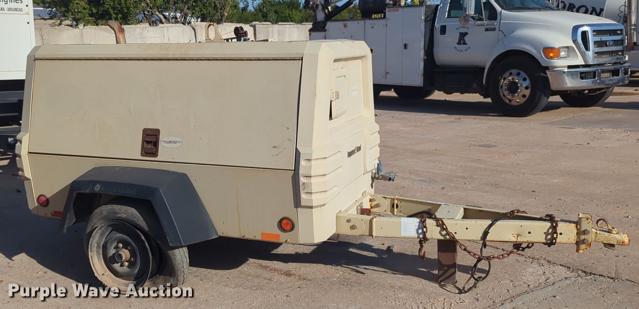 2008 Doosan P185WJD air compressor. Hours: 1,737 on meter, VIN: 4FVCABAAX8U400801, Serial: 4008011UDSD08. Engine John Deere 4024TF270, Serial: PE4024T168741, Cylinders: 4, Fuel type: Diesel. Features Air compressor. Trailer Ball hitch size: 2", Suspension: Spring, Axles: Single, Tire size: 205/75R15. Notes Tires flat. This is worksite support equipment and will not come with a title. Transfer of ownership documentation will be a bill of sale. Kudron Ready Mix. 15244 Northwest Expressway. Piedmont, OK 73078