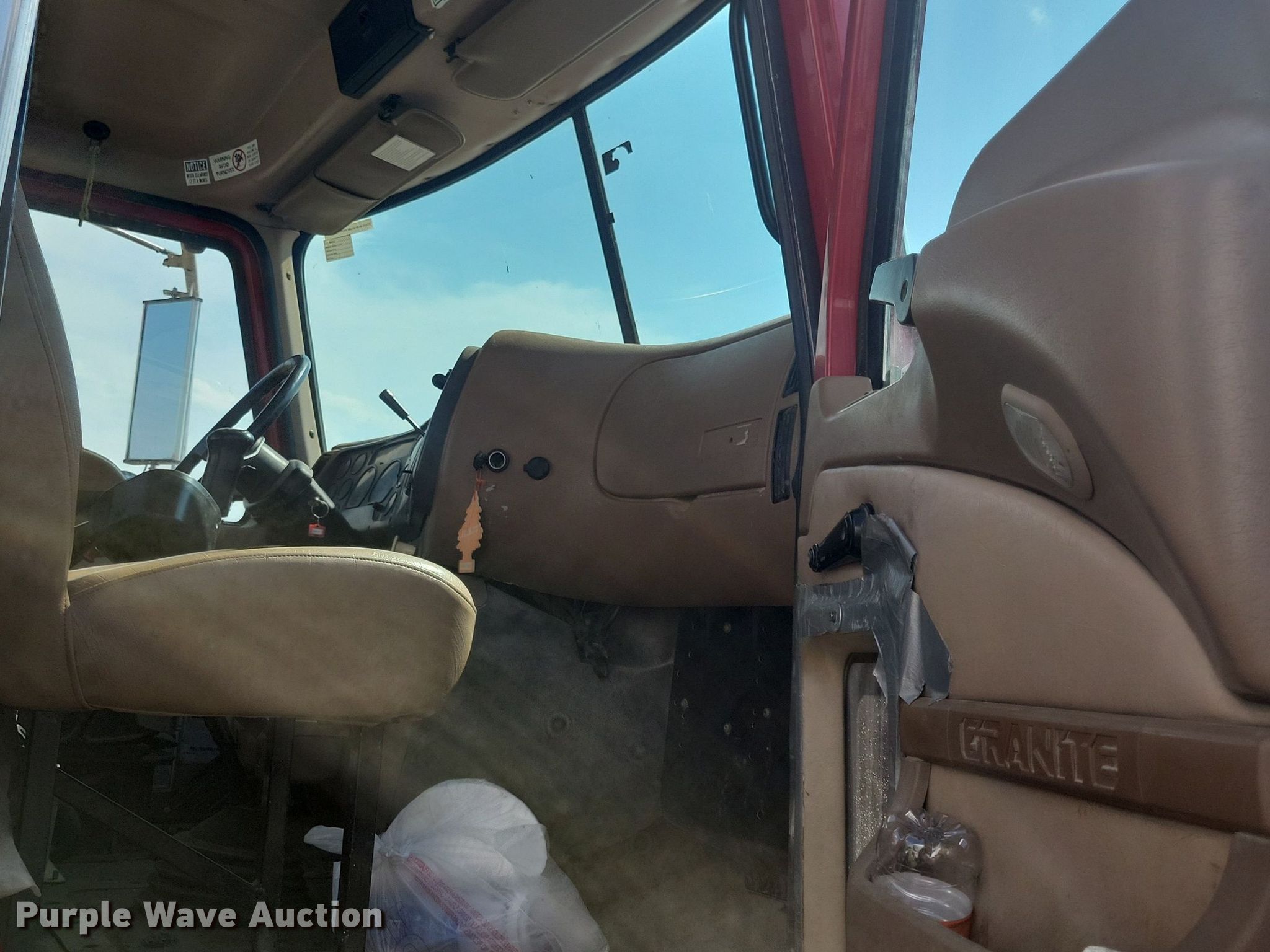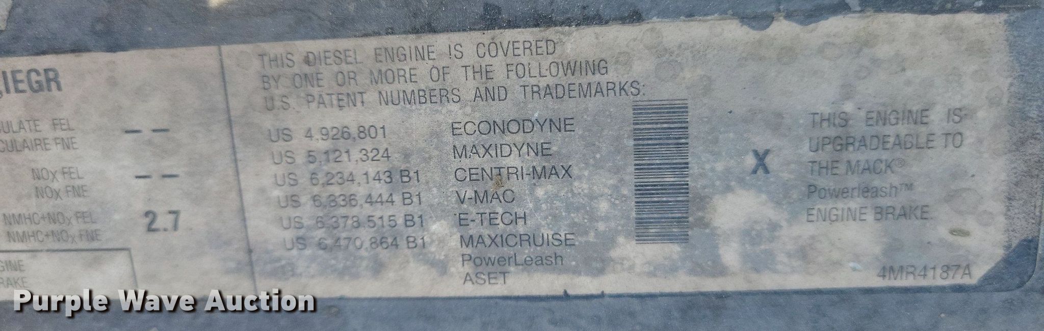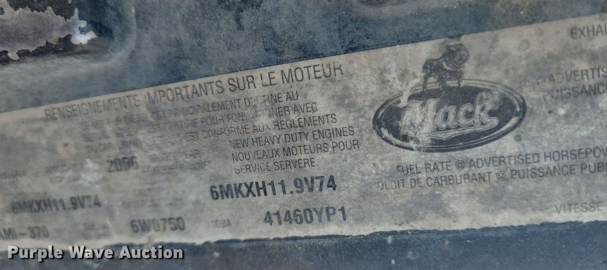 2007 Mack Granite CV500 ready mix truck. Miles: 197,282 on odometer, Hours: 19,787 on meter, Miles: Unknown, VIN: 1M2AG02CX7M003364. Engine Mack AMI 370, Serial: 6W0750, Displacement: 12.0L, Cylinders: 6, Fuel type: Diesel, HP: 370. Transmission Mack Maxitorque ES, Manual, Speed: 8. Chassis Axles: 5, Pusher axle Steerable, Tag axle Steerable, Suspension: Spring over walking beam, Brakes: Air, PTO, GVWR: 80,000 lbs FAWR: 20,000 lbs, IAWR: 19,000 lbs, RAWR: 19,000 lbs, Lift axle GAWR: 11,020 lbs. Interior AC, Heat, Heated mirrors, Cruise control. Features Mixer McNeilus, Serial: 8211430740, Capacity: 11 cu.yd., Discharge: Rear, In-cab controls, Rear drum controls, Water tank capacity: 100 gallons, Chute Extensions: 3, Chute type: Steel.. Tires Front: 425/65R22.5, Rear: 11R22.5, Lift axle: 255/70R22.5. Notes Engine issues, needs replaced Drive shaft unhooked for transport, Unit must be towed or hauled, Dead battery, Non-operational unit. Iowa title. Title distribution may be delayed up to 14 days from verification of funds. GCC. Alton, IA 51003