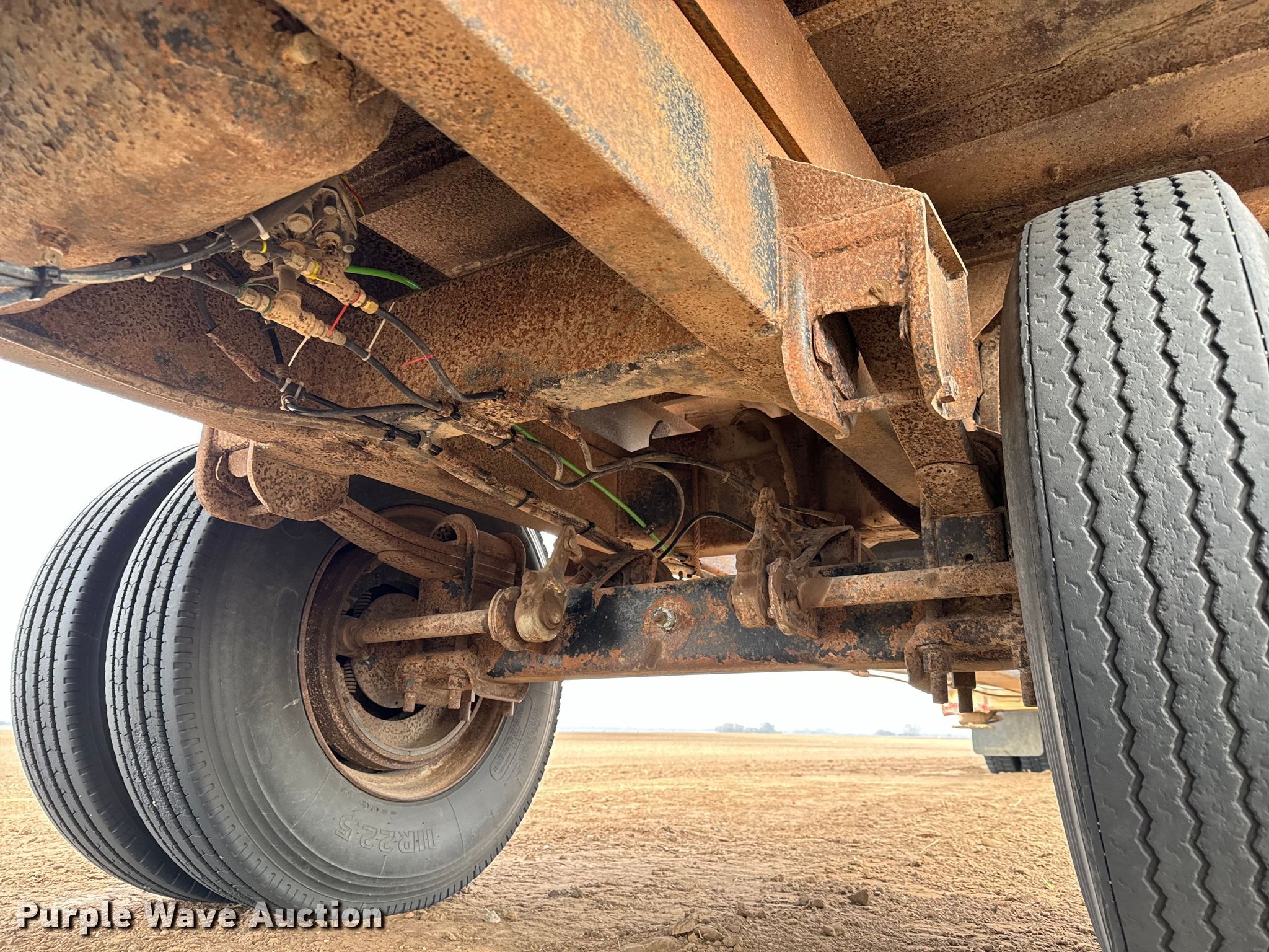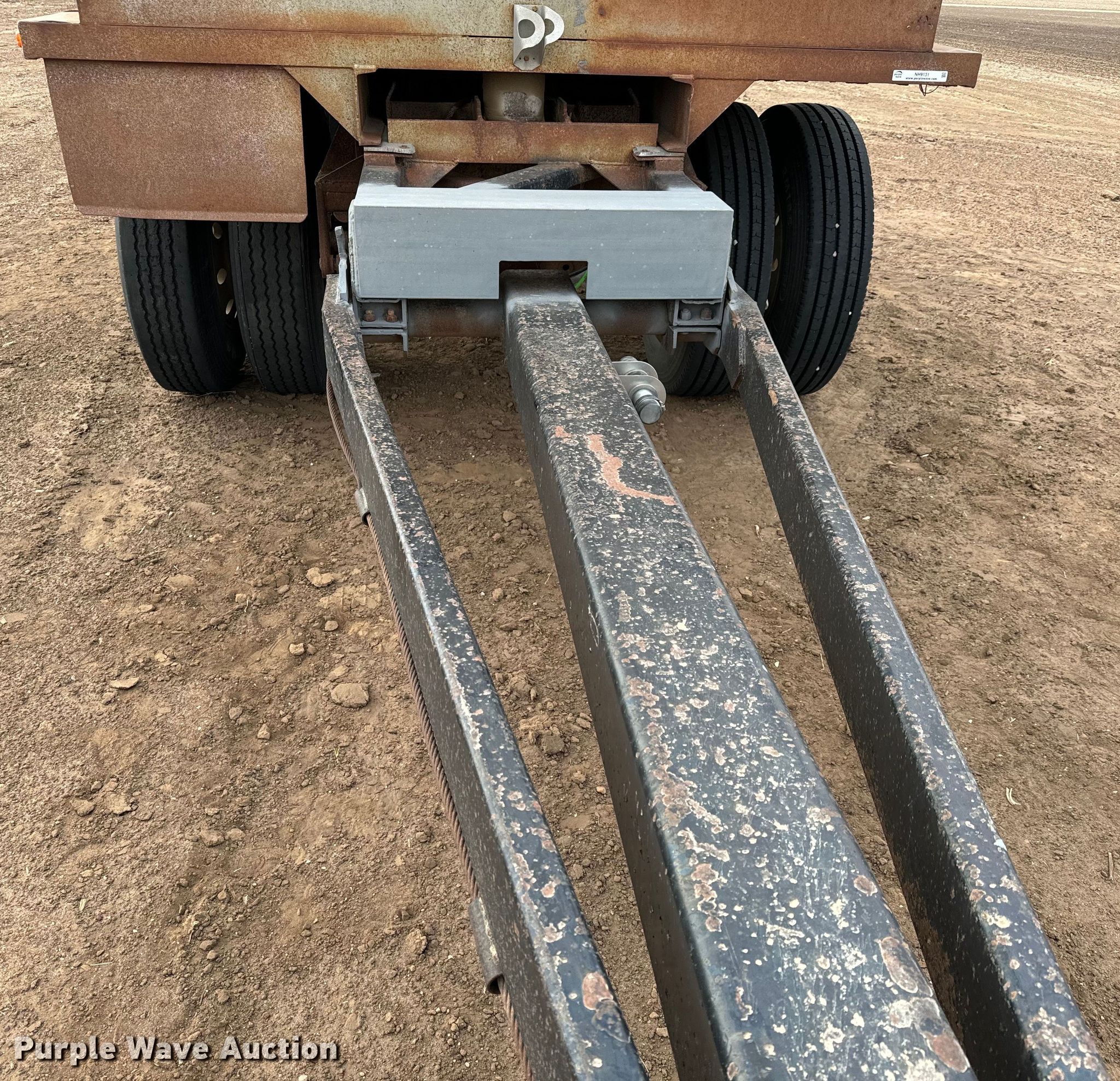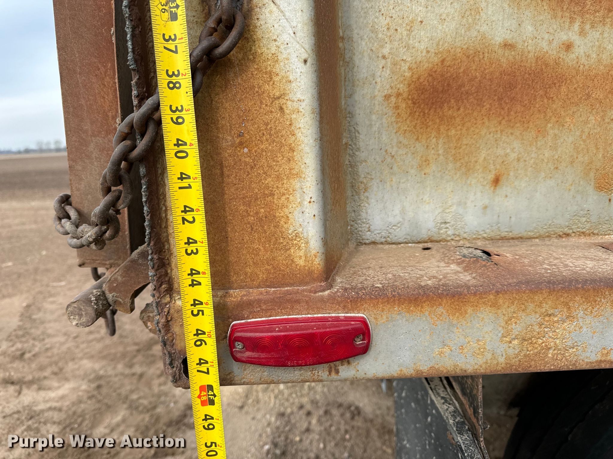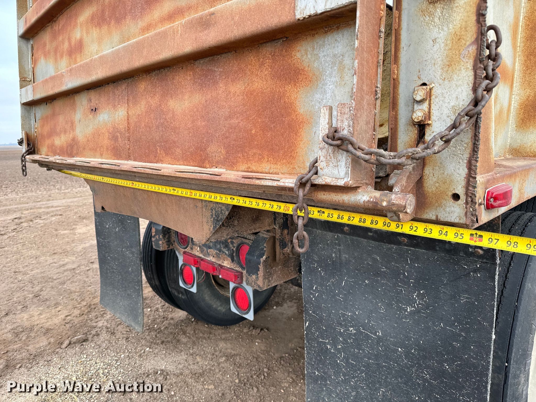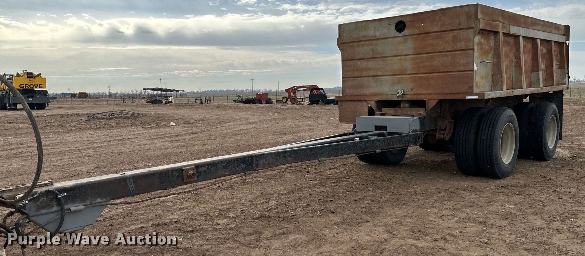1989 Shop built end dump pup trailer. VIN: IA51893. Dimensions Overall: 31' L x 96" W, Body: 13' 5" L x 96" W, Side height: 45". Features Body type: Steel, Ram: Single, End gate: Air operated. Chassis Hitch: Pintle, Fifth wheel hitch, Suspension: Spring, Brakes: Air. Tires Aluminum wheels, Size: 11R22.5. Notes Truck not included. Kansas title. Title distribution may be delayed up to 30 days from verification of funds. TL Steel LLC. Burrton, KS 67020