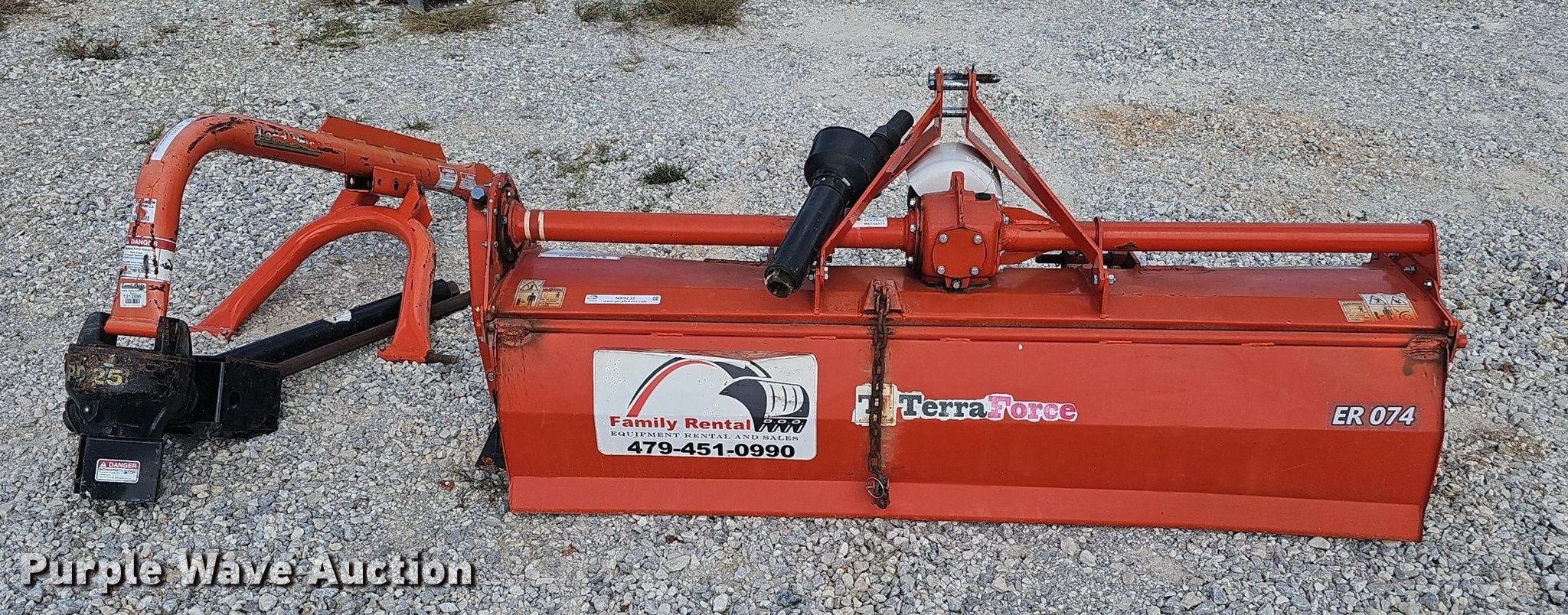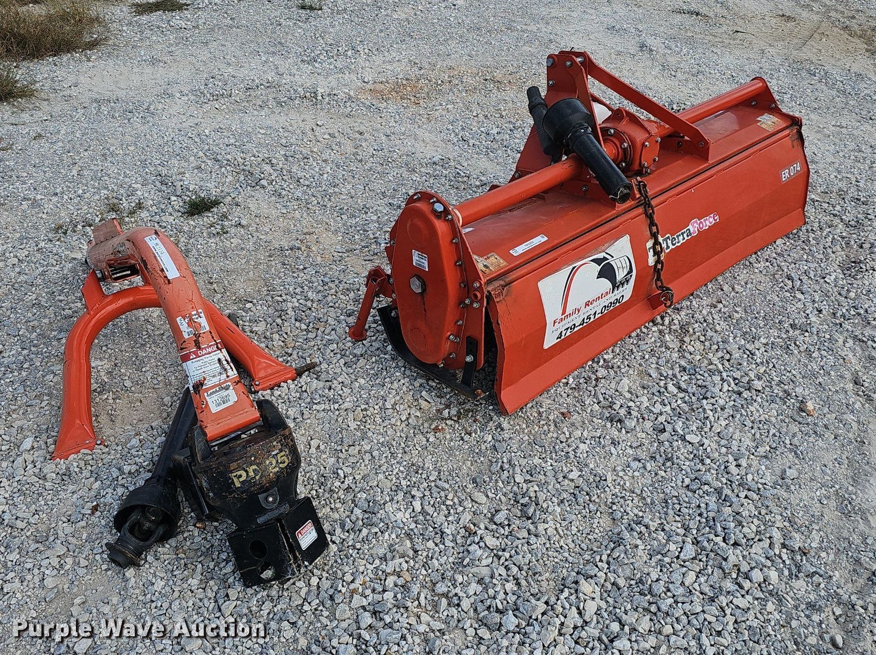 (2) ag attachments. Terra Force ER 074. Overall width: 74", Diameter: 18", Spacing: 7", PTO: 540, Hitch: three point. 2018 Land Pride PD25 post auger Serial: 1312695, PTO: 540, Hitch: three point. Family Rentals. Pea Ridge, AR 72751