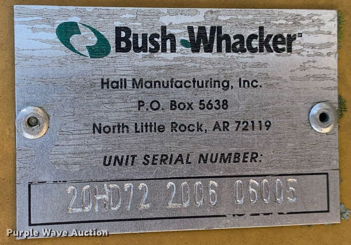 Purple Wave is selling a used Mower, Cutter, Shredder in Arkansas. This item is a 2006 Bush Whacker HD72 rotary mower with the following: Serial: 20HD72 2006 06005