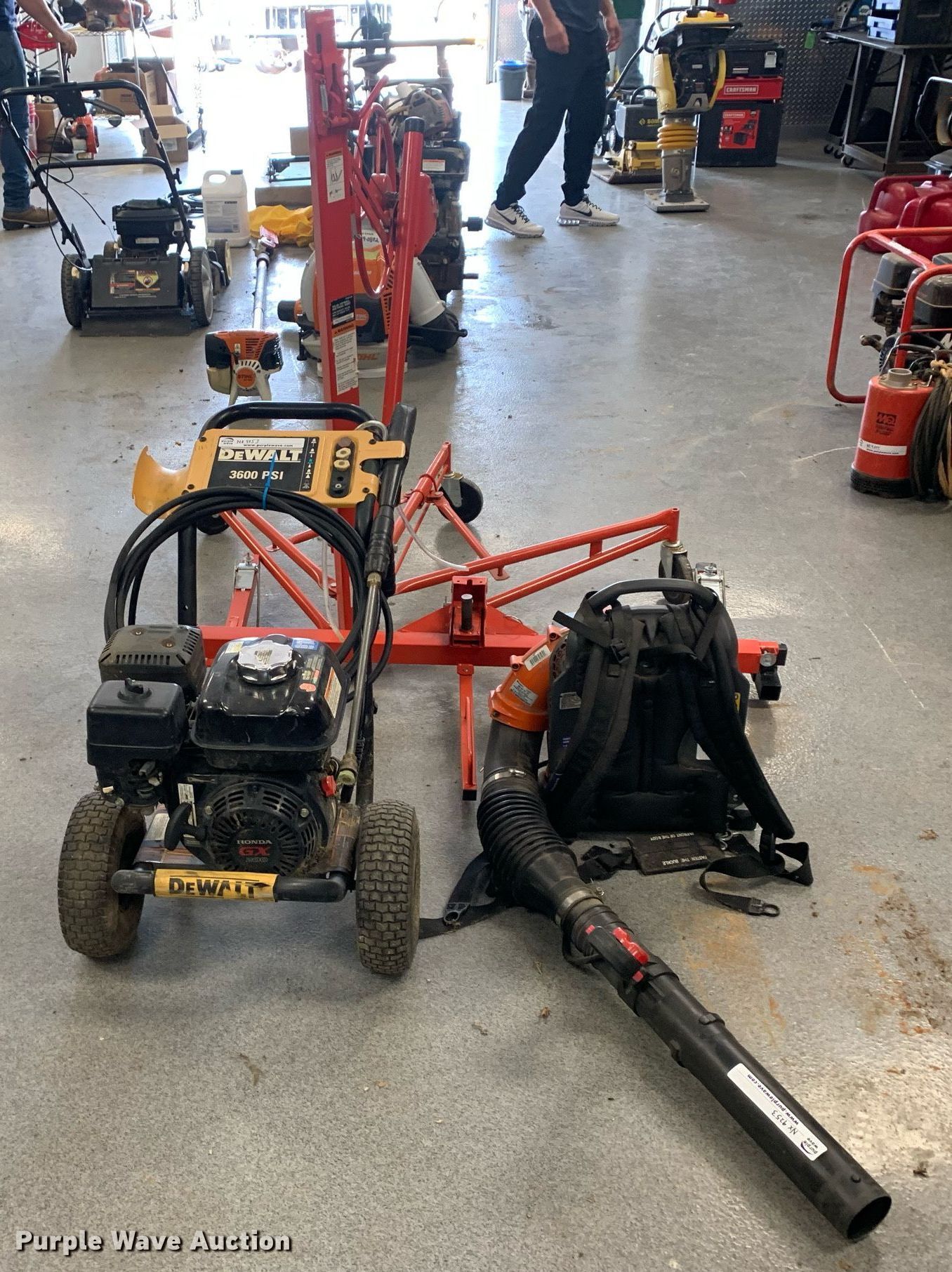 Purple Wave is selling a used Tools in Arkansas. This item is a Tools with the following: Dewalt 3600 PSI pressure washer, Manual sheet rock lift, Husqvarna 150BT leaf blower