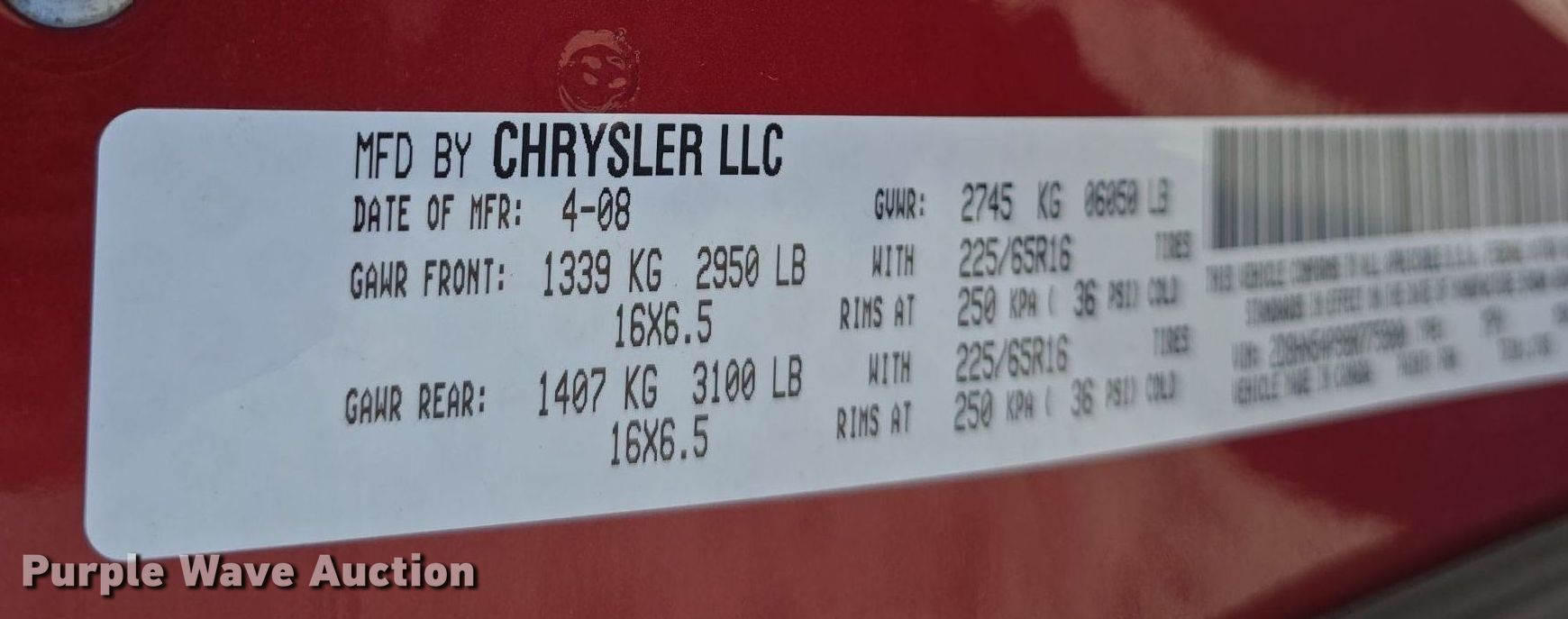 - VIN: 2D8HN54P98R775800
