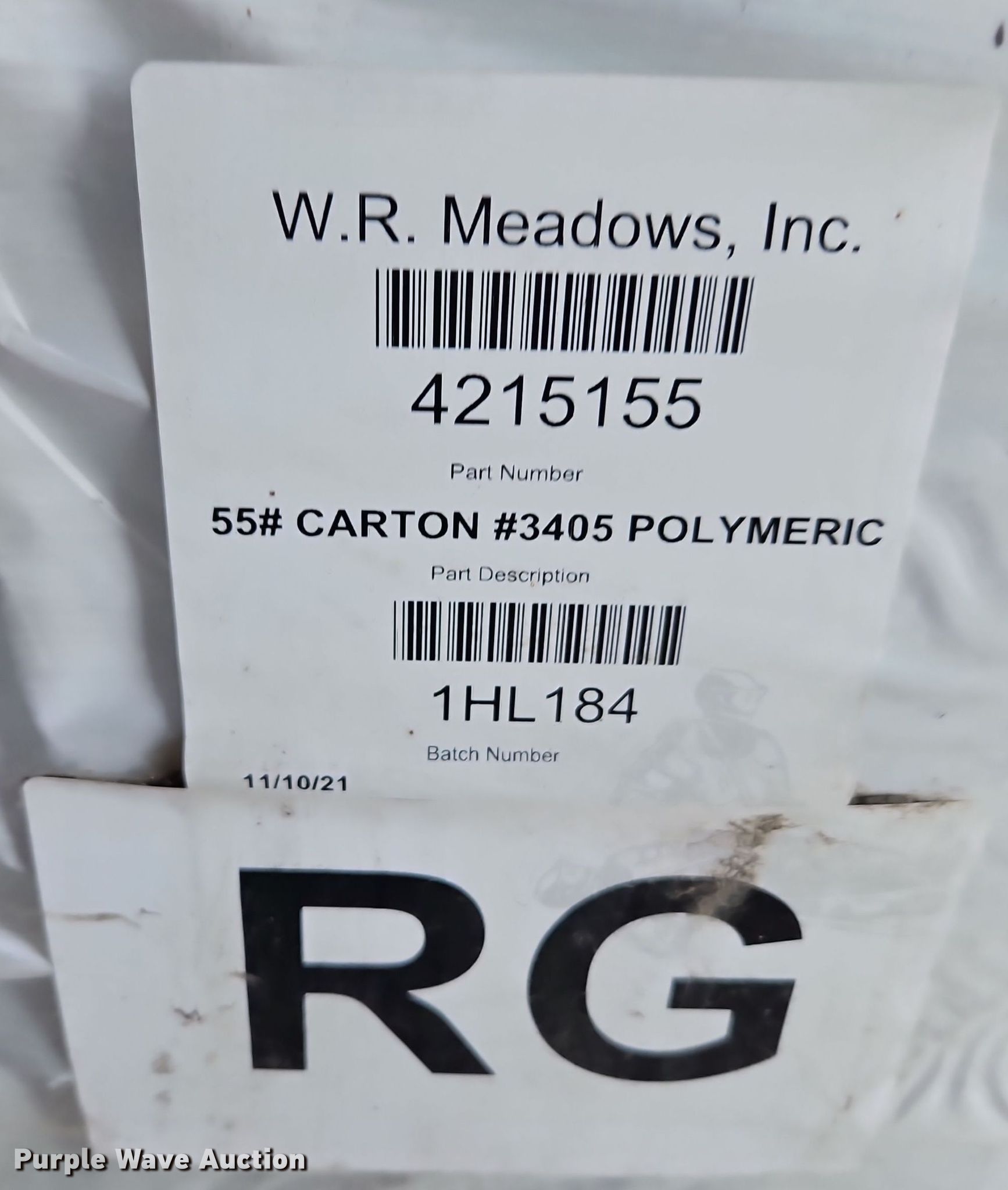 Purple Wave is selling a used Paving Sply. or Attach. in Kansas. This item is a W.R. Meadows 3405 polymeric joint compound with the following: Approximately 36 bags per pallet