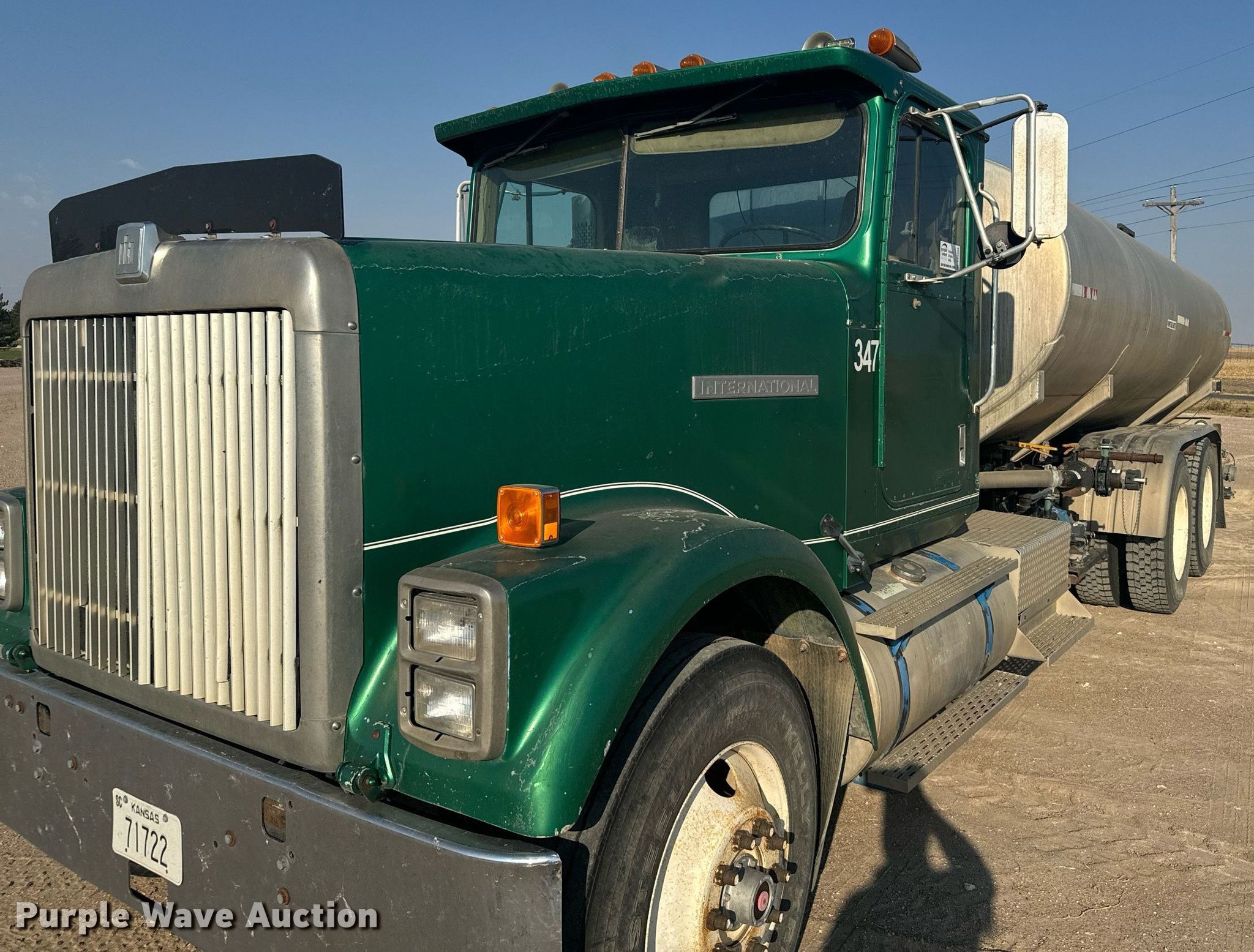 Purple Wave is selling a used Tank Truck or Water Truck in Kansas. This item is a 1985 International Harvester F9370 water truck with the following: Miles: 627,618 on odometer, Hours: 8,903 on meter, Miles or hours may vary, unit still in use, VIN: 2HSFBLYR6FCA15042