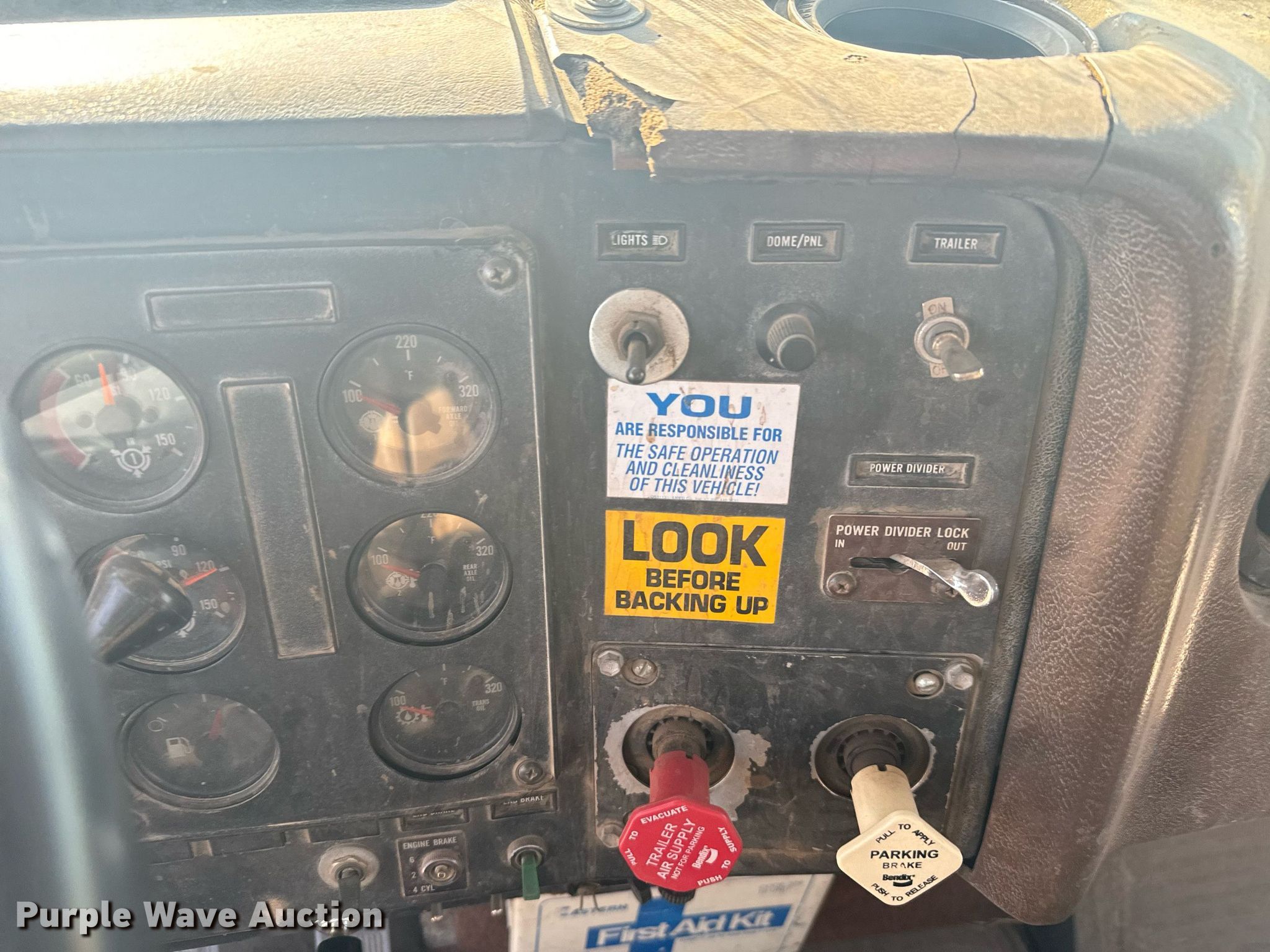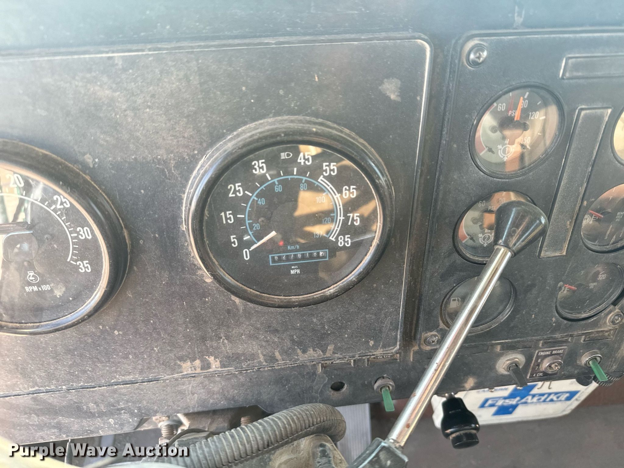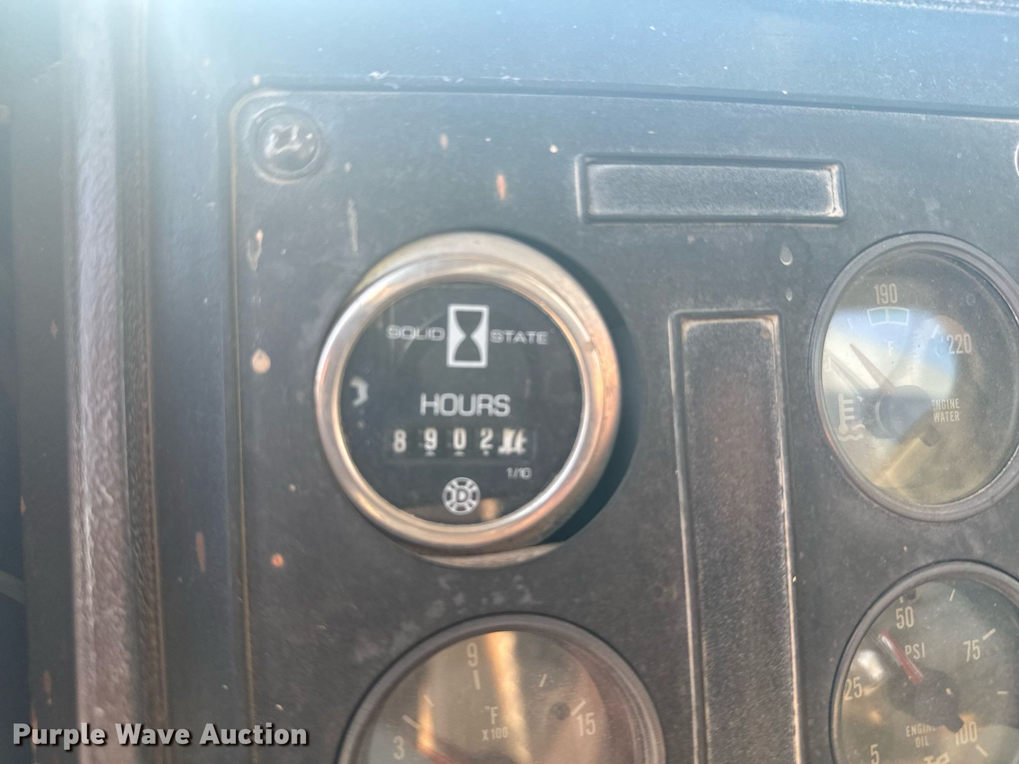 1985 International Harvester F9370 water truck. Miles: 627,618 on odometer, Hours: 8,903 on meter, Miles or hours may vary, unit still in use, VIN: 2HSFBLYR6FCA15042. Engine Cummins N14, Displacement: 14.0L, Cylinders: 6, Fuel type: Diesel. Transmission Manual, Speed: 8. Chassis Axles: Tandem, Differential lock: Inter-axle, Suspension: Spring over walking beam, Brakes: Air, PTO. Interior Heat. Features Bed / tank Capacity: 4,000 gallons, Spray bar: Rear, Side discharge, Top fill, Rear drain: 3", Rear outlet: 3". Tires Size: 11R22.5. Kansas title. Title distribution may be delayed up to 14 days from verification of funds. Scott County Public Works. Scott City, KS 67871