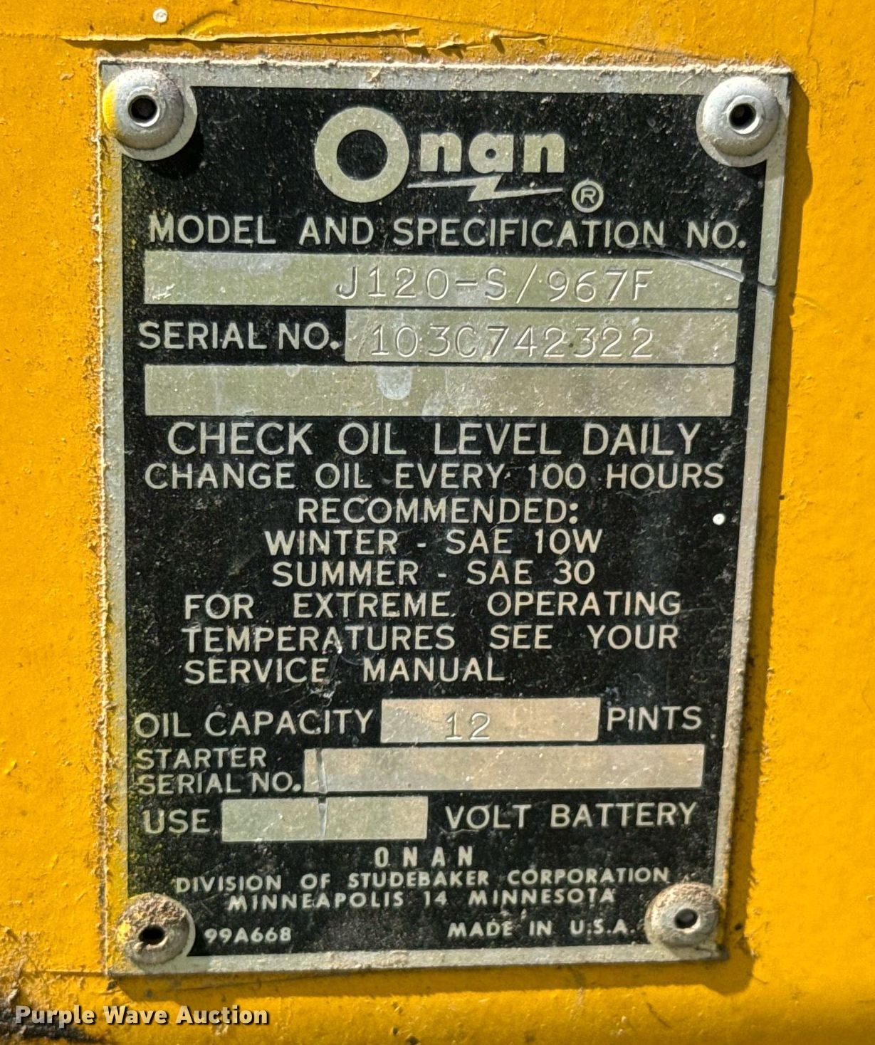 2003 Onan J120-S generator has sold in Chanute, Kansas for $742.50. Item DX1390 sold on November 5th, 2024.
