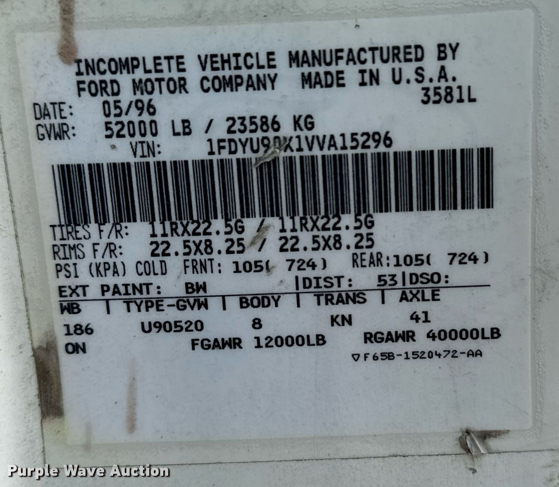 - VIN: 1FDYU90X1VVA15296